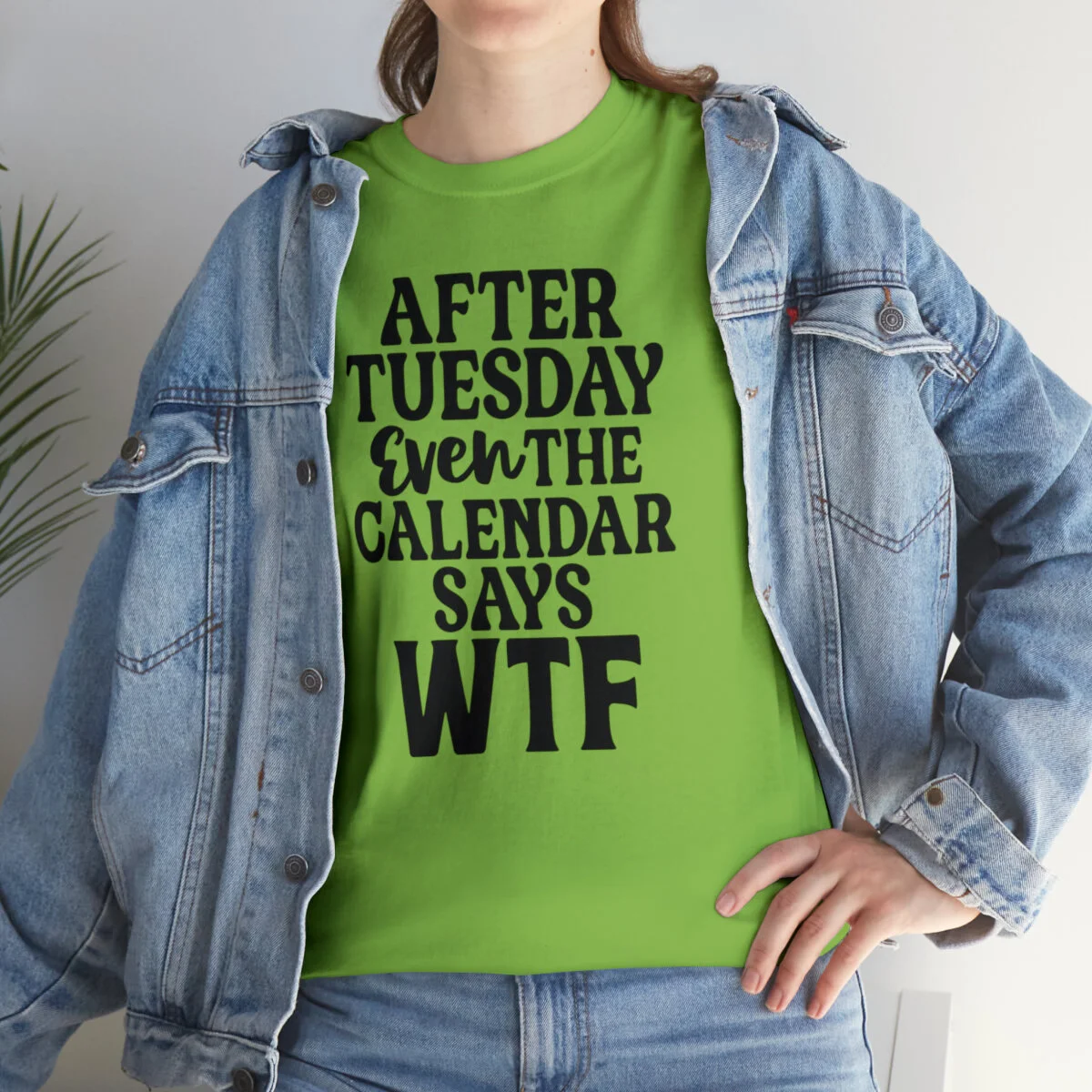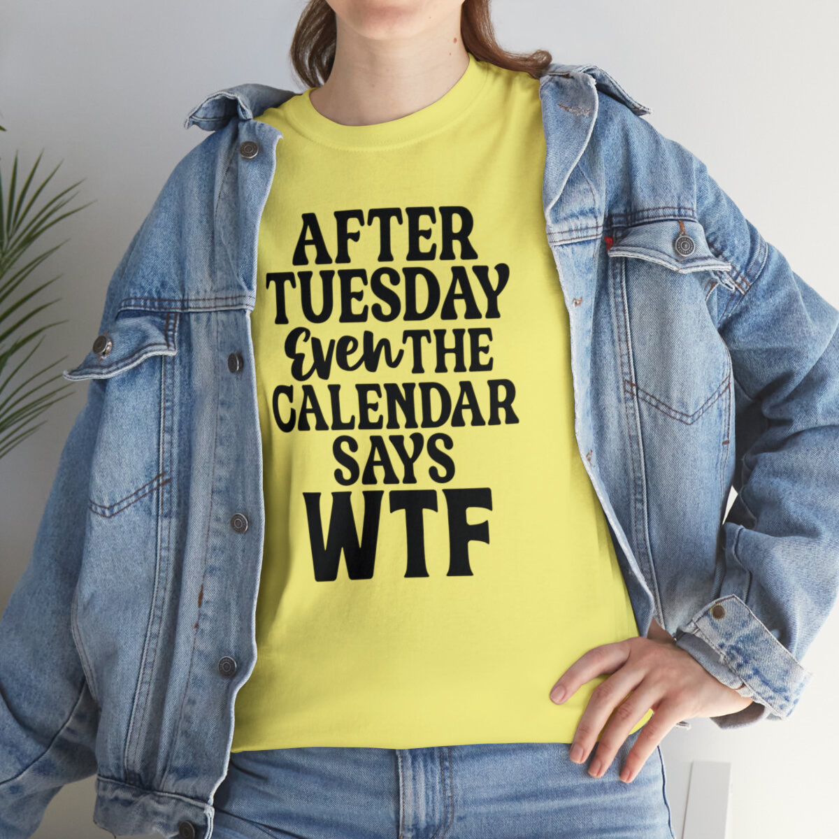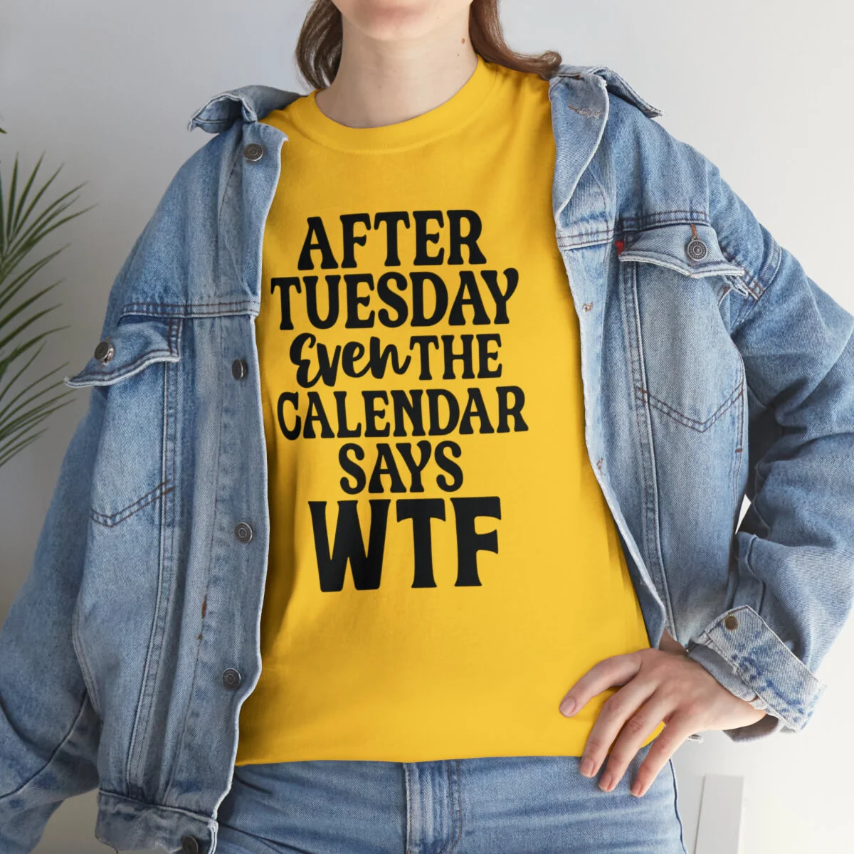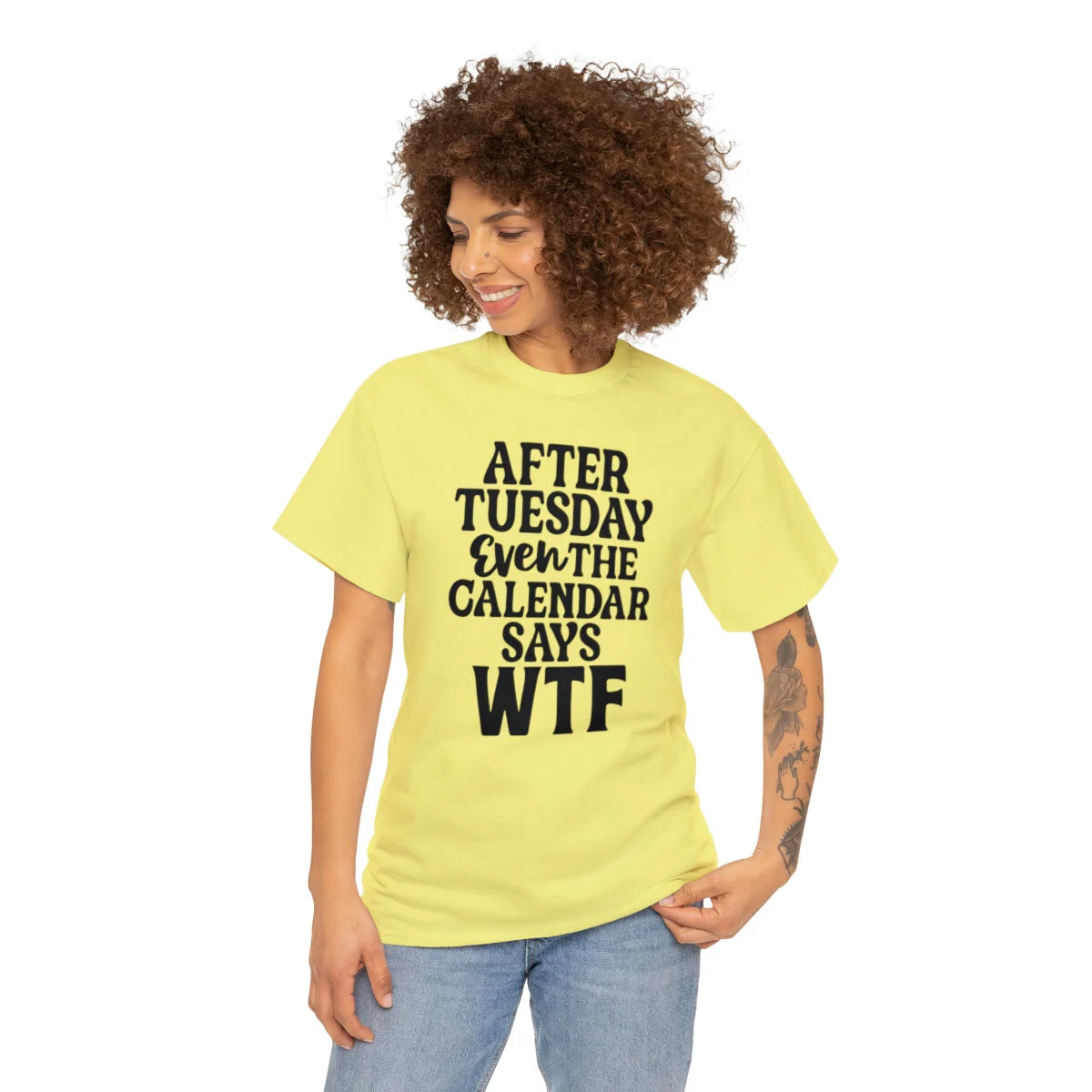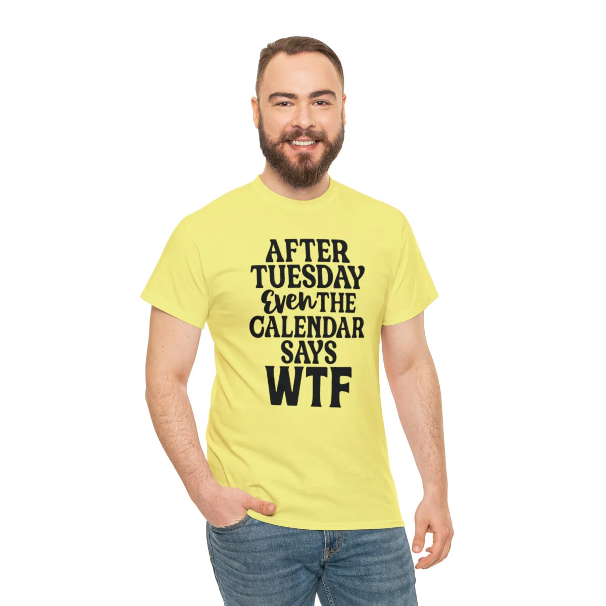 Add a dose of humor to your wardrobe with our witty t-shirt that humorously declares, "After Tuesday, even the calendar says WTF..." With this design, you can showcase your playful side while acknowledging the universal feeling of confusion and bewilderment that sometimes accompanies the midweek slump.