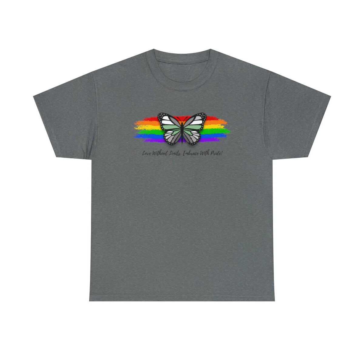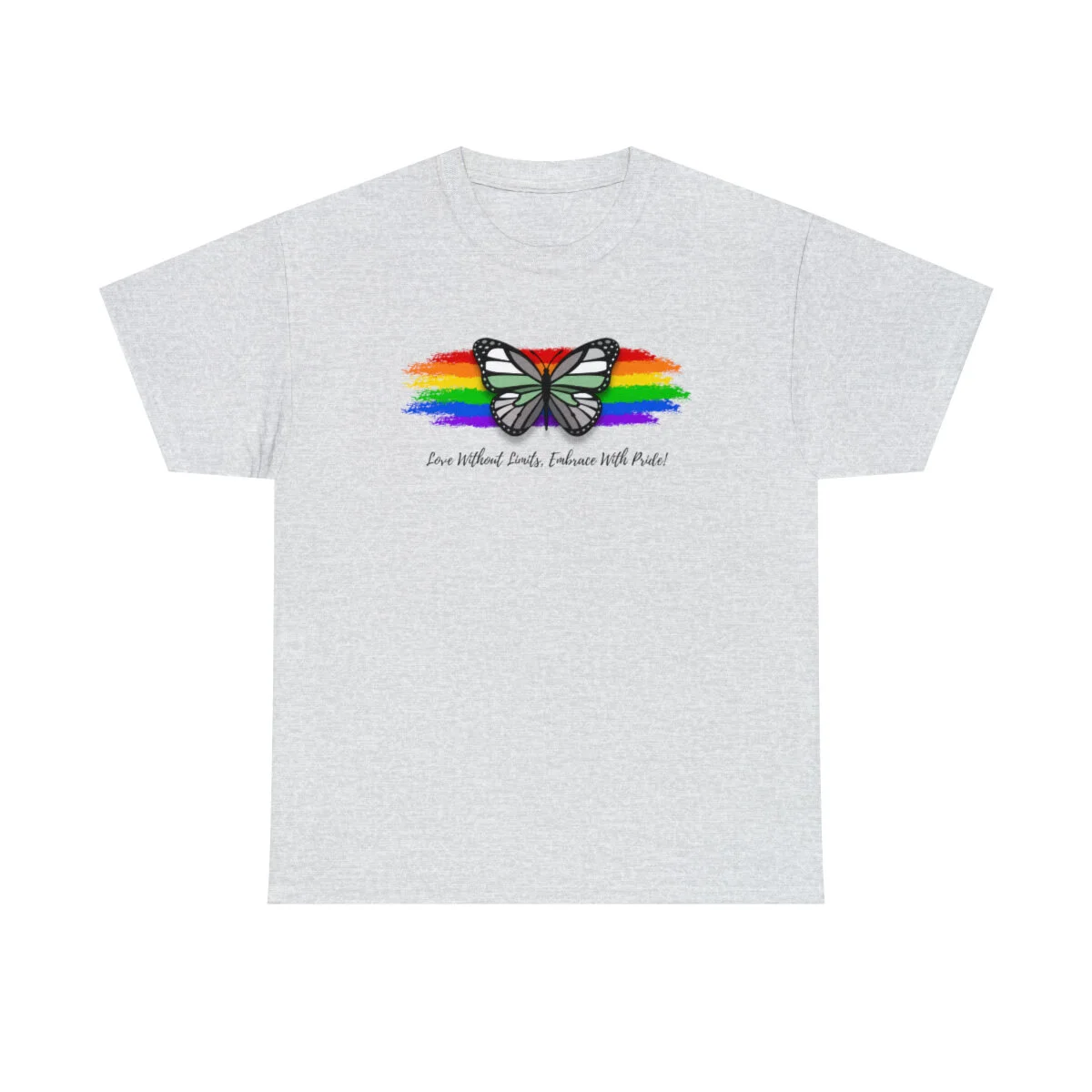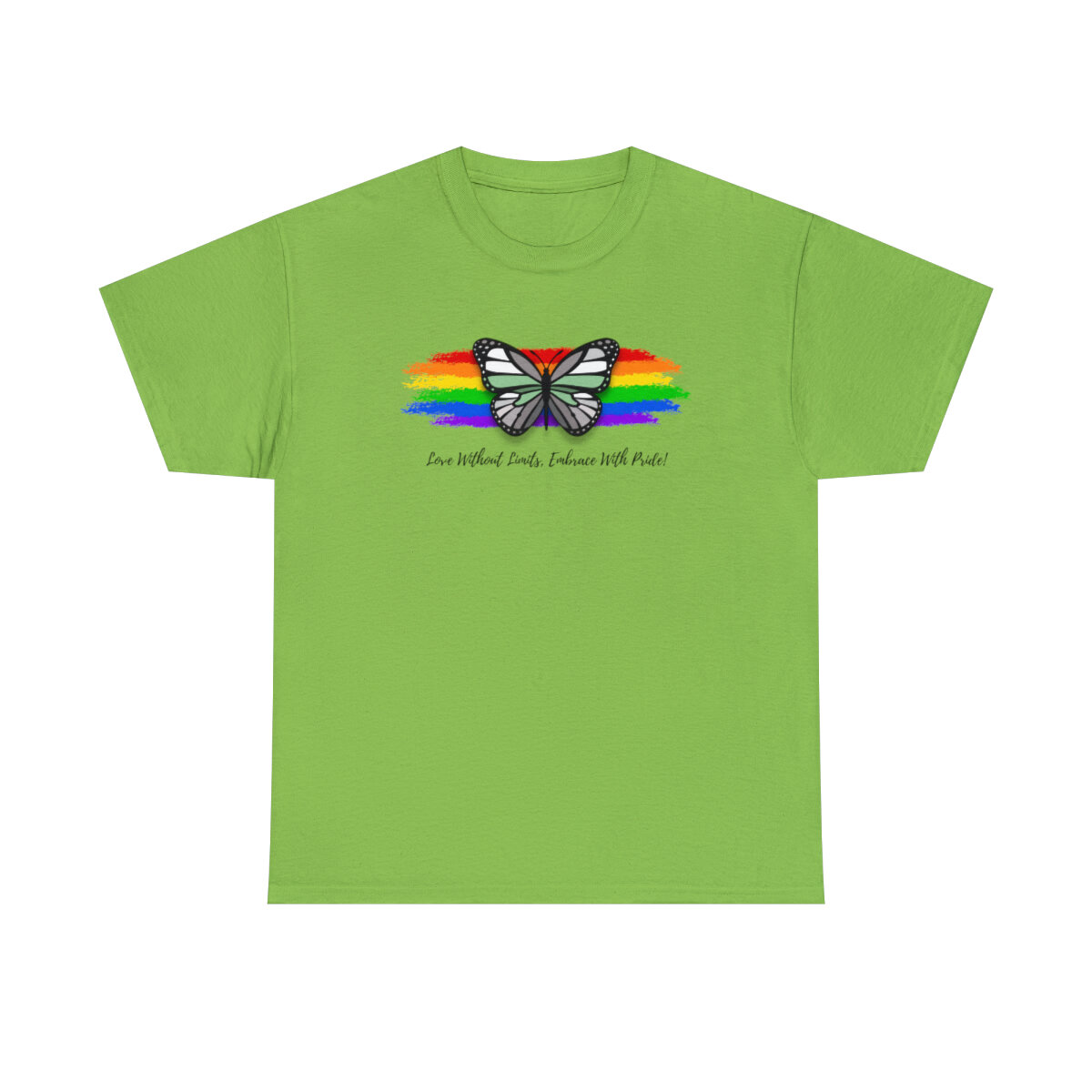 At the heart of this design, we proudly display the empowering phrase "Love Without Limits, Embrace With Pride!" The bold typography captures the essence of acceptance, spreading a message of love and unity.