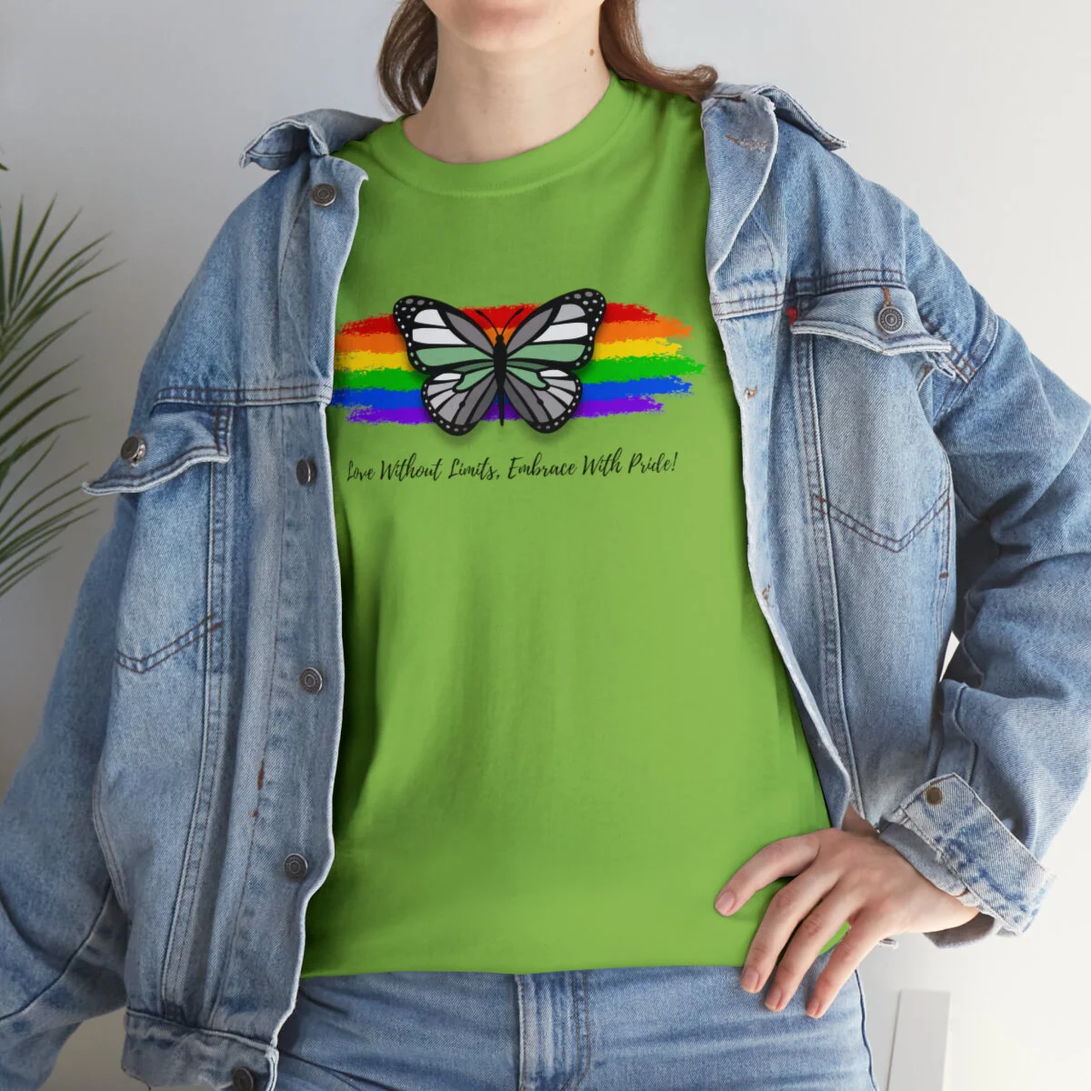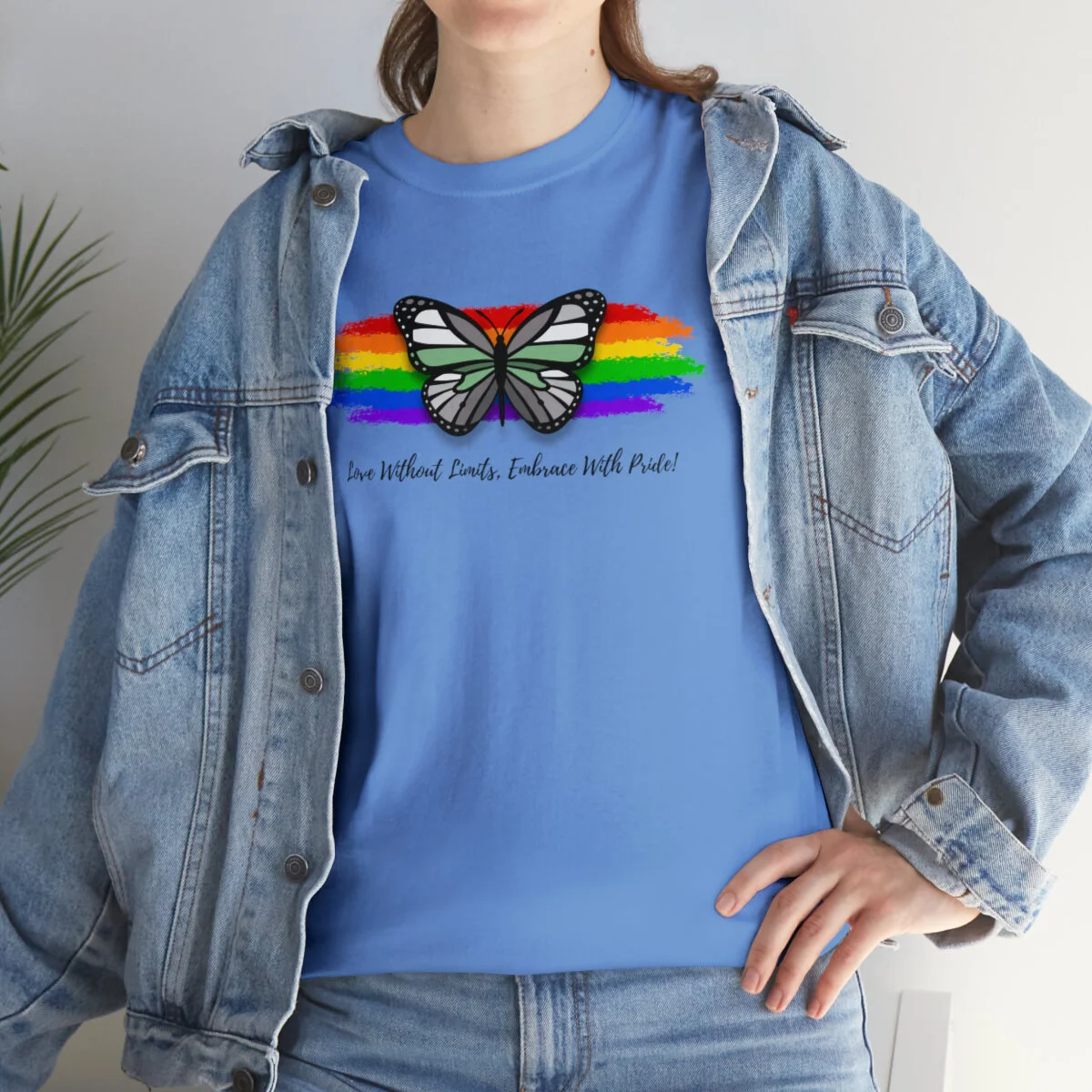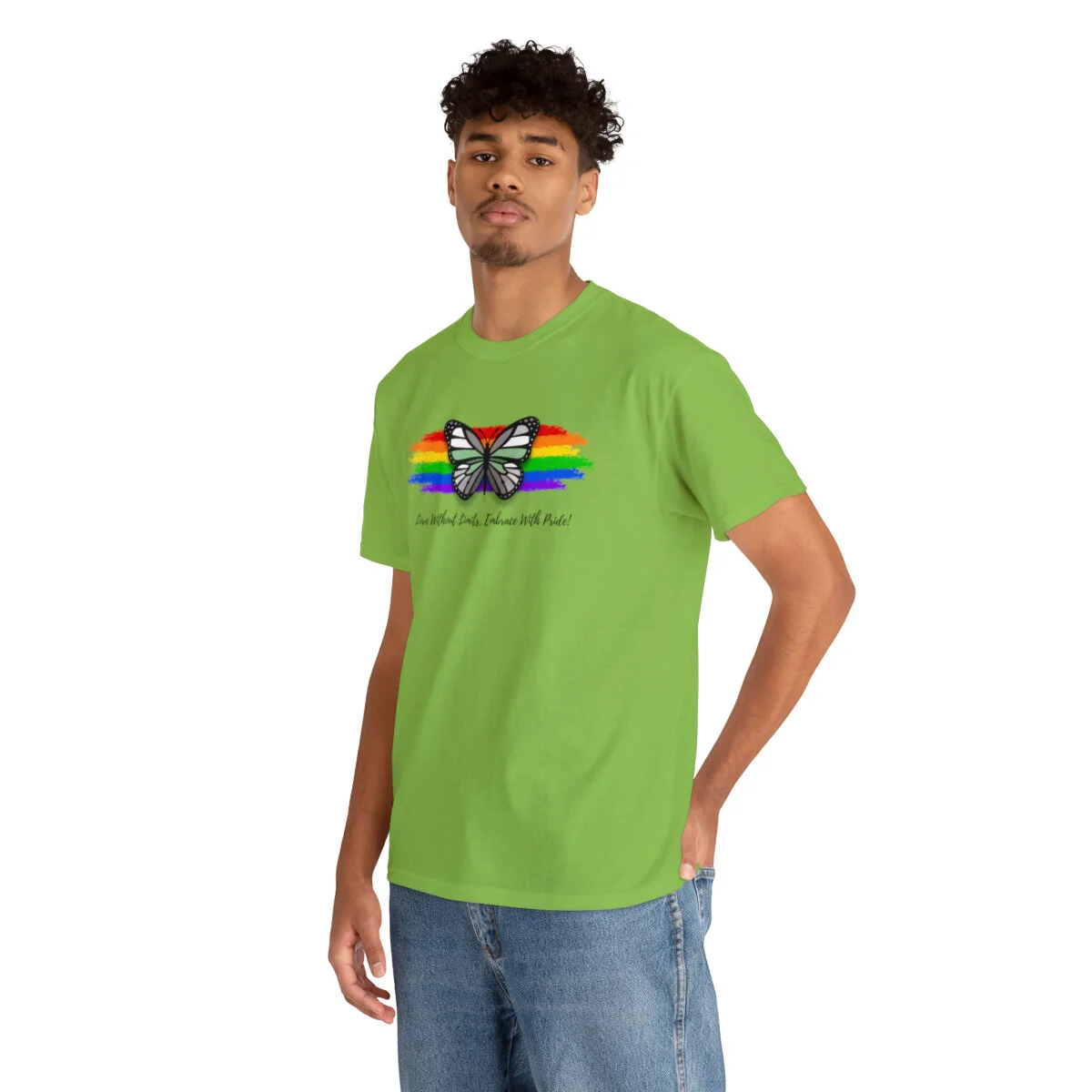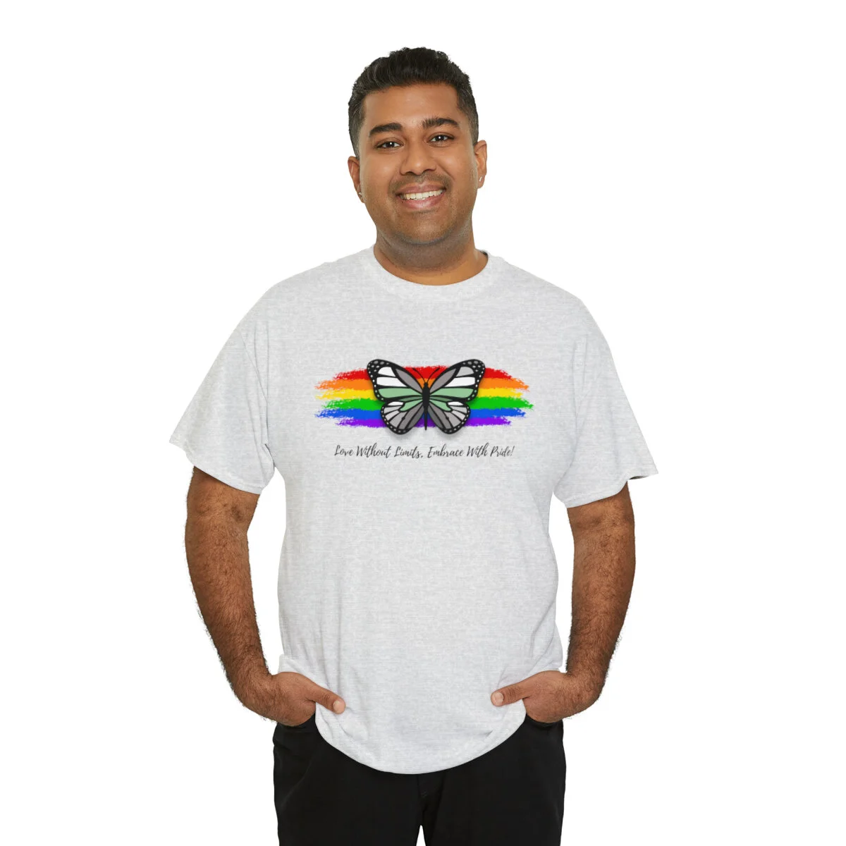 At the heart of this design, we proudly display the empowering phrase "Love Without Limits, Embrace With Pride!" The bold typography captures the essence of acceptance, spreading a message of love and unity.
