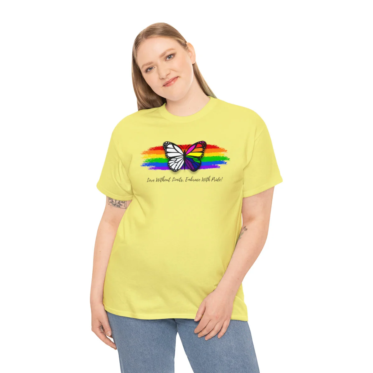 At the forefront of this design, we proudly display the empowering message "Love Without Limits, Embrace With Pride!" The bold typography represents the inclusive and accepting nature of allyship, spreading love, support, and unity.
