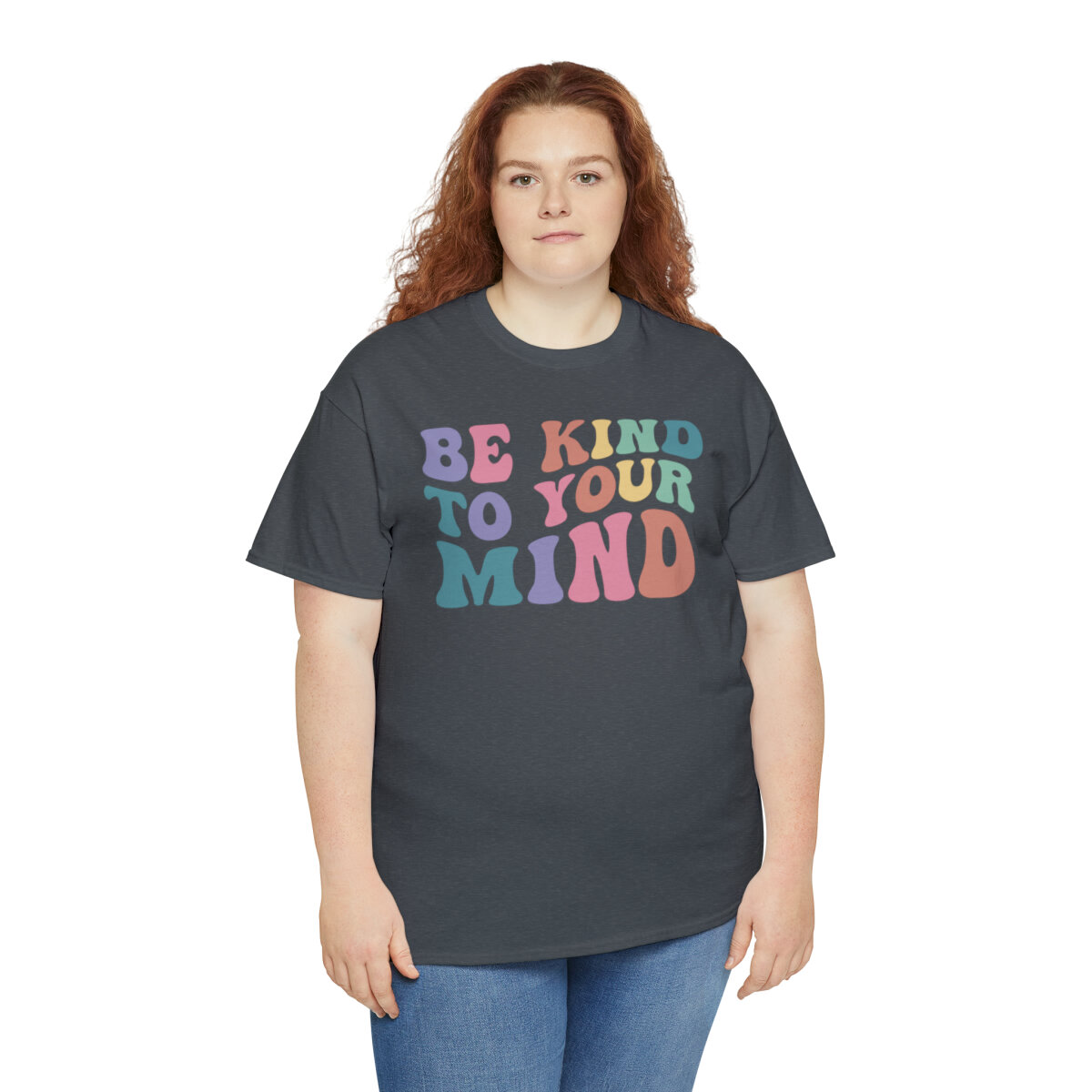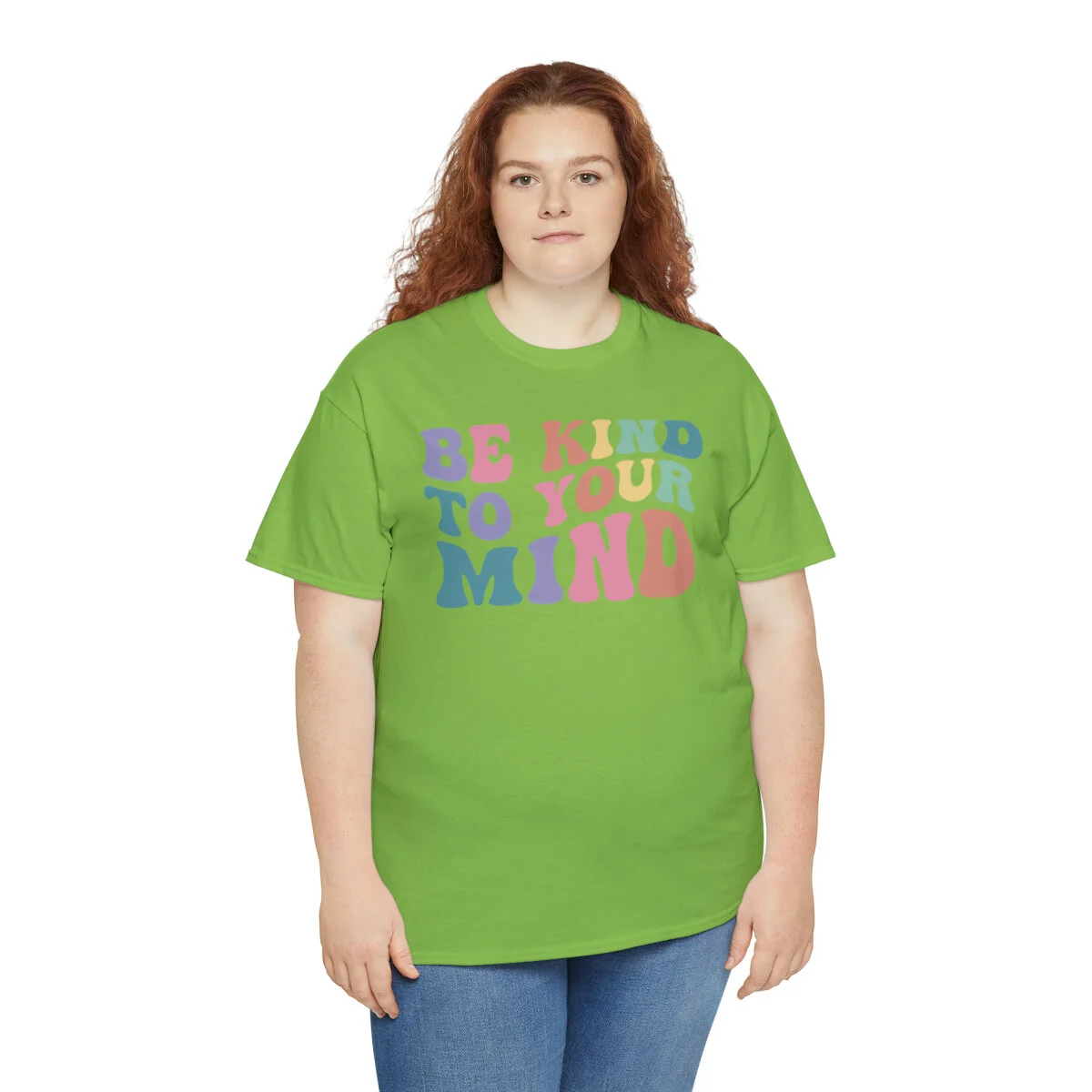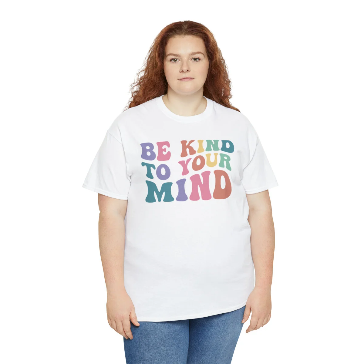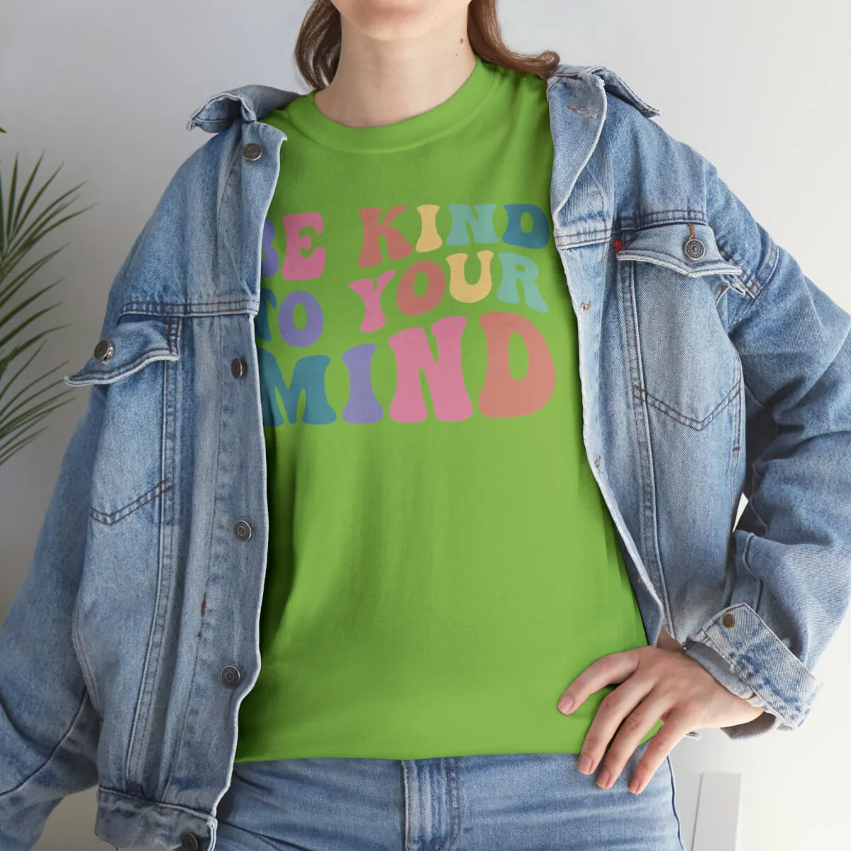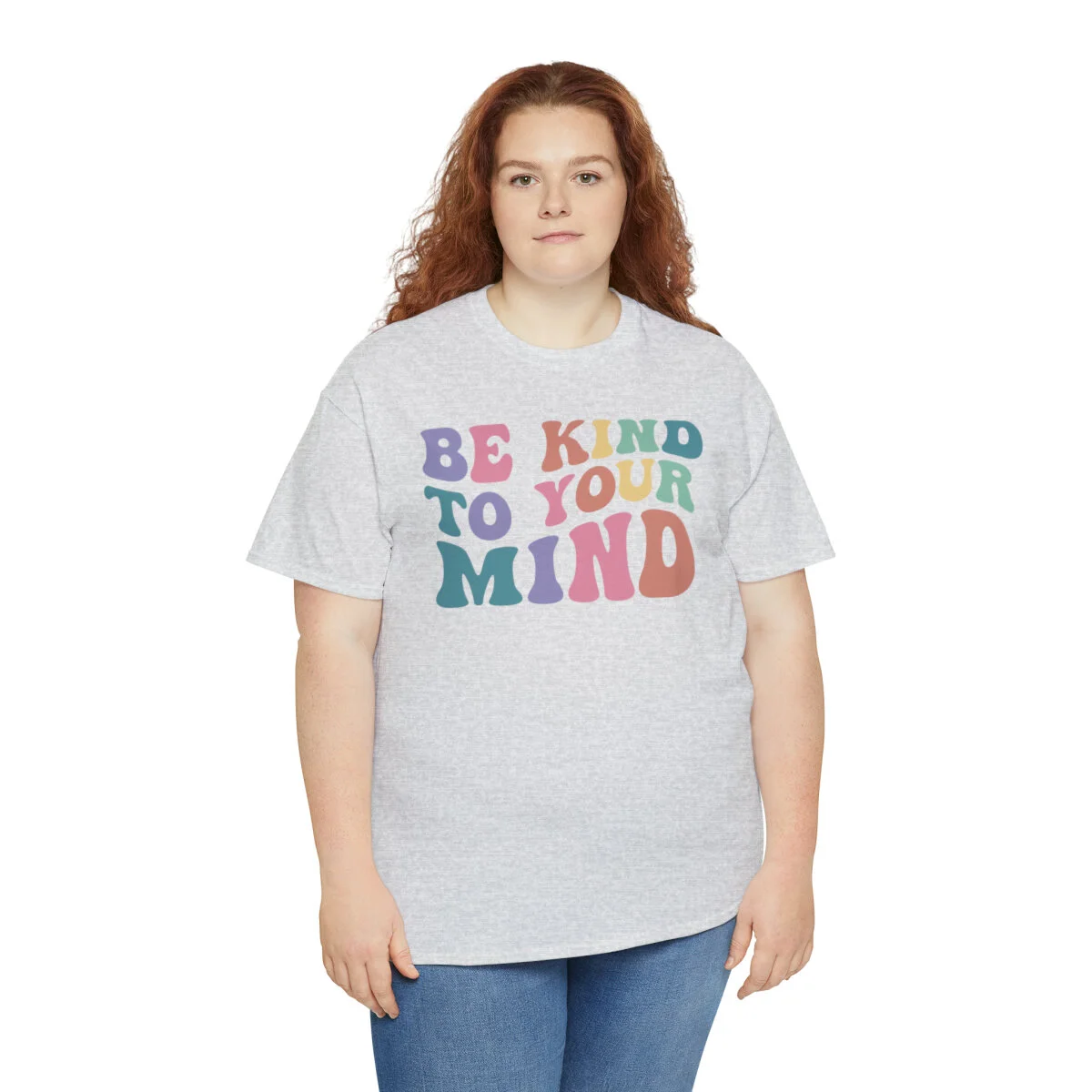 Crafted with care, this t-shirt is made from high-quality fabric to ensure exceptional comfort and durability. The design features the witty phrase, "YBe Kind to your mind," elegantly displayed in multiple colors. Choose from a variety of vibrant options, including red, blue, yellow, or classic black and white, to find the hue that best matches your style and personality.