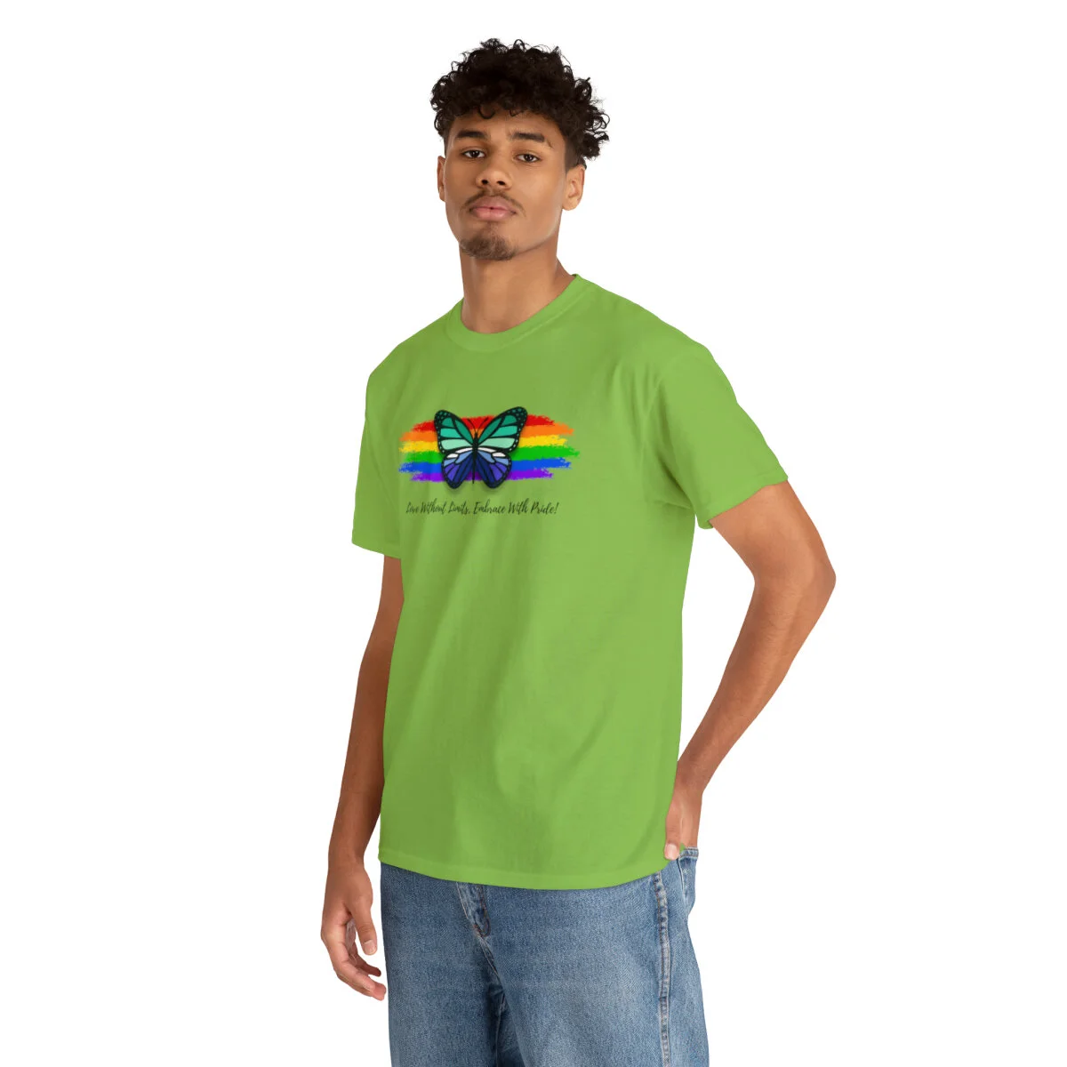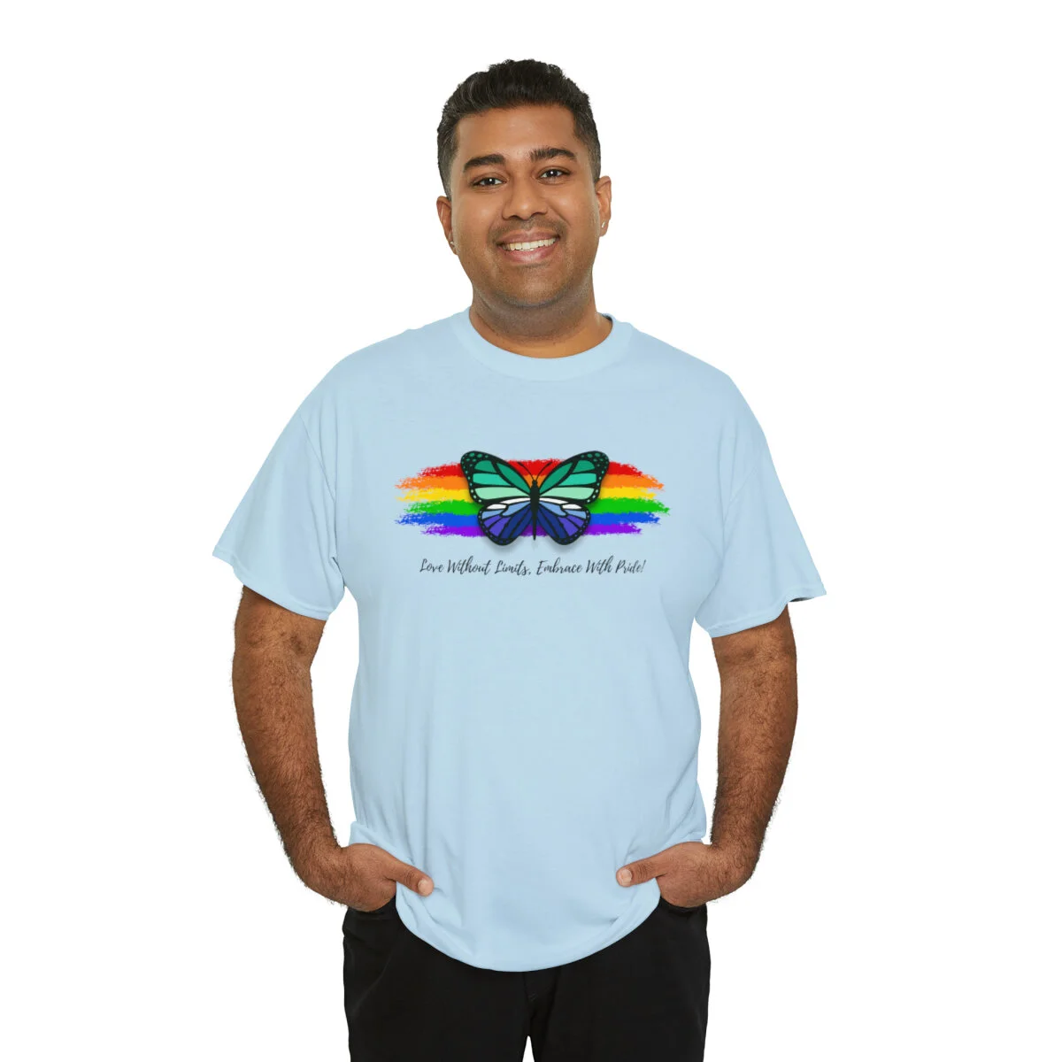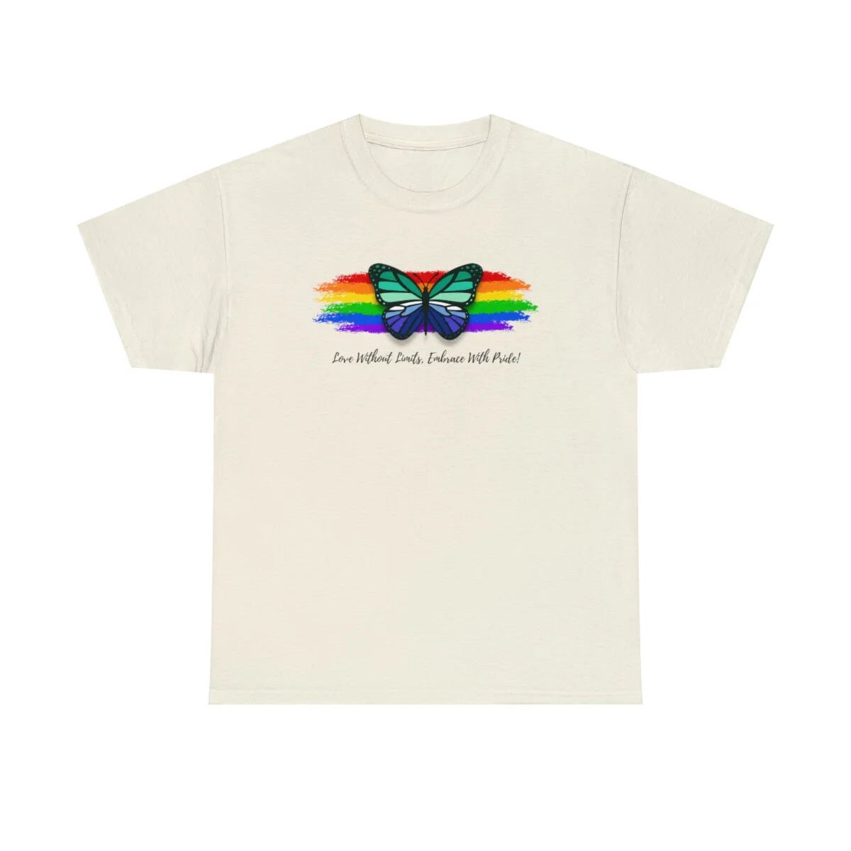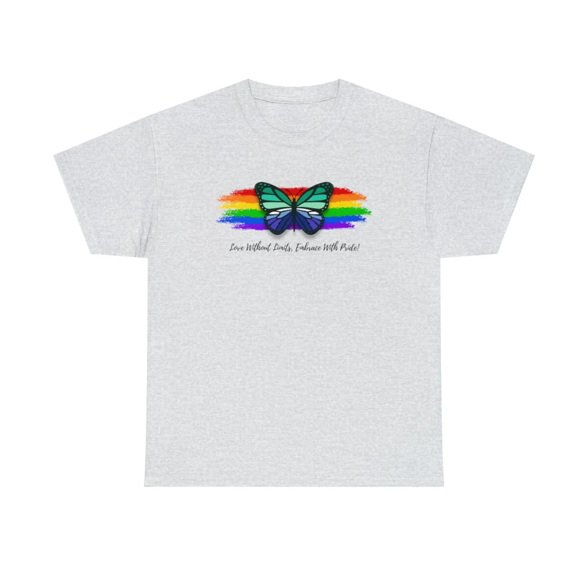 At the forefront of this design, we proudly showcase the empowering message "Love Without Limits, Embrace With Pride!" The bold typography represents the courage, love, and acceptance that are at the core of the gay men's identity.