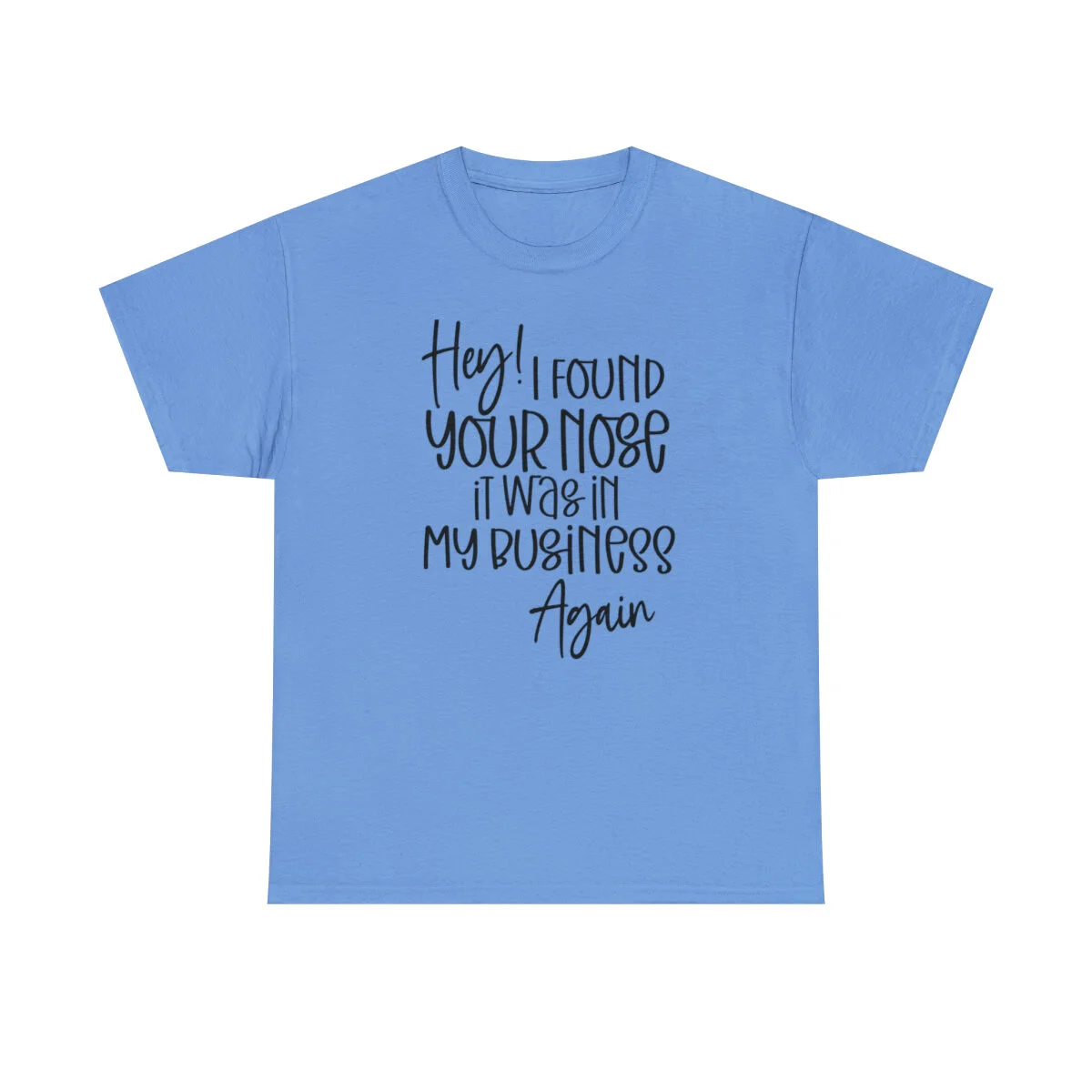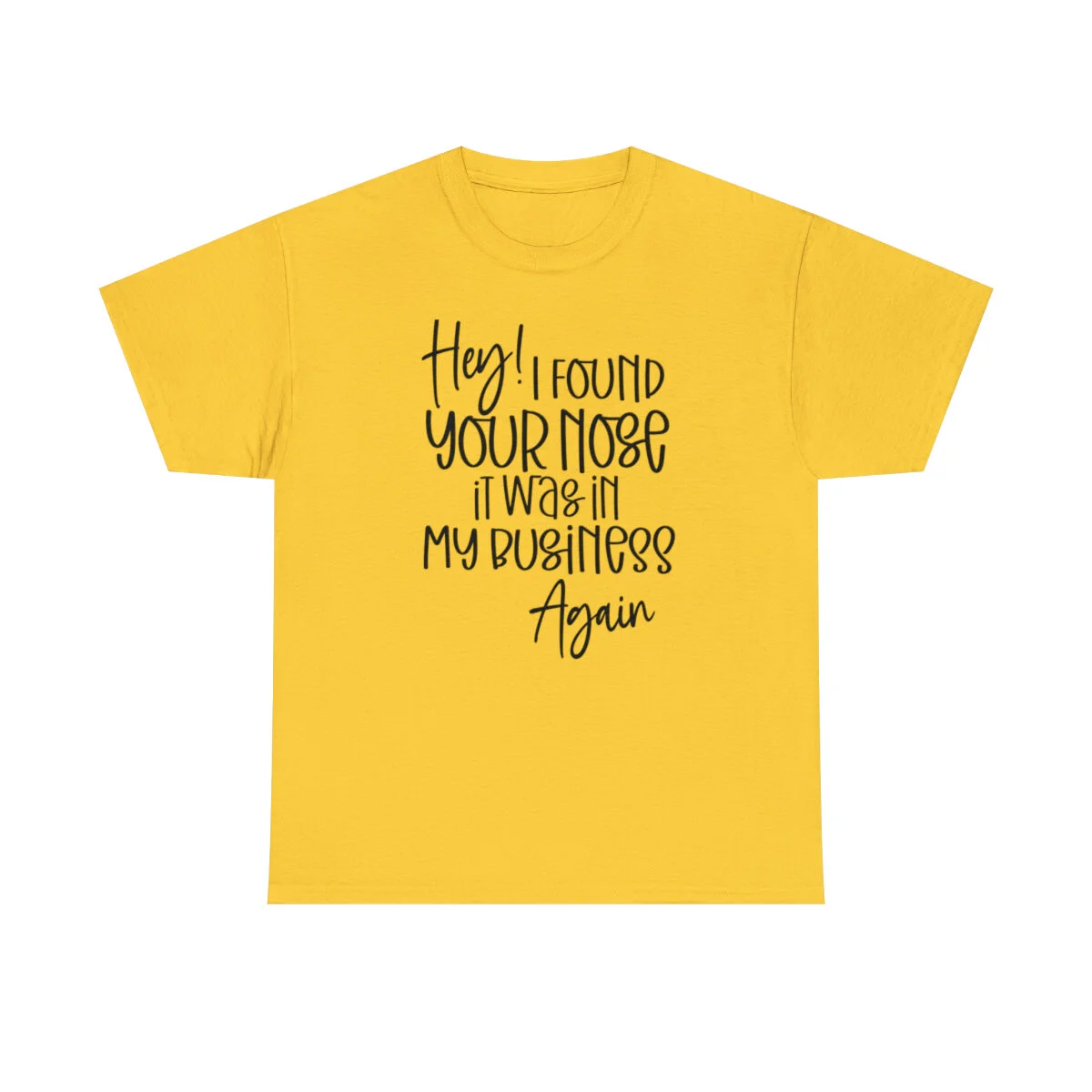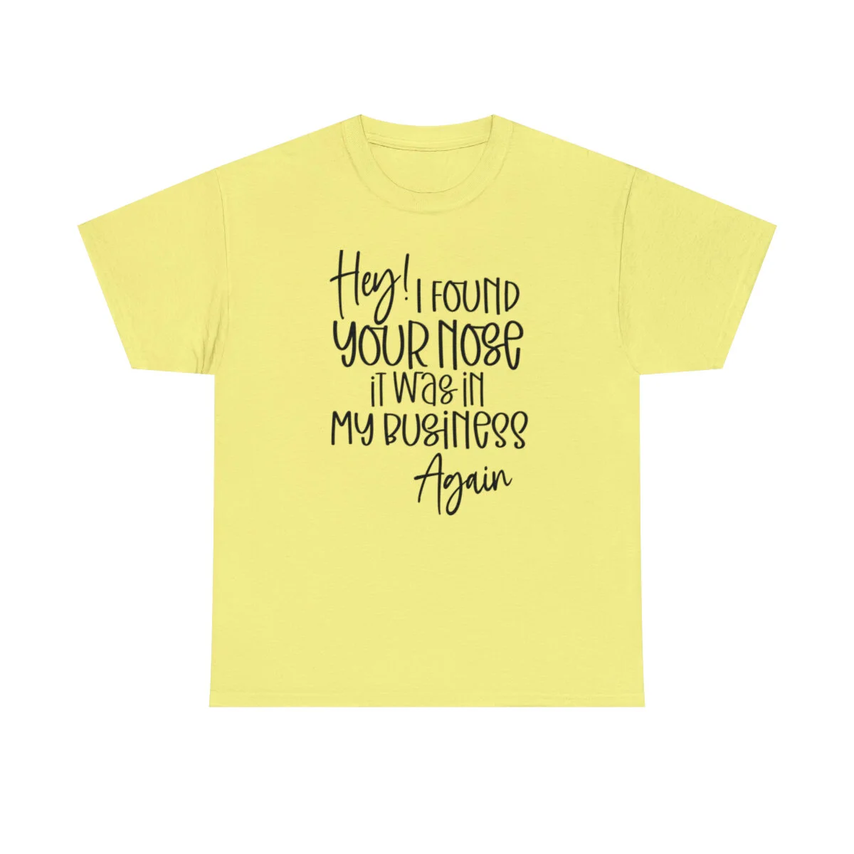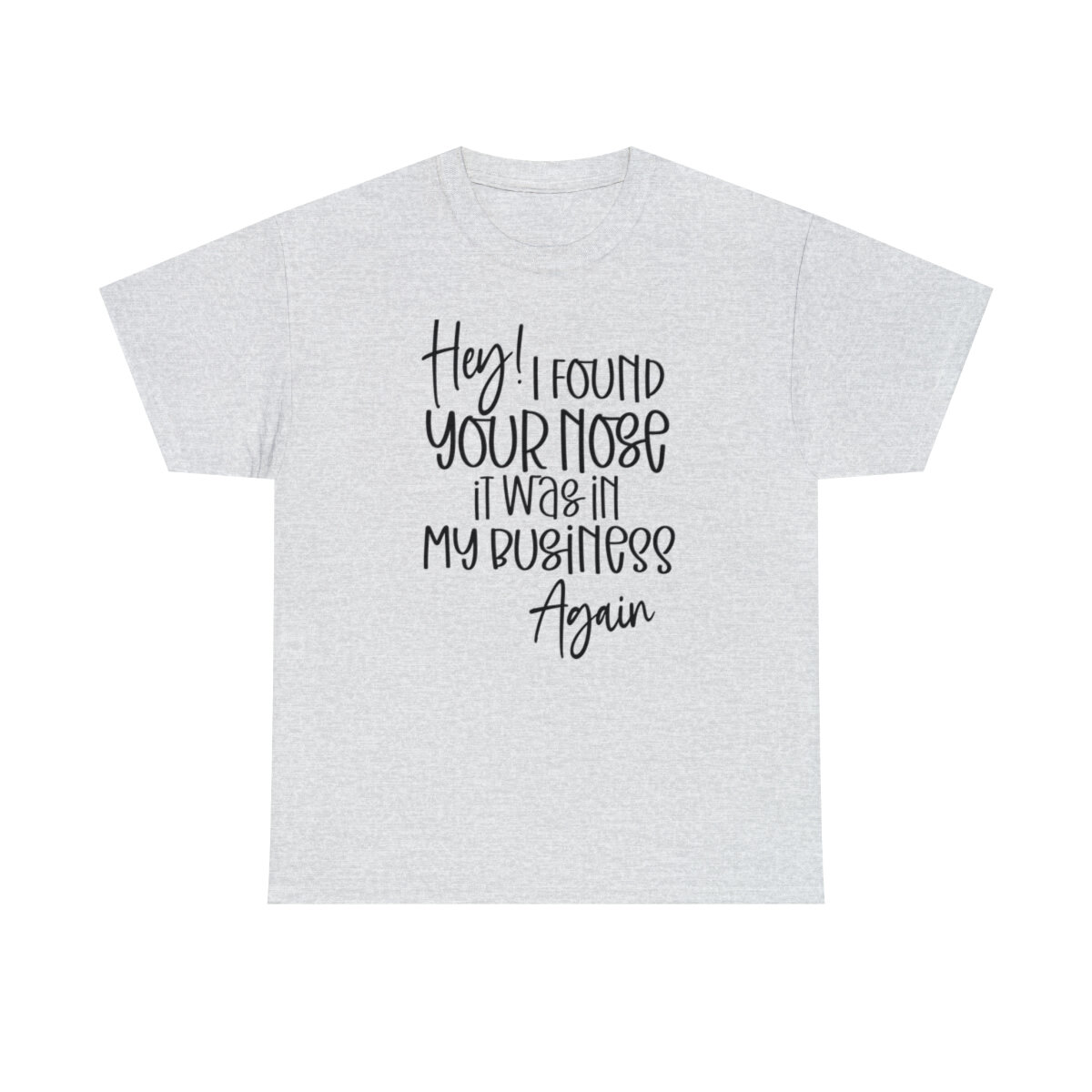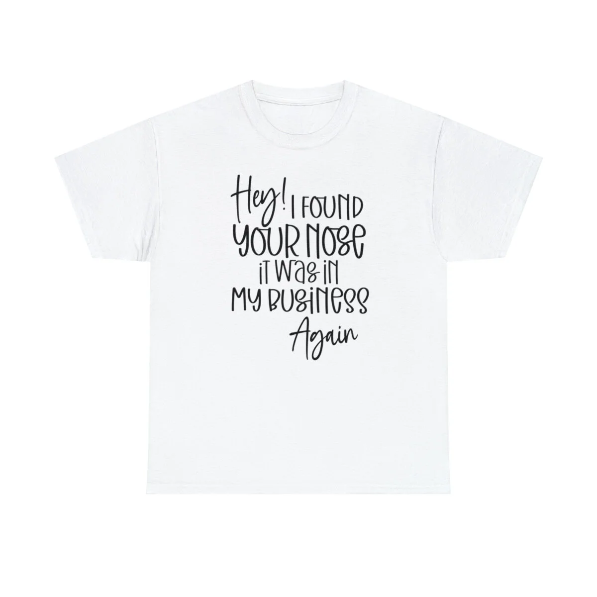 Add a playful touch to your wardrobe with our humorous t-shirt that cheekily declares, "Hey! I found your nose, it was in my business again.." With this design, you can showcase your wit and assert your personal boundaries in a lighthearted way.