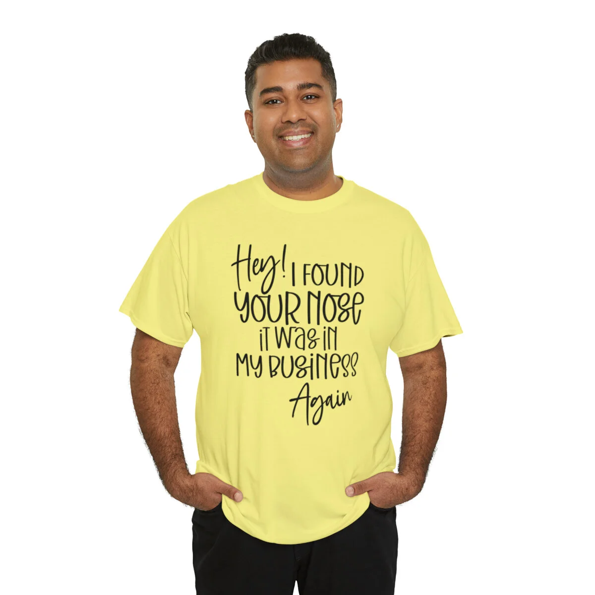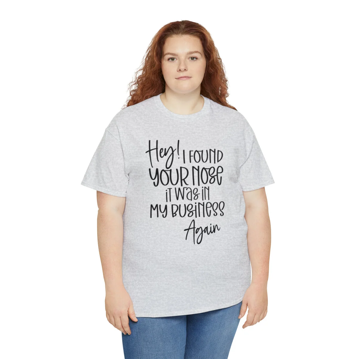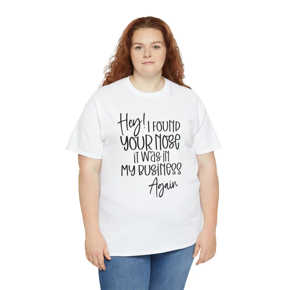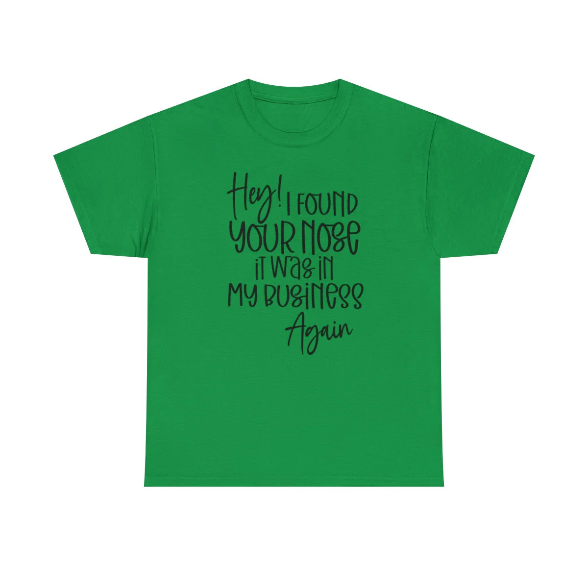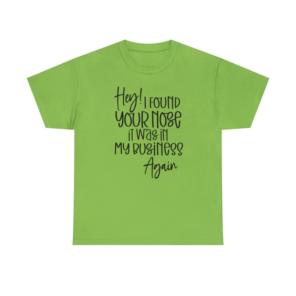 Add a playful touch to your wardrobe with our humorous t-shirt that cheekily declares, "Hey! I found your nose, it was in my business again.." With this design, you can showcase your wit and assert your personal boundaries in a lighthearted way.