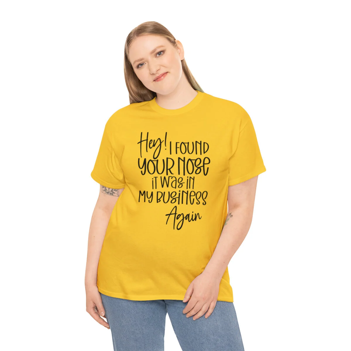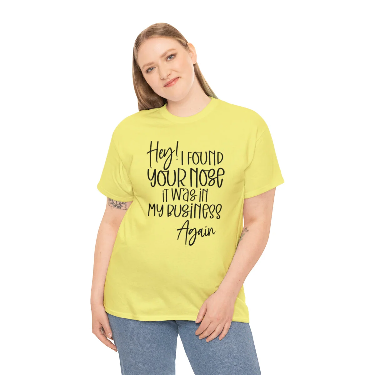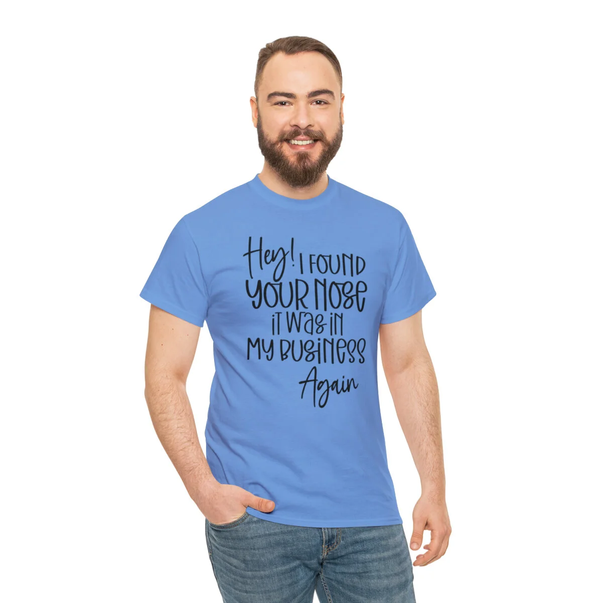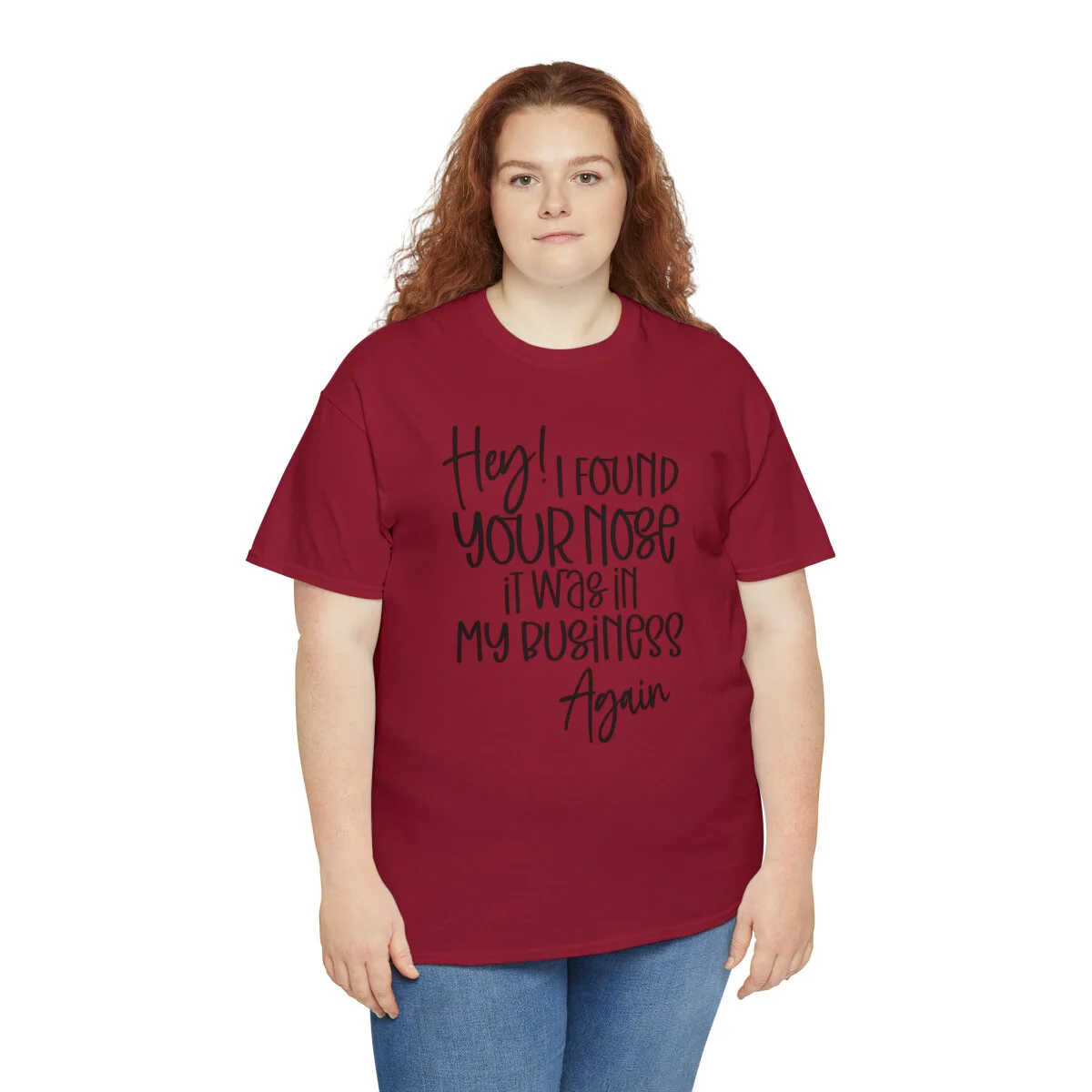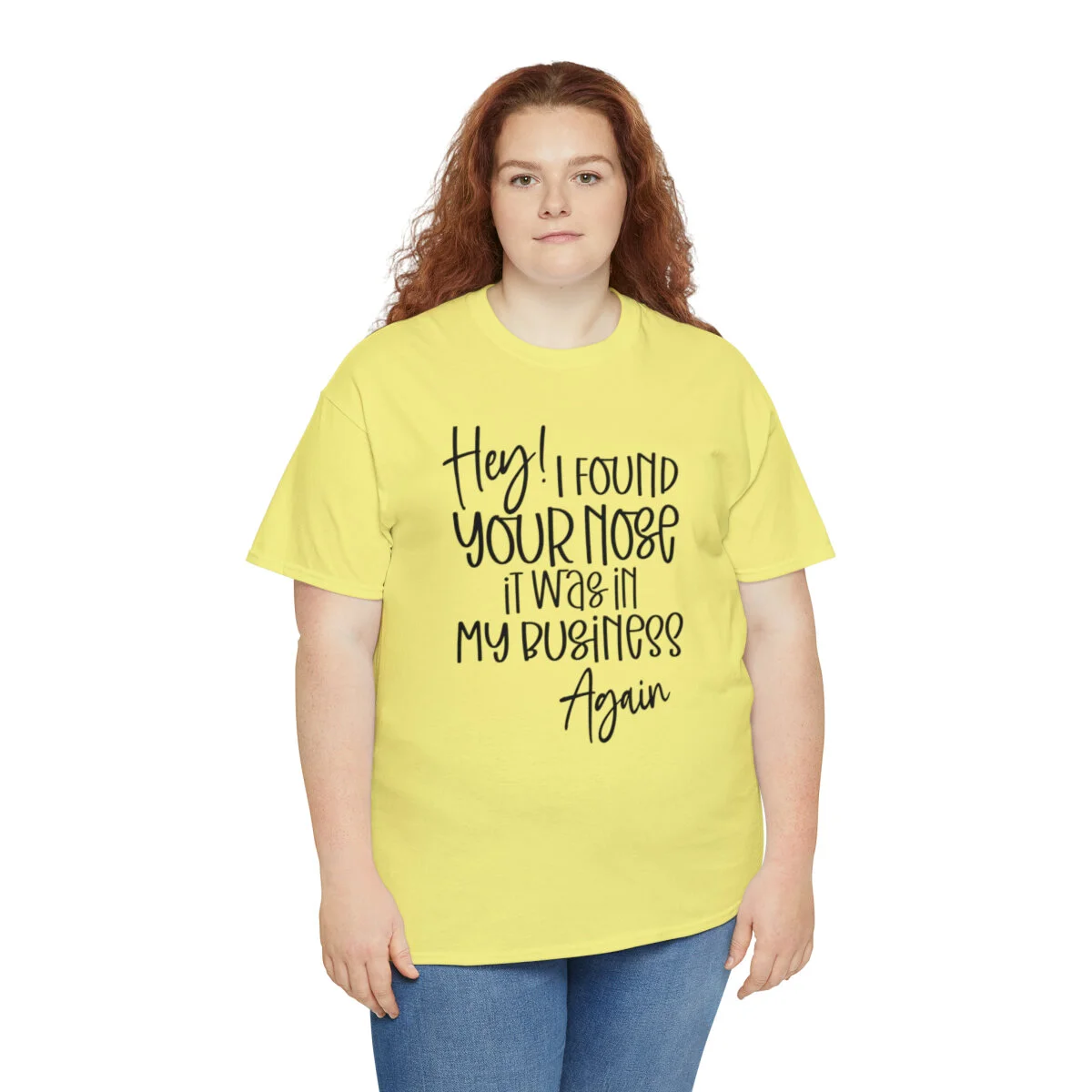 Add a playful touch to your wardrobe with our humorous t-shirt that cheekily declares, "Hey! I found your nose, it was in my business again.." With this design, you can showcase your wit and assert your personal boundaries in a lighthearted way.