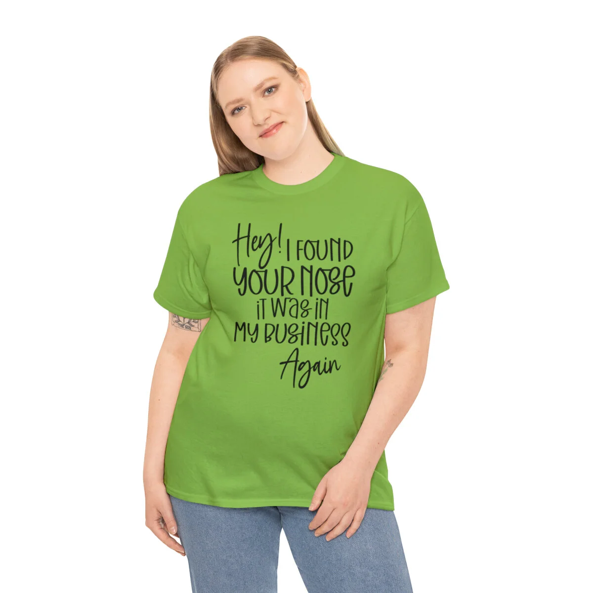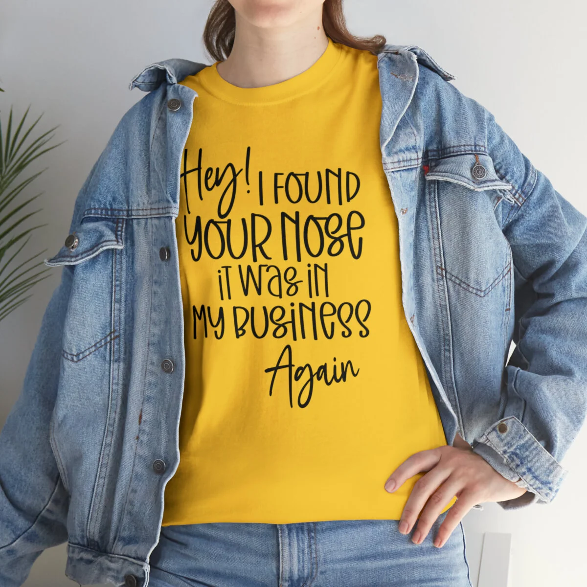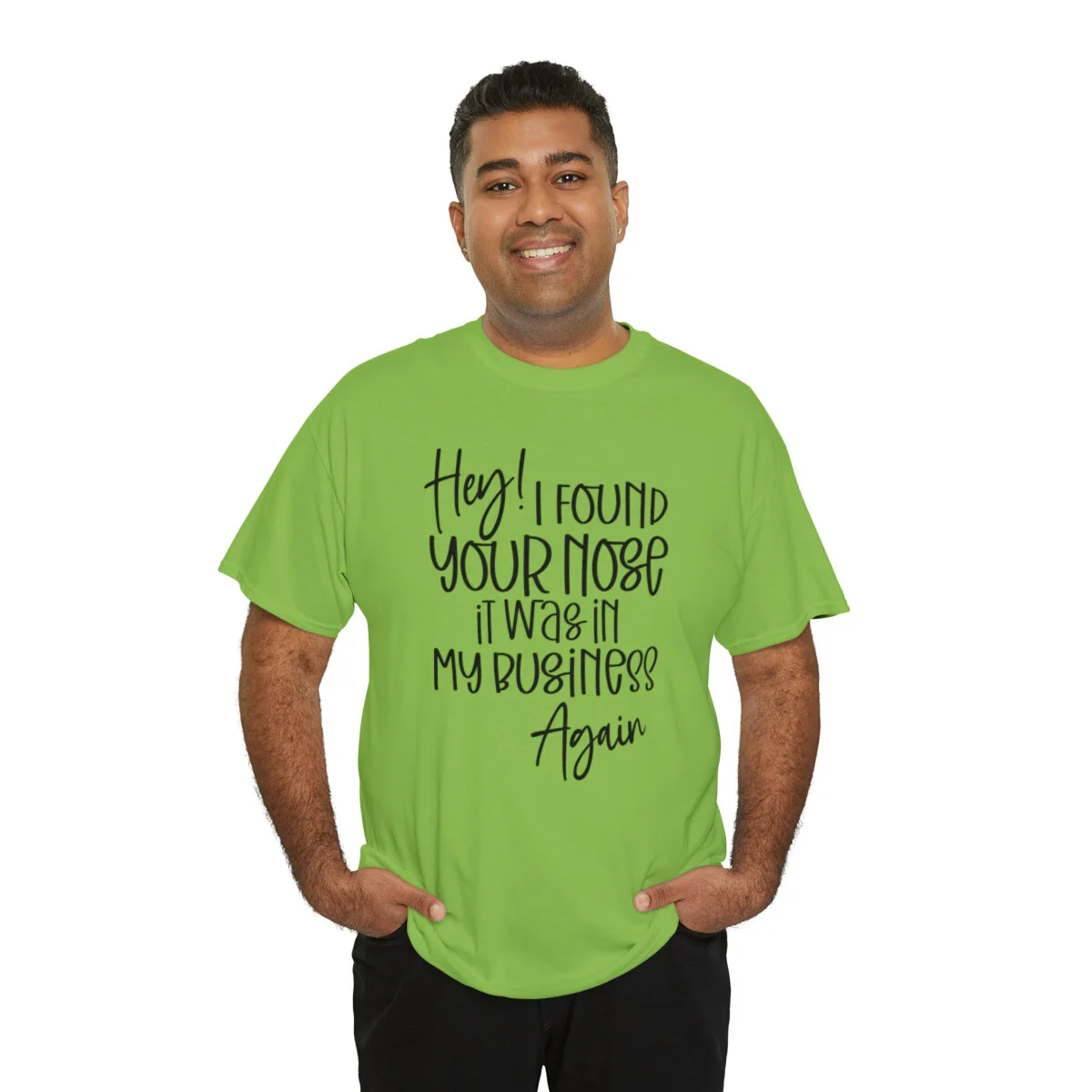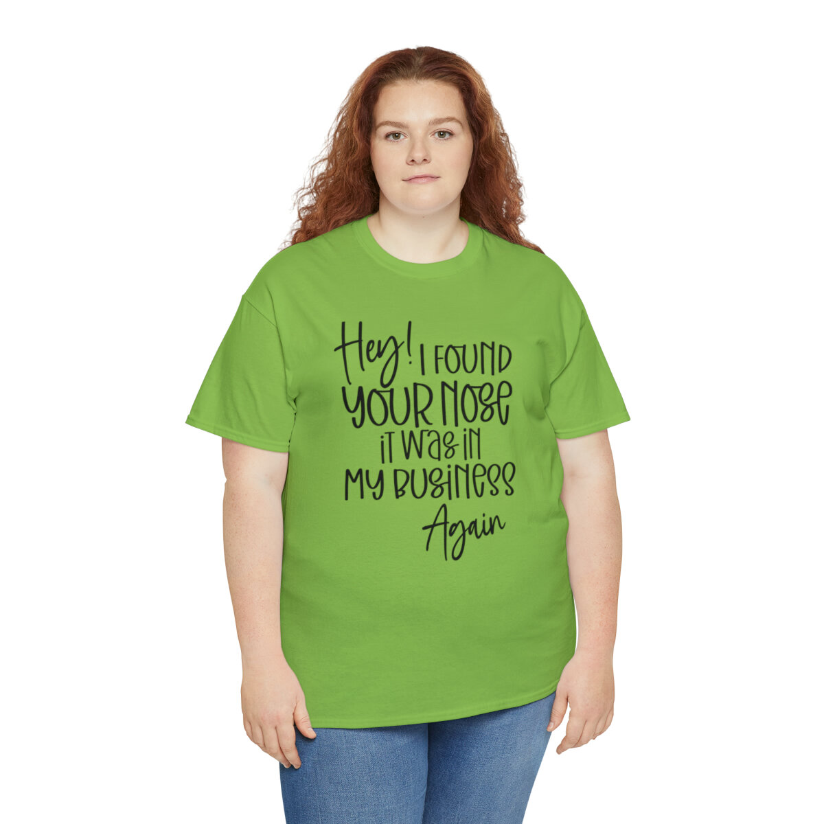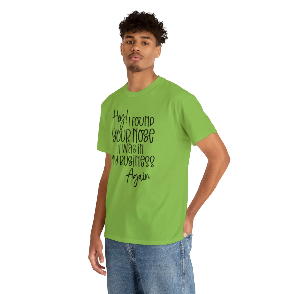 Add a playful touch to your wardrobe with our humorous t-shirt that cheekily declares, "Hey! I found your nose, it was in my business again.." With this design, you can showcase your wit and assert your personal boundaries in a lighthearted way.