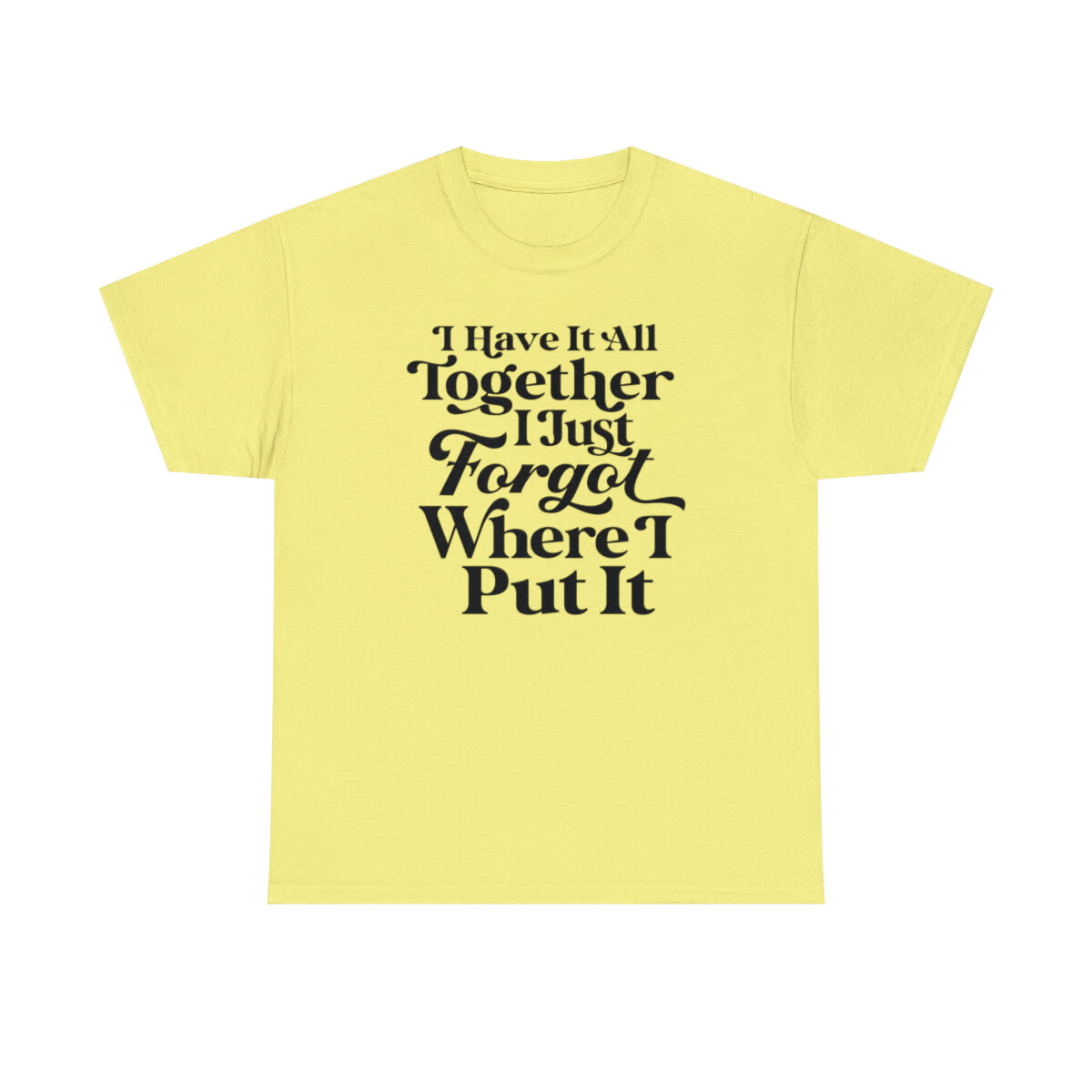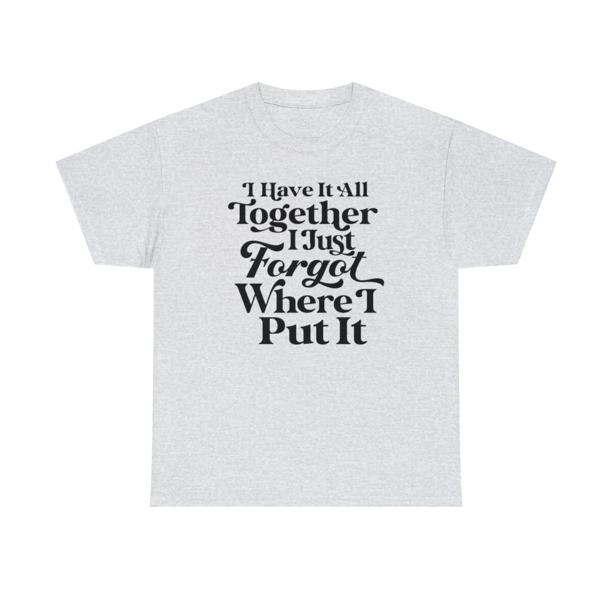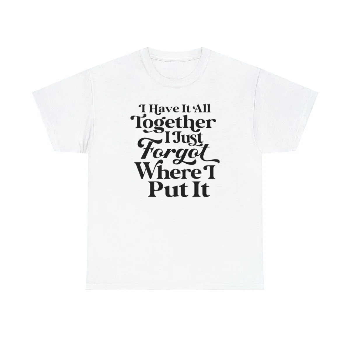 Add a touch of humor to your day and embrace the relatable chaos of life with our witty t-shirt that states, "I have it all together, I just forgot where I put it." With this design, you can express your playful side while acknowledging the common experience of misplacing things amidst the busyness of life.