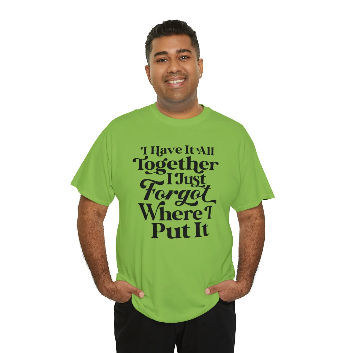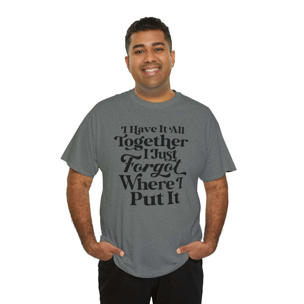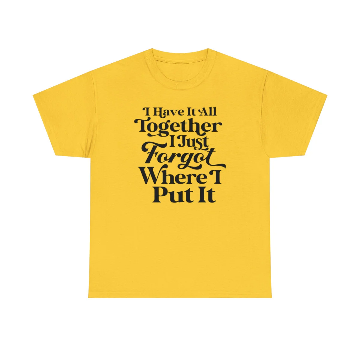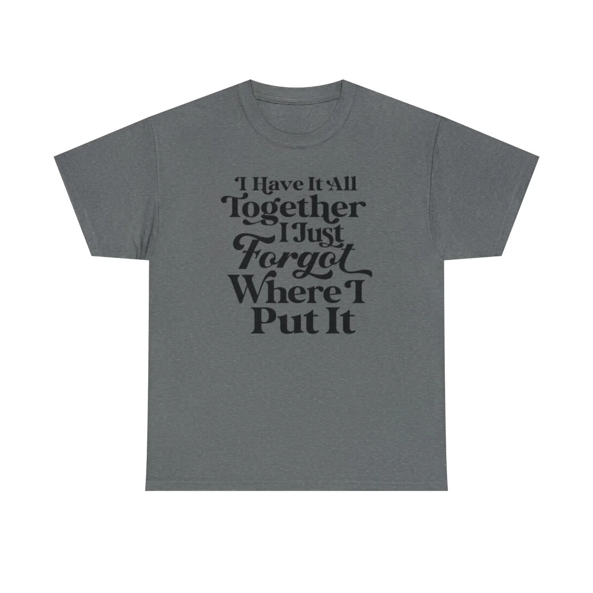 Add a touch of humor to your day and embrace the relatable chaos of life with our witty t-shirt that states, "I have it all together, I just forgot where I put it." With this design, you can express your playful side while acknowledging the common experience of misplacing things amidst the busyness of life.
