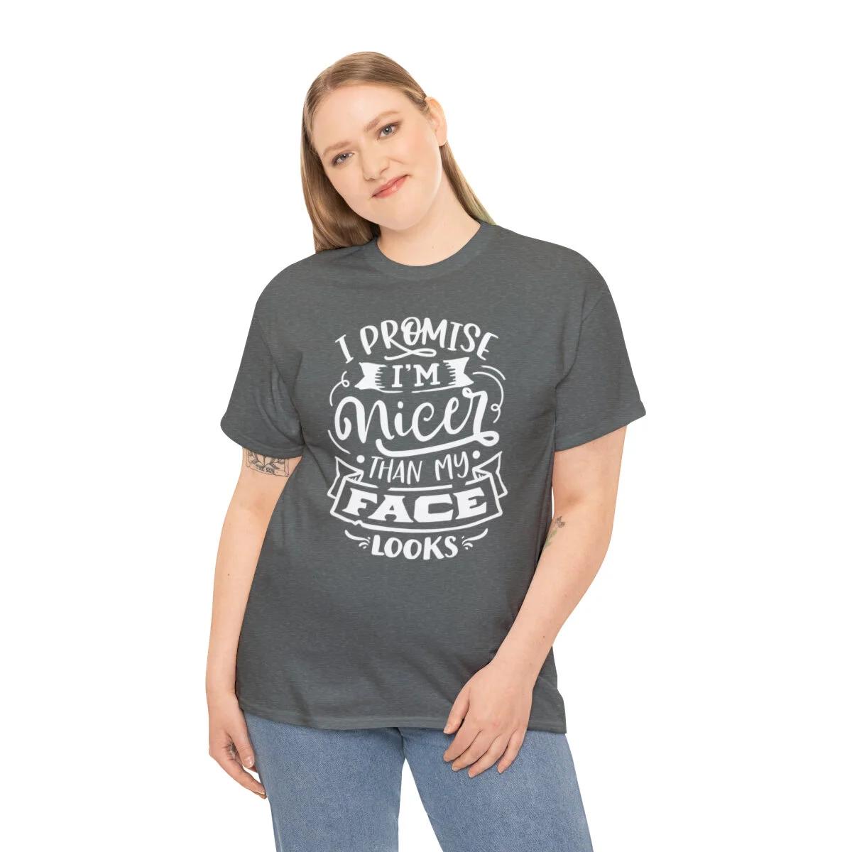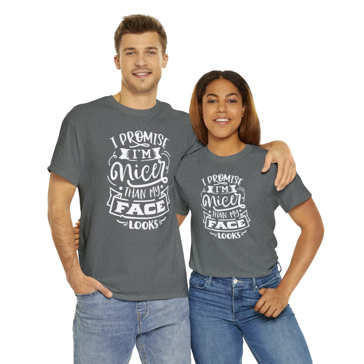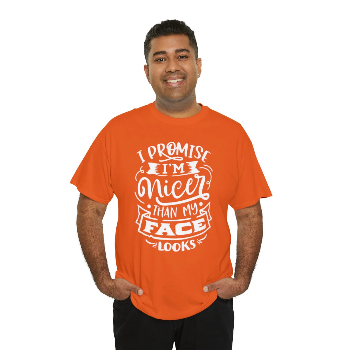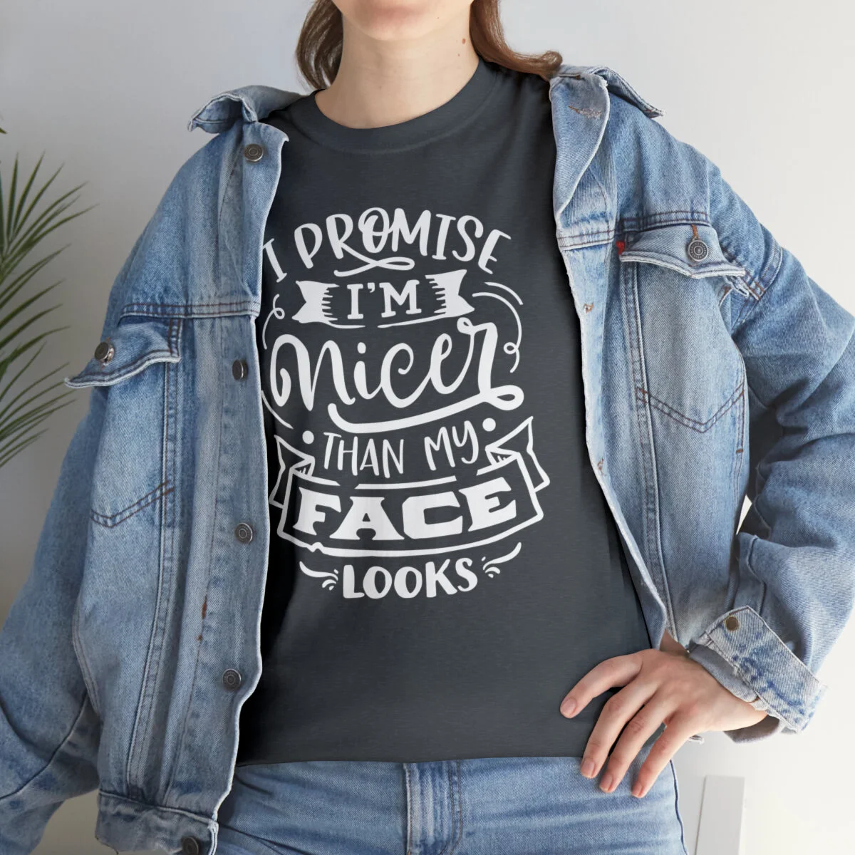 I promise I'm nicer than my face looks. Sarcastic T Shirt