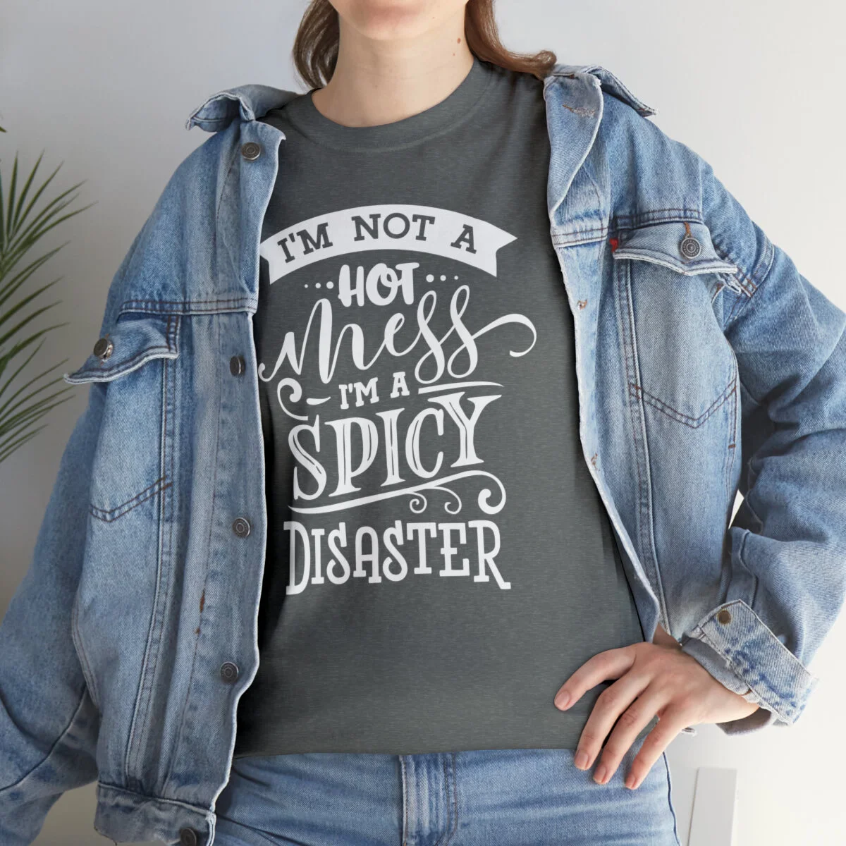 "I'm not a hot mess, I'm a spicy disaster." Sarcastic Tee.