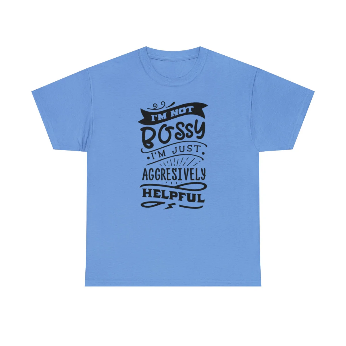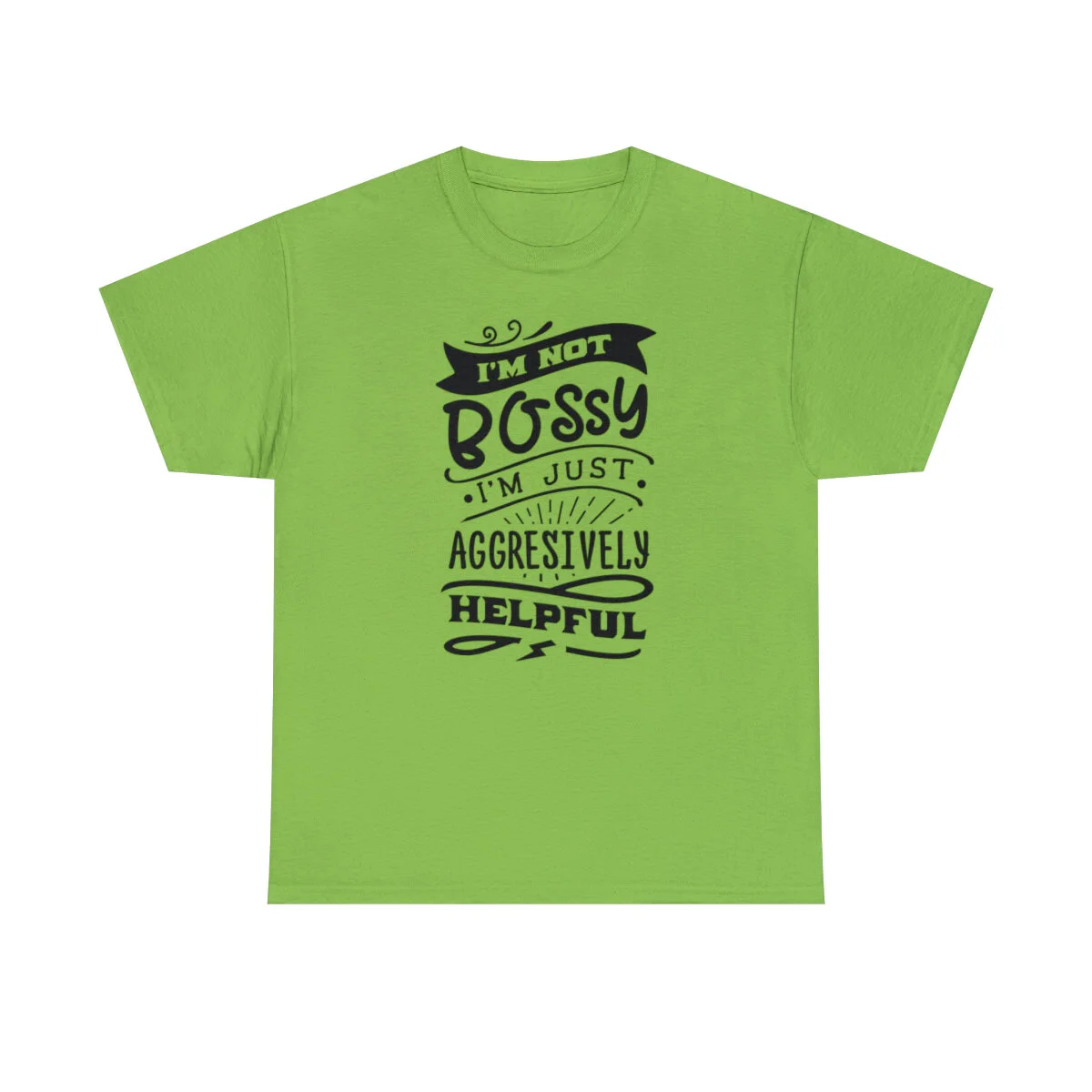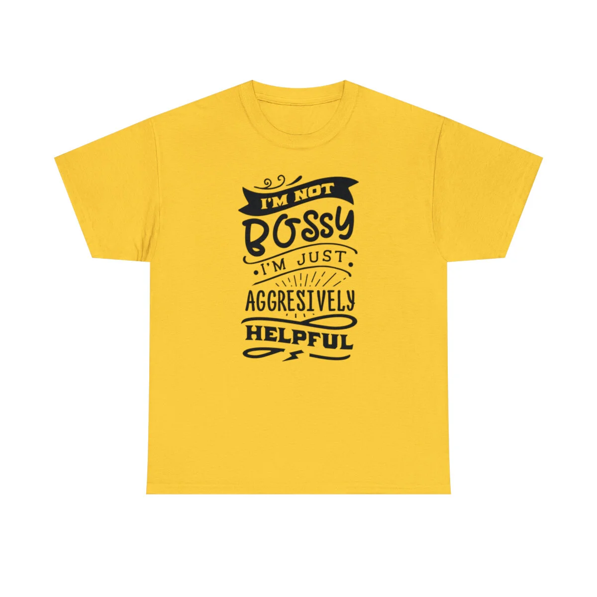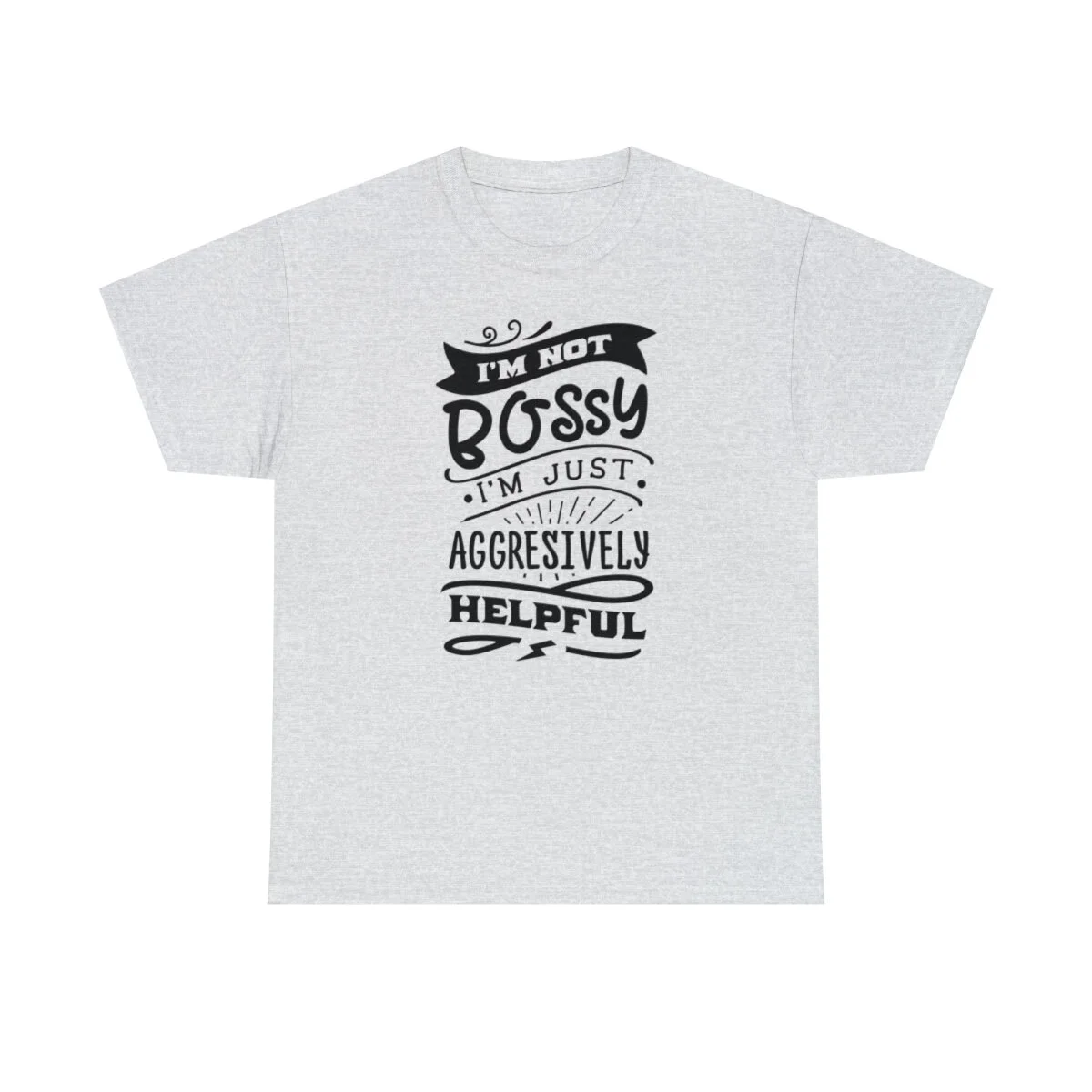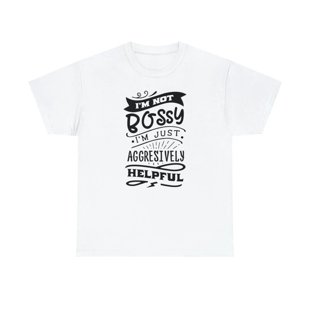 Get ready to showcase your sarcastic side with our brilliantly witty t-shirt that playfully challenges the notion of being labeled as "bossy"! With our "I'm not bossy, just aggressively helpful" design, you can humorously assert your willingness to take charge and lend a helping hand.