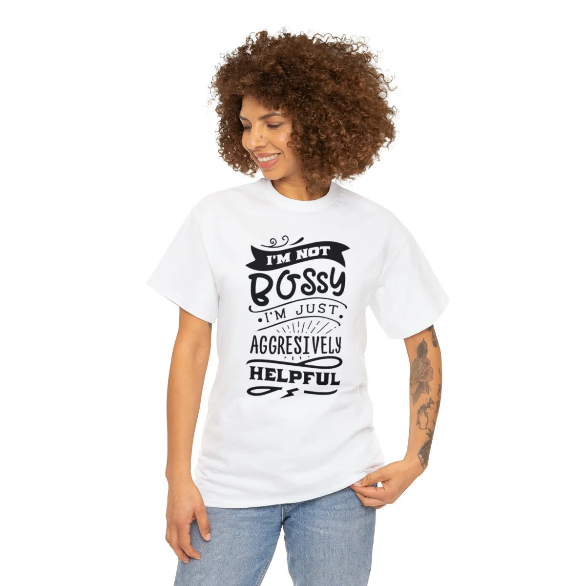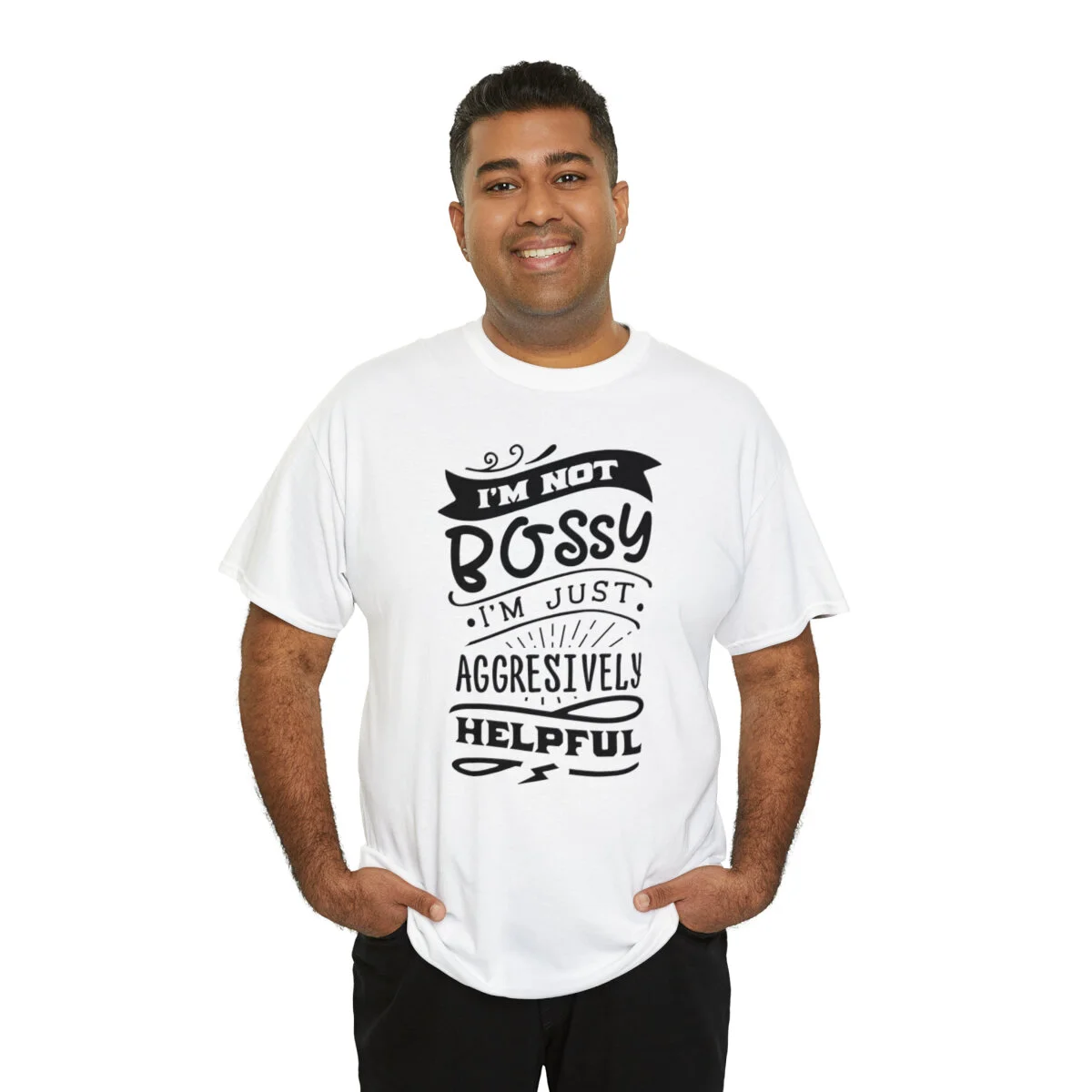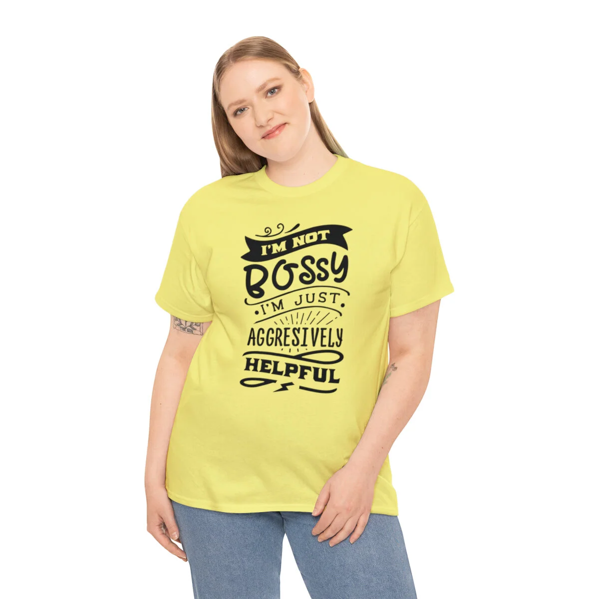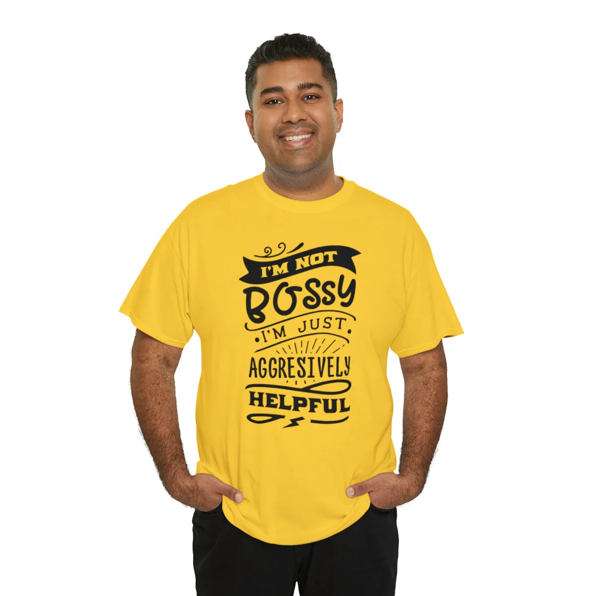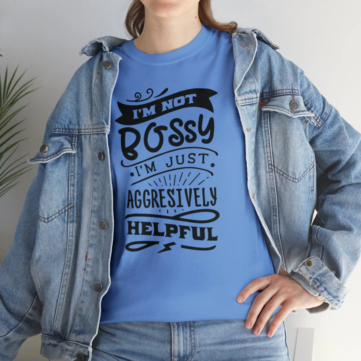 Get ready to showcase your sarcastic side with our brilliantly witty t-shirt that playfully challenges the notion of being labeled as "bossy"! With our "I'm not bossy, just aggressively helpful" design, you can humorously assert your willingness to take charge and lend a helping hand.