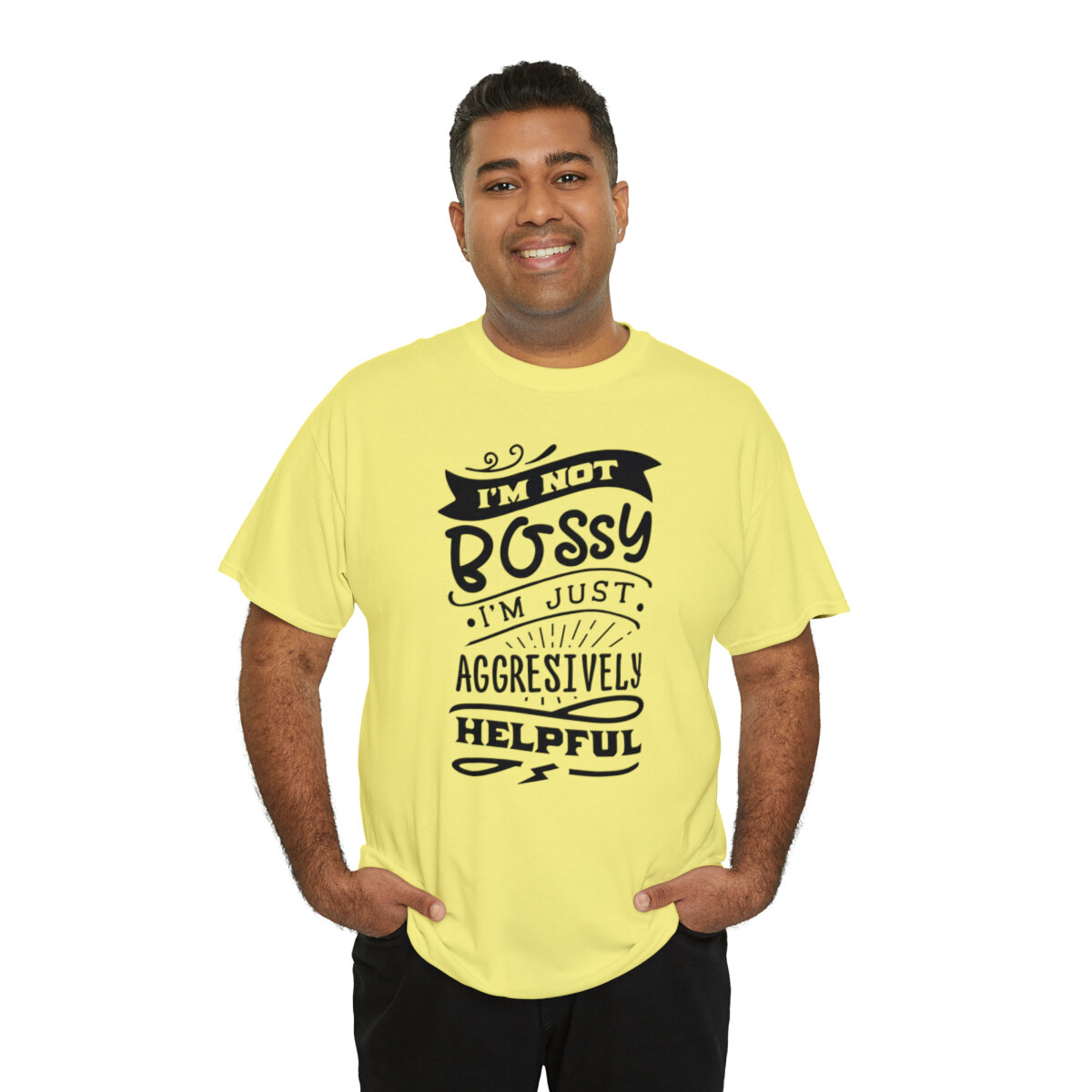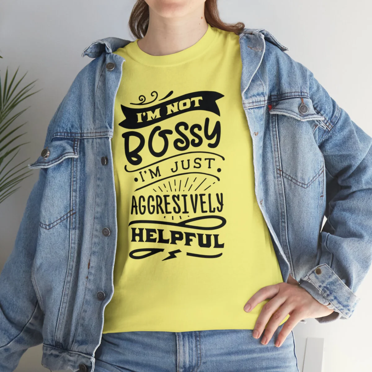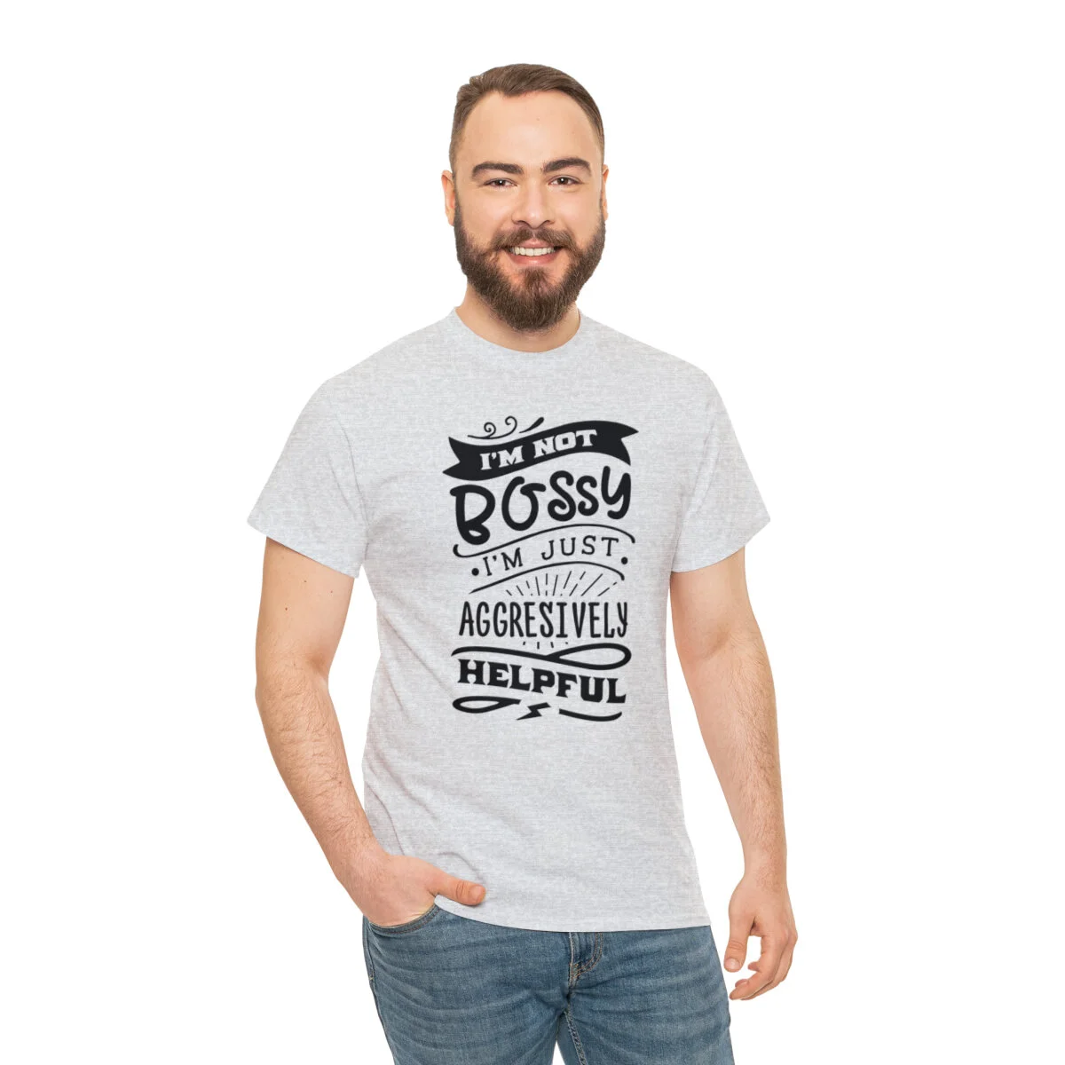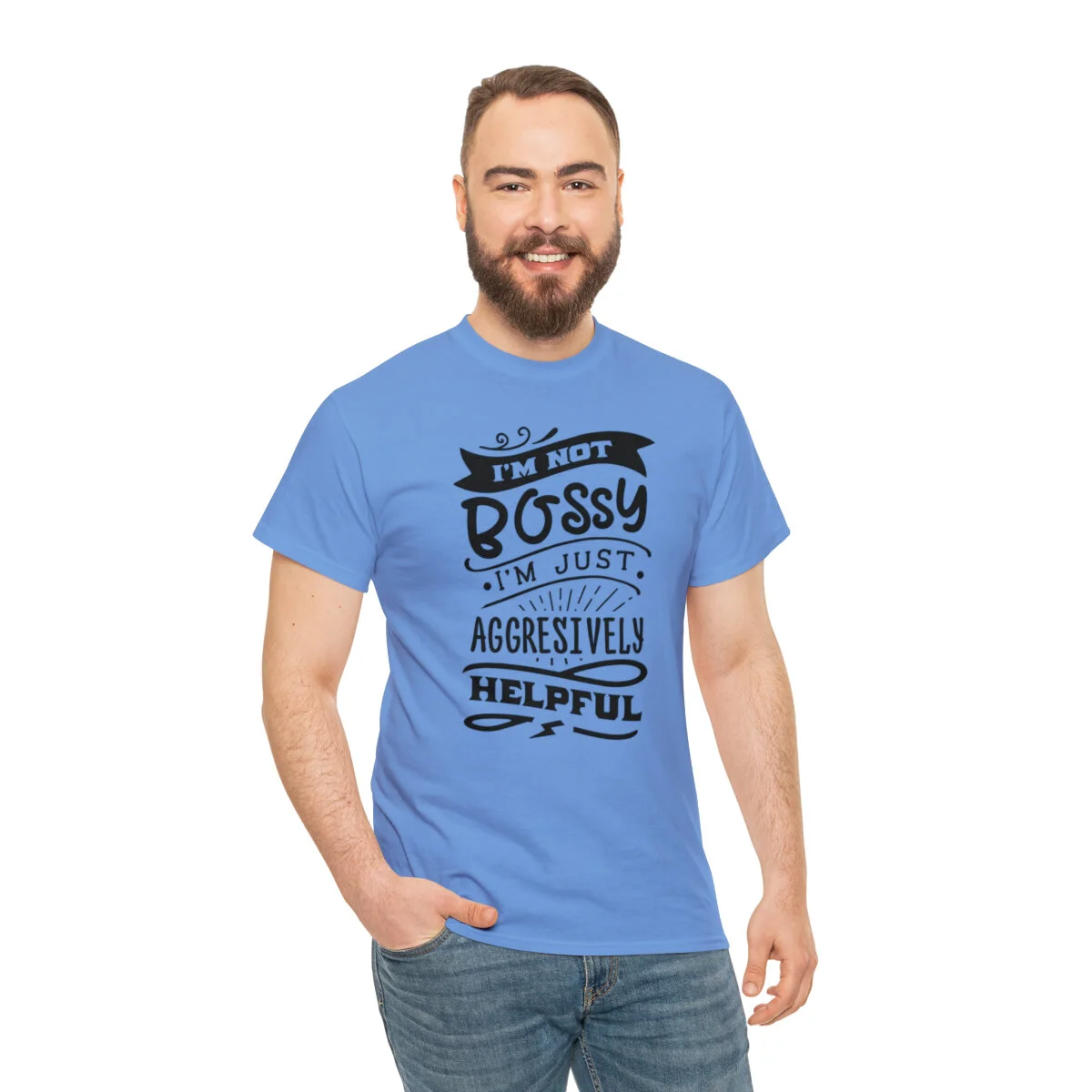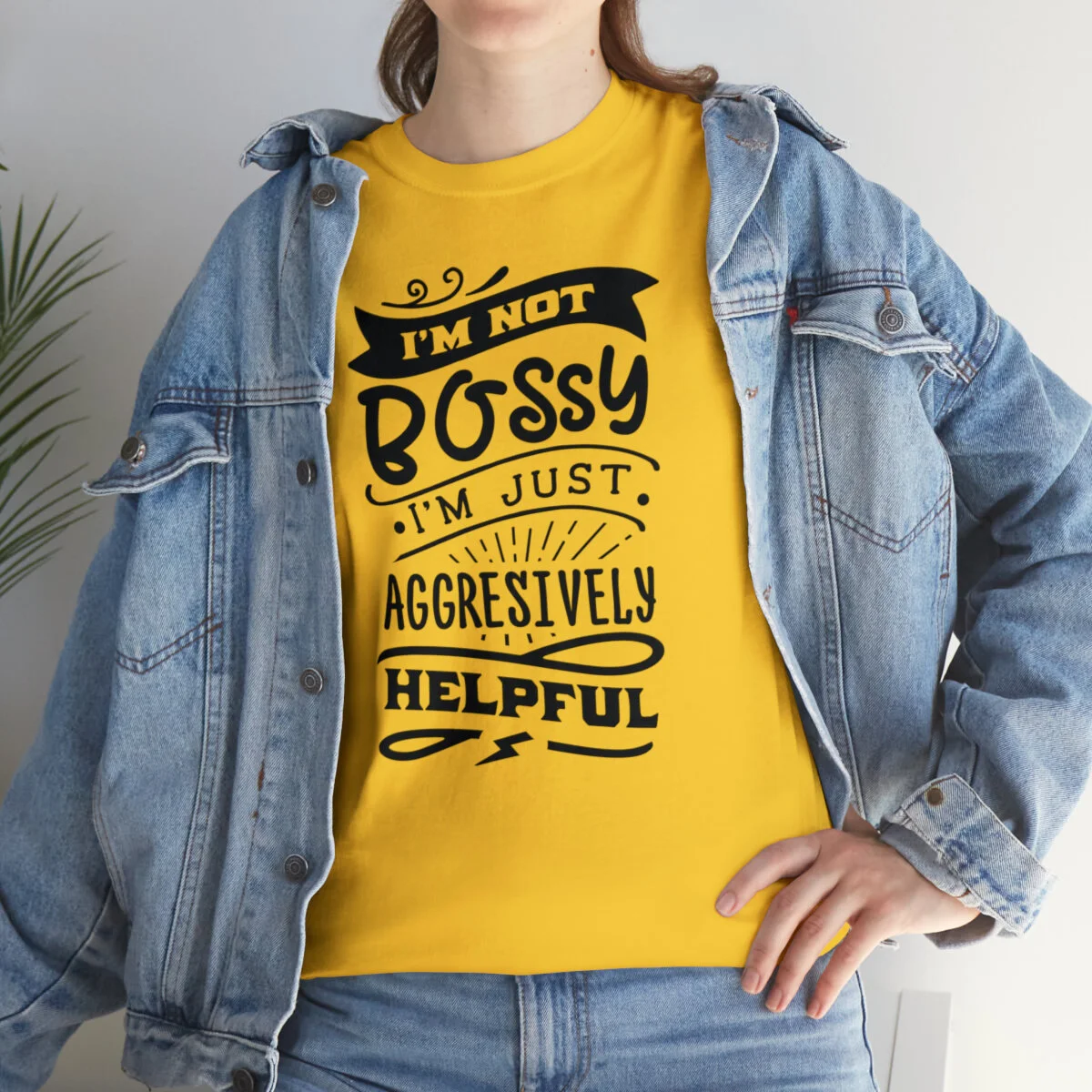 Get ready to showcase your sarcastic side with our brilliantly witty t-shirt that playfully challenges the notion of being labeled as "bossy"! With our "I'm not bossy, just aggressively helpful" design, you can humorously assert your willingness to take charge and lend a helping hand.