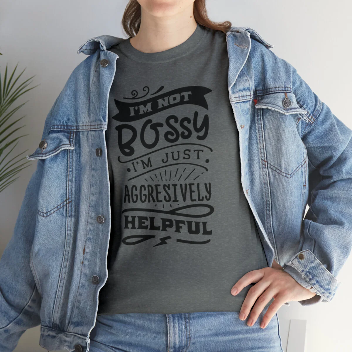 Please note that this design is intended to be light-hearted and humorous. Wear it in good fun and let your assertive side shine. Embrace your helpful nature, spark laughter, and proudly wear the "I'm not bossy, just aggressively helpful" t-shirt that combines wit and self-assuredness in one stylish package!