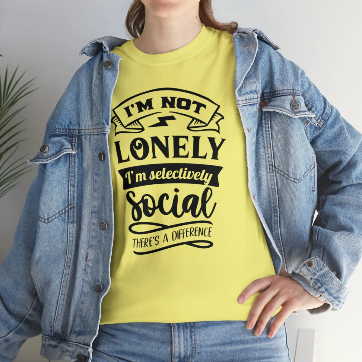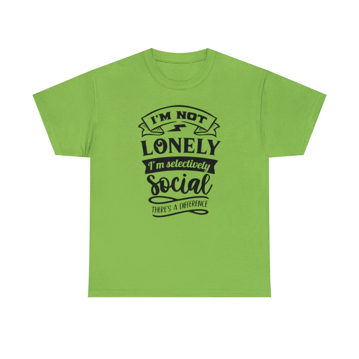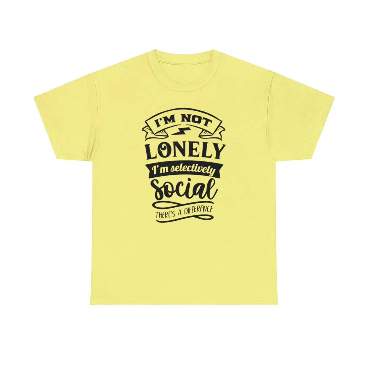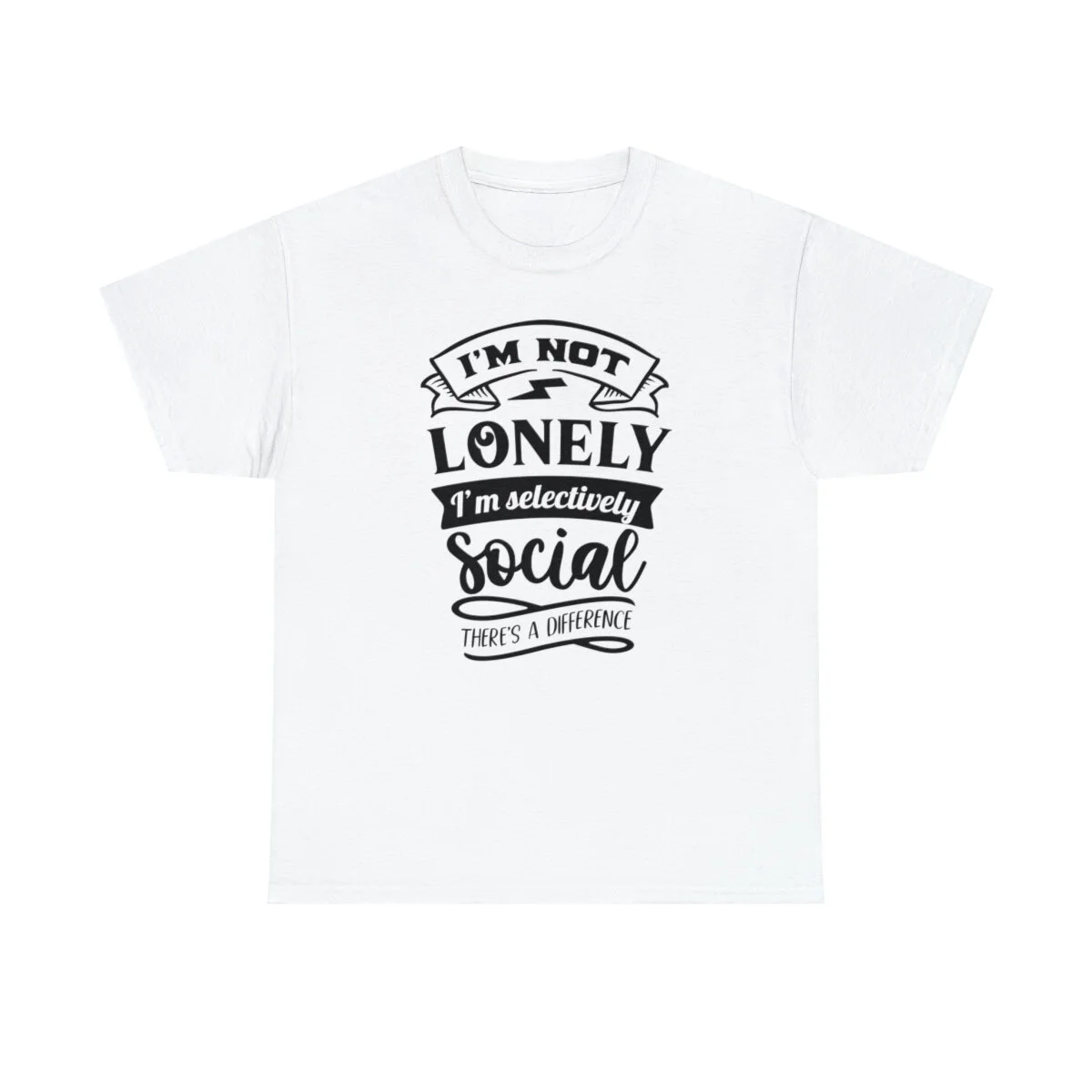 Crafted with care, this t-shirt is made from high-quality fabric to ensure exceptional comfort and durability. The design features the clever phrase, "I'm not lonely, I'm just selectively social. There's a difference." elegantly displayed in multiple colors. Choose from a variety of vibrant options, including red, blue, yellow, or classic black and white, to find the hue that best matches your style and personality.