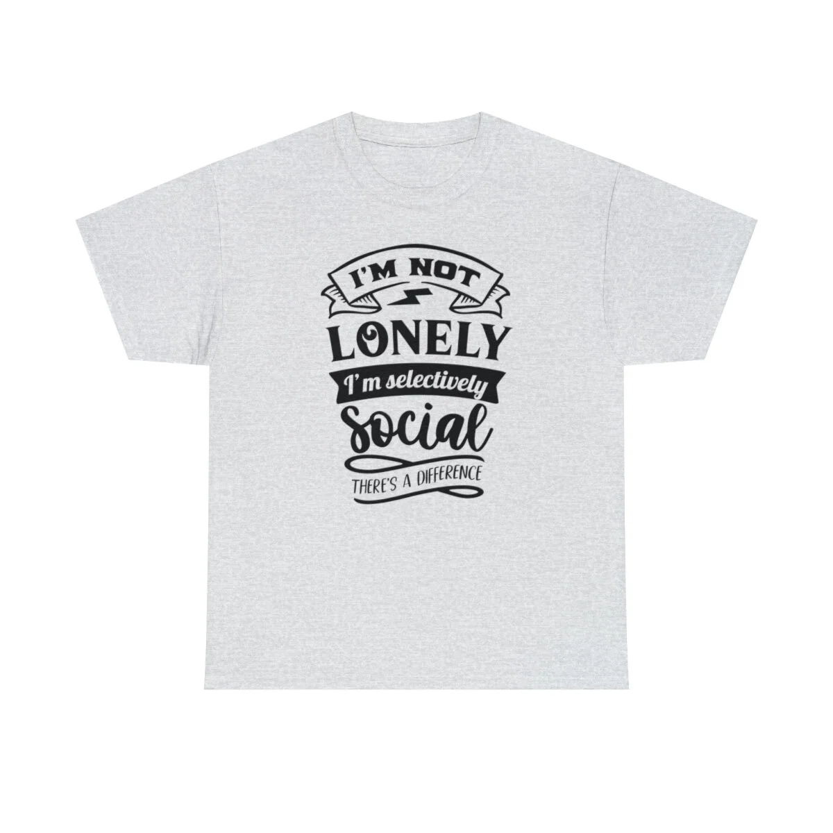Embrace your sarcastic sense of humor with our delightfully witty t-shirt that challenges the notion of loneliness and celebrates selective socializing! With our "I'm not lonely, I'm just selectively social. There's a difference." design, you can humorously assert your preference for quality over quantity in your social interactions.