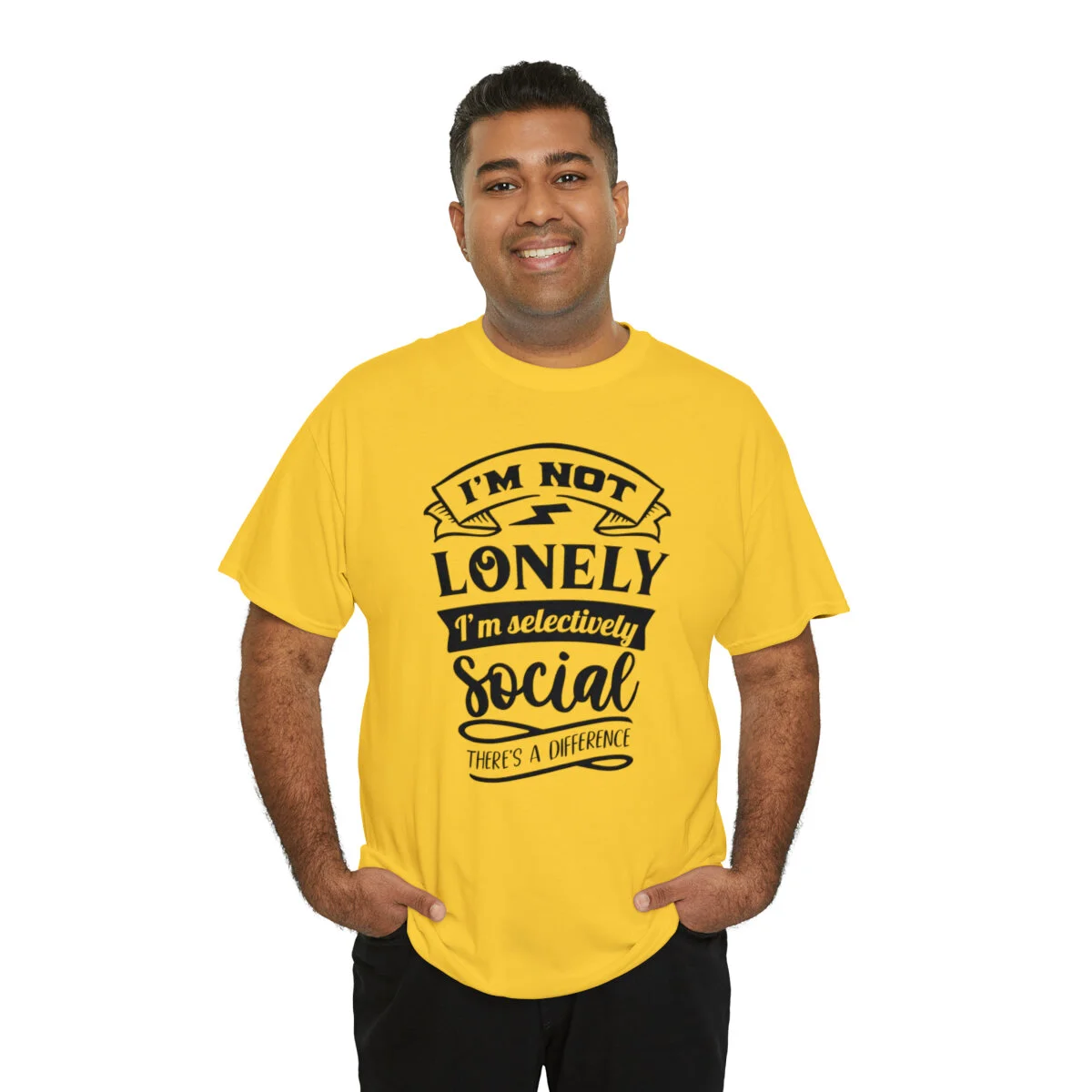Please note that this design is intended to be light-hearted and humorous. Wear it in good fun and let your individuality shine. Embrace the power of selective socializing, provoke laughter, and proudly wear the "I'm not lonely, I'm just selectively social. There's a difference." t-shirt that combines wit and self-assurance in one stylish package!