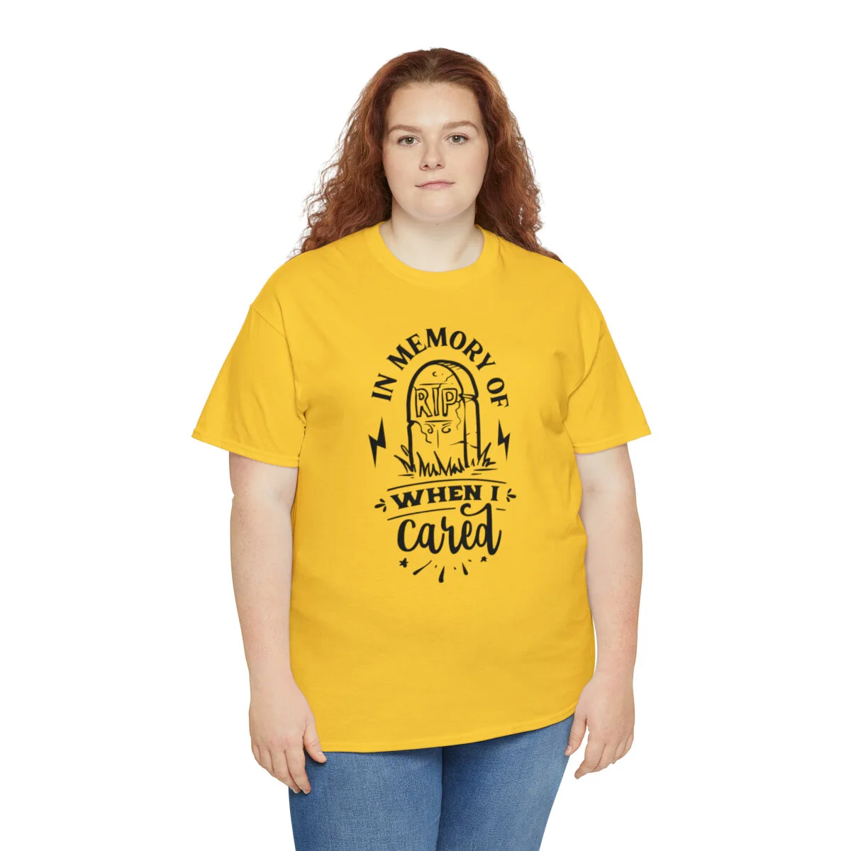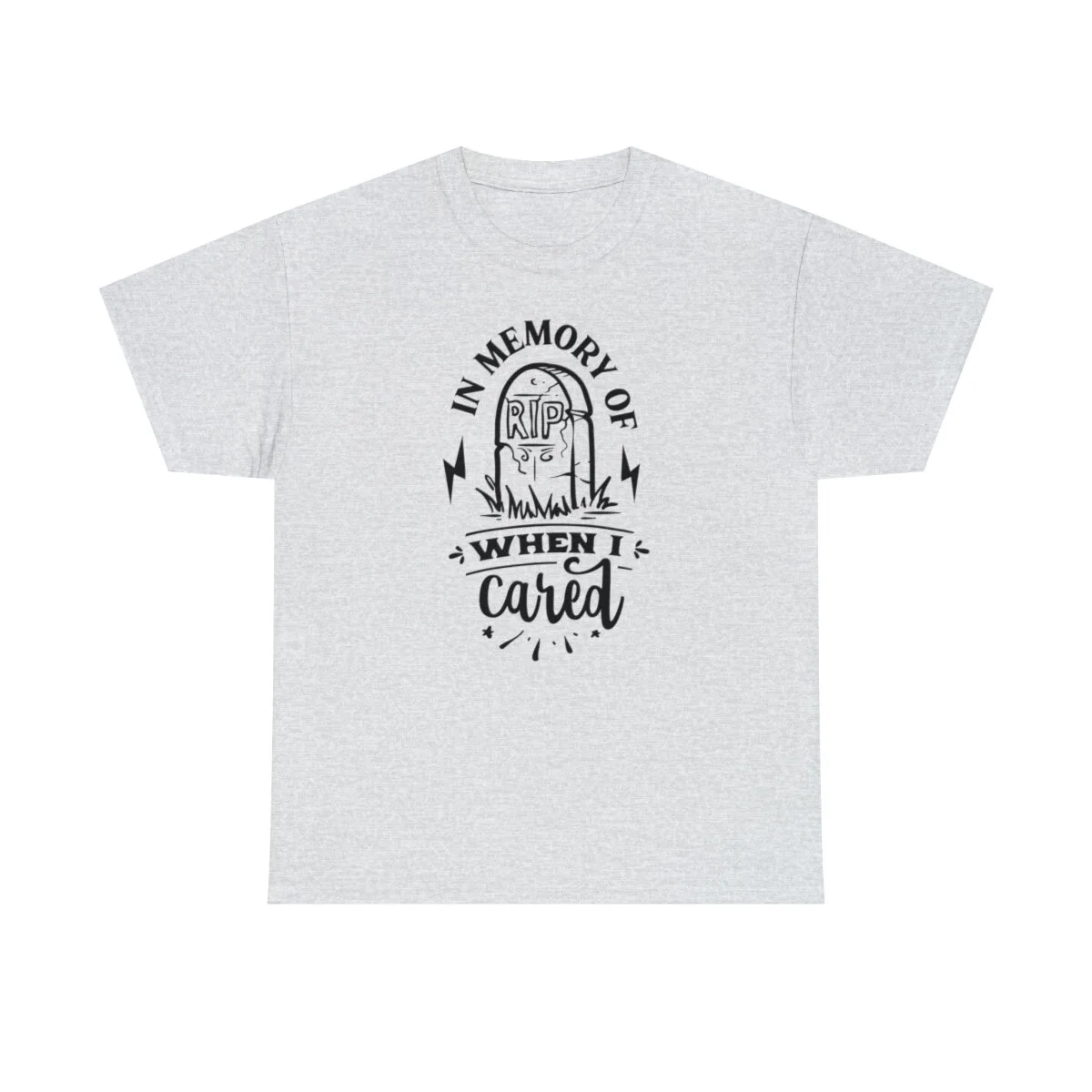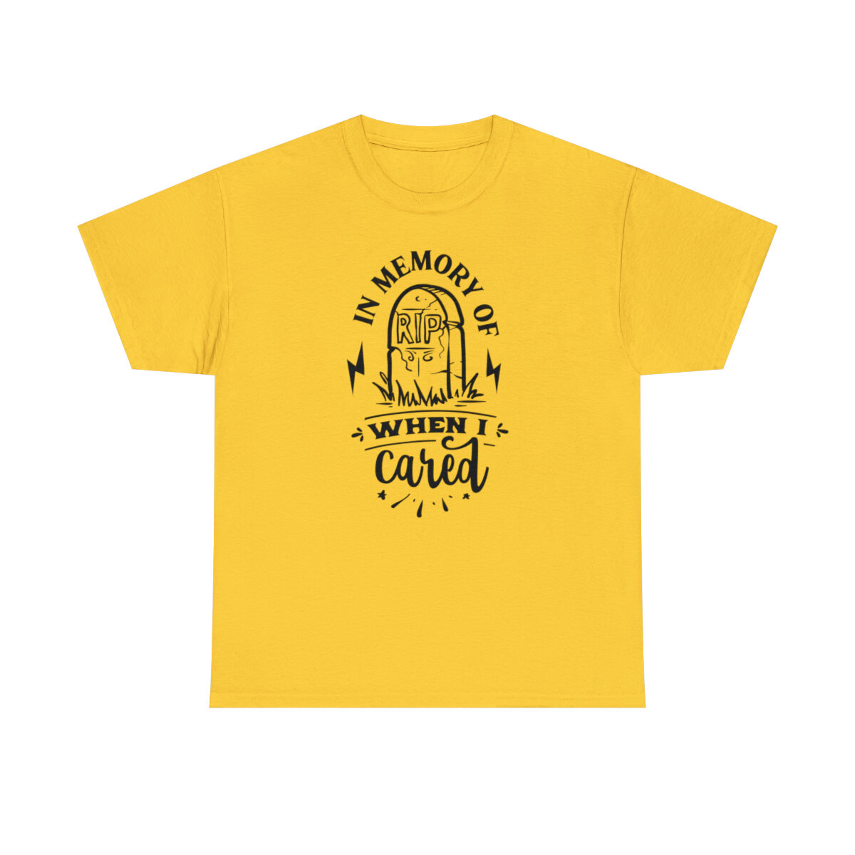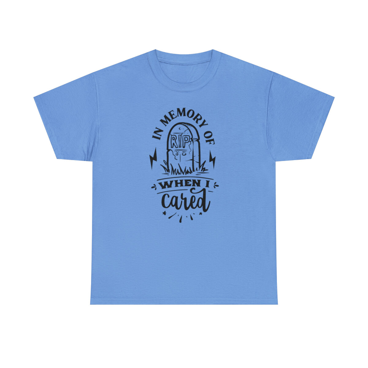 Inject a dose of sarcastic nostalgia into your wardrobe with our brilliantly witty t-shirt that playfully reminisces about the days when you cared! With our "In memory of when I cared" design, you can humorously express a shift in your priorities and a newfound carefree attitude.