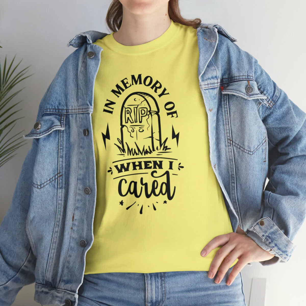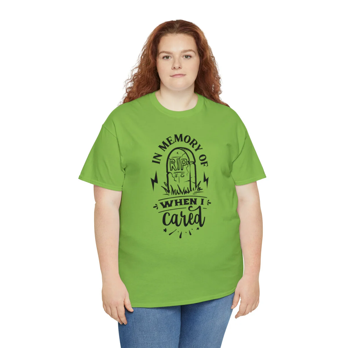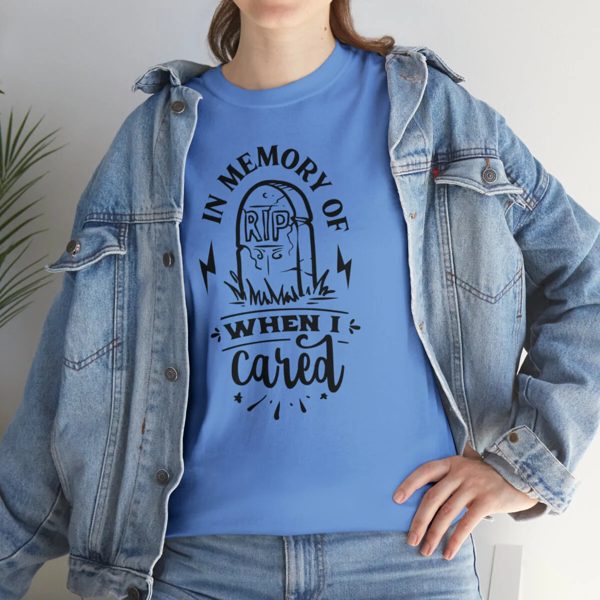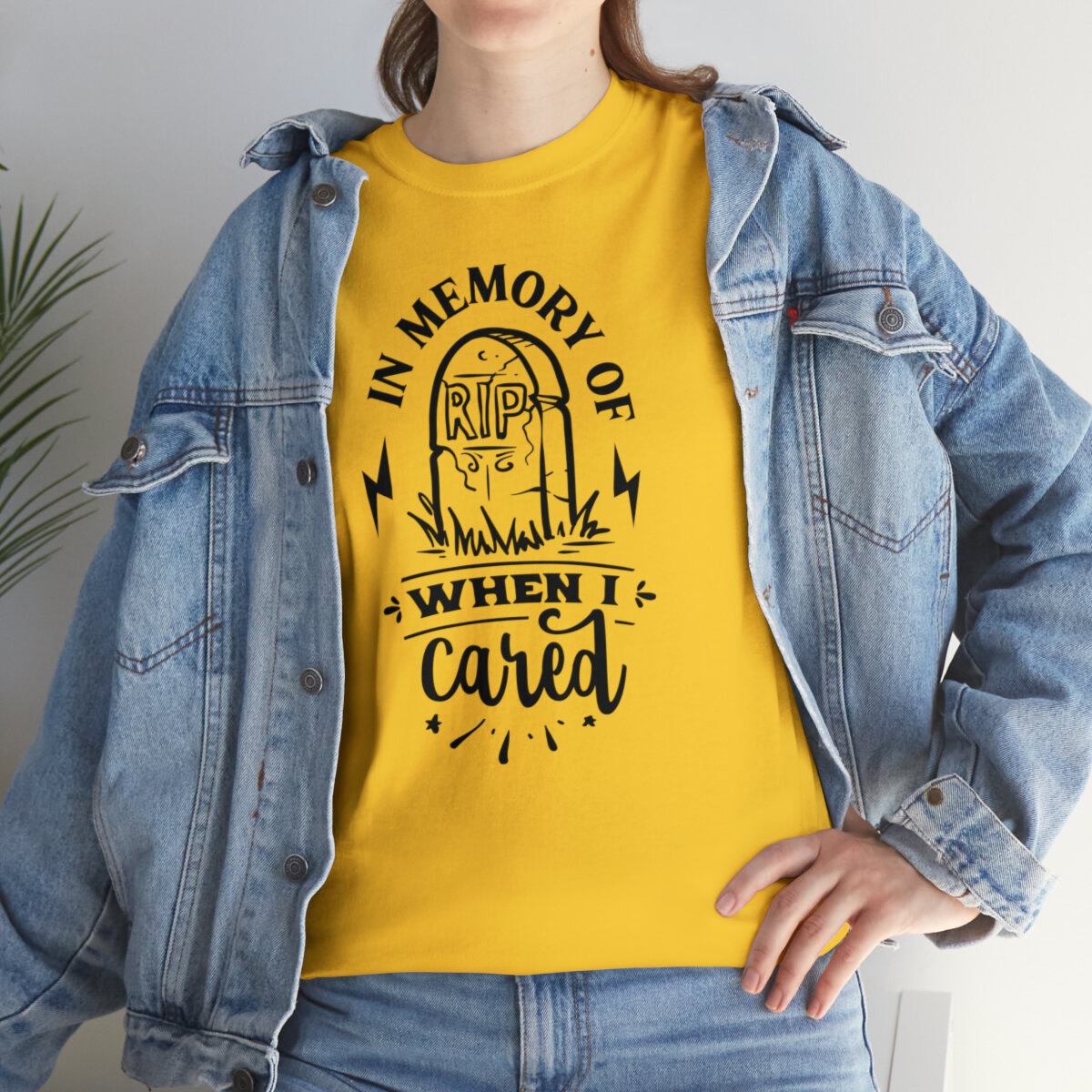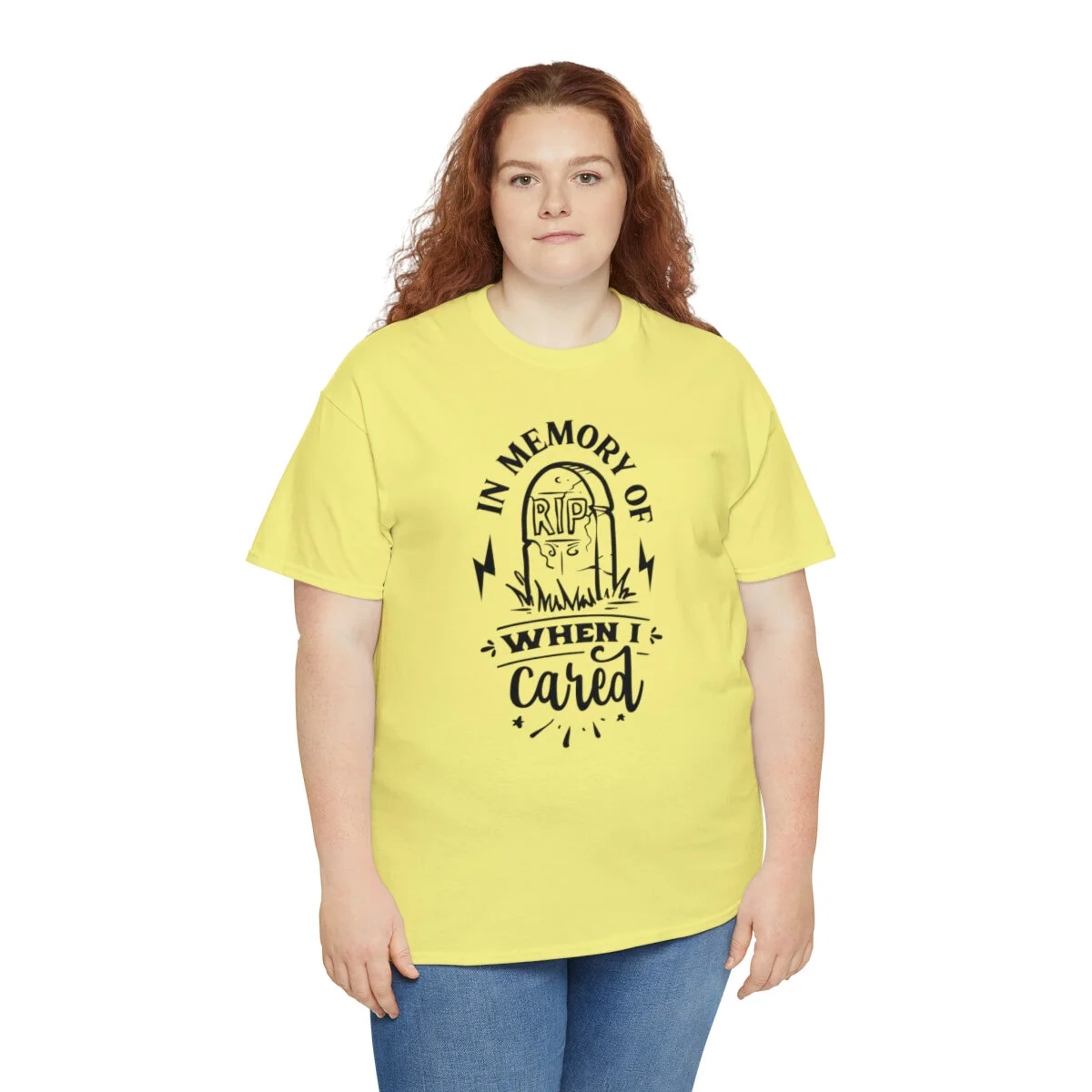 Inject a dose of sarcastic nostalgia into your wardrobe with our brilliantly witty t-shirt that playfully reminisces about the days when you cared! With our "In memory of when I cared" design, you can humorously express a shift in your priorities and a newfound carefree attitude.