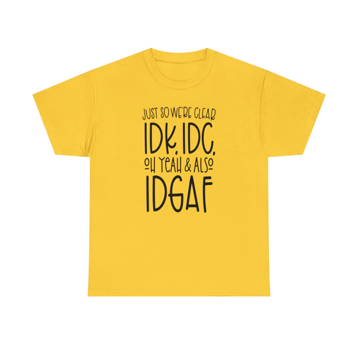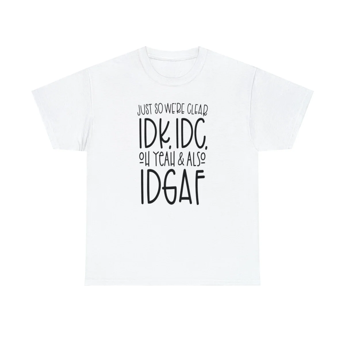 Just so we're clear, IDK, IDC. Oh Yeah & IDGAF. Tee.
