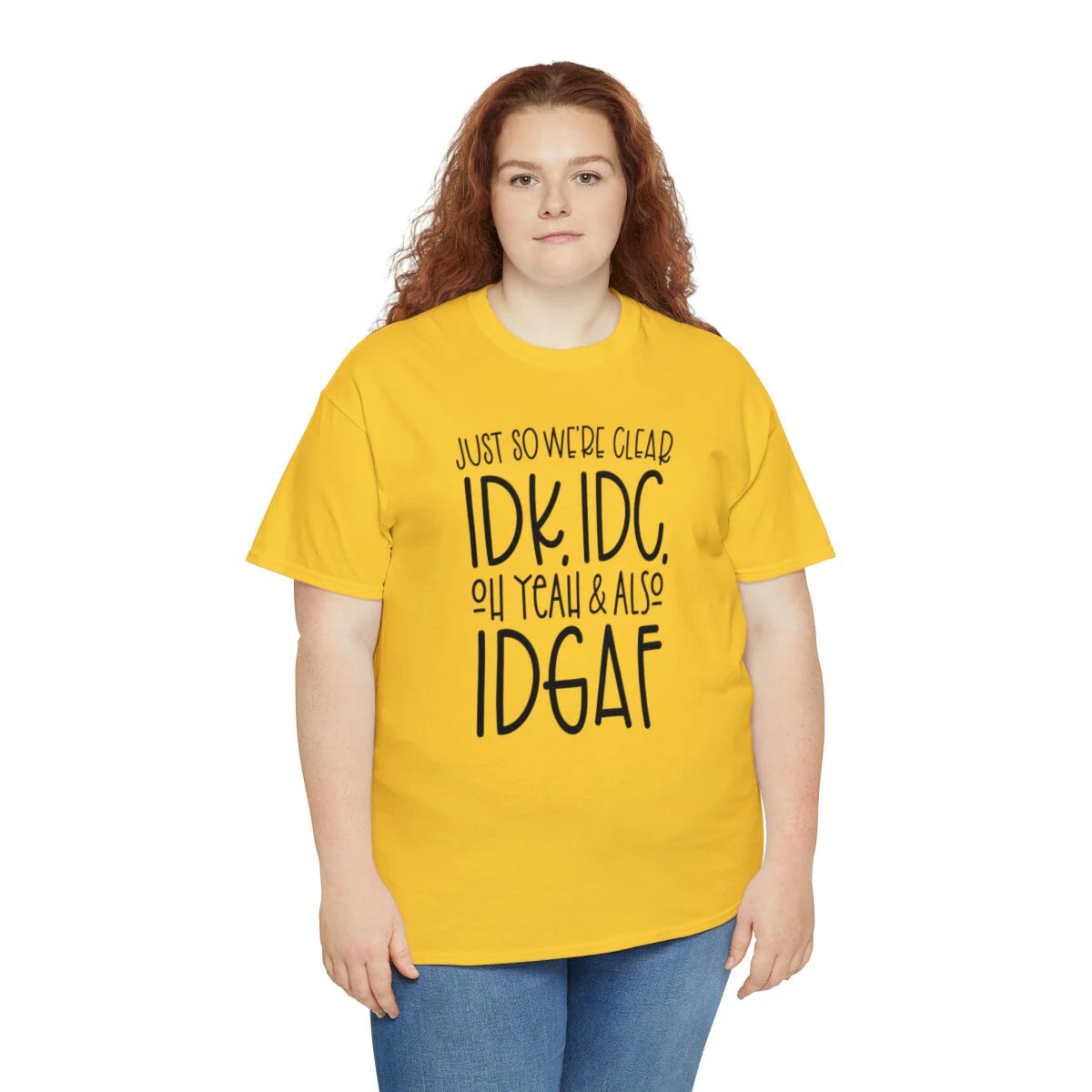 Please note that this design is intended to be edgy and assertive, celebrating the freedom to express yourself without holding back. Wear it with the intention of embracing your individuality and expressing your unapologetic nature. Embrace the bold message, initiate conversations, and proudly wear the "Just so we're clear, IDK. IDC. Oh Yeah & IDGAF." t-shirt that combines style, attitude, and a fearless mindset.