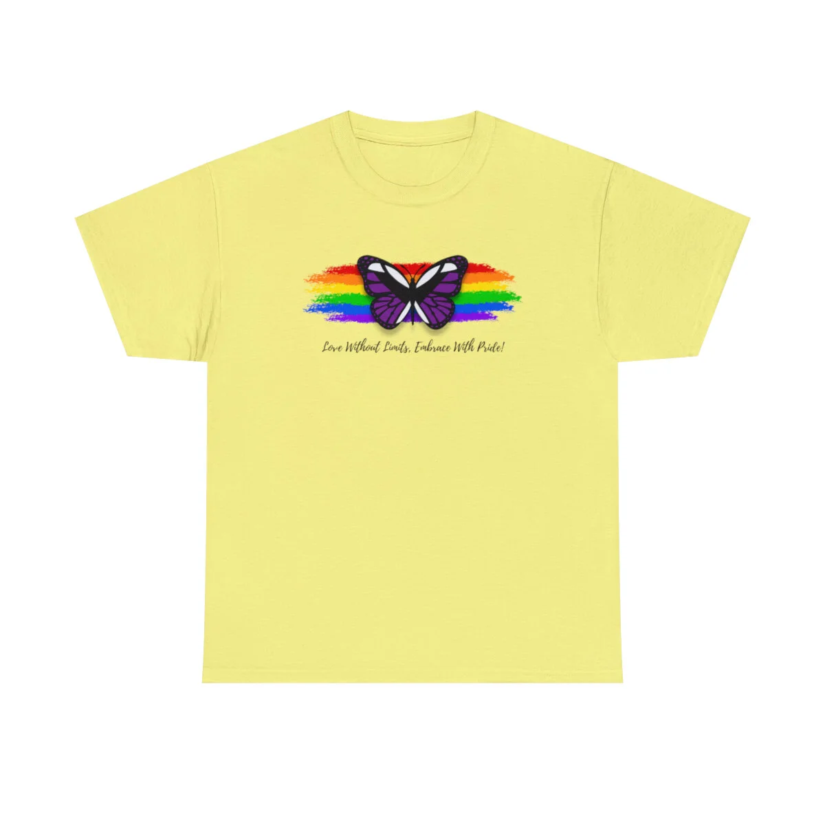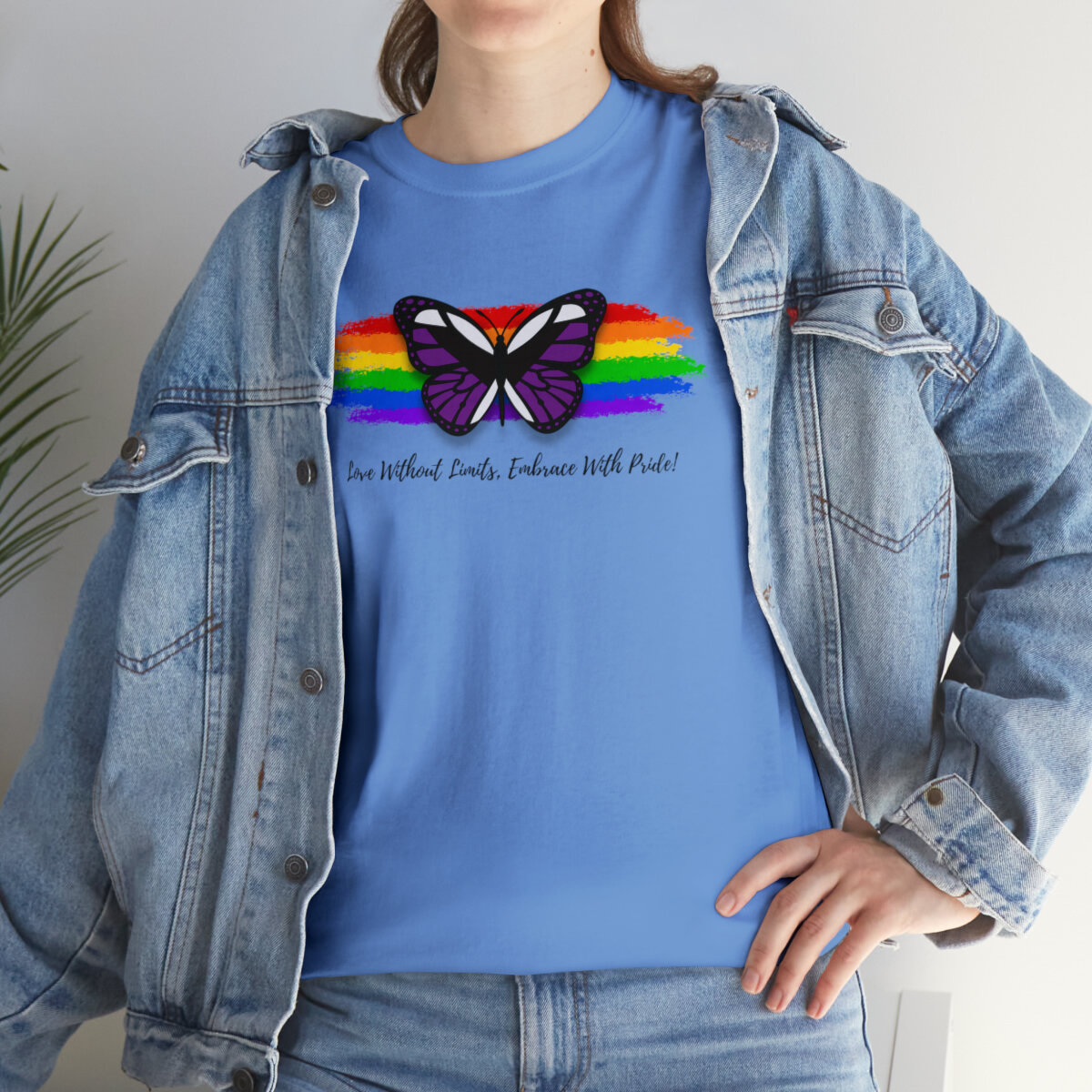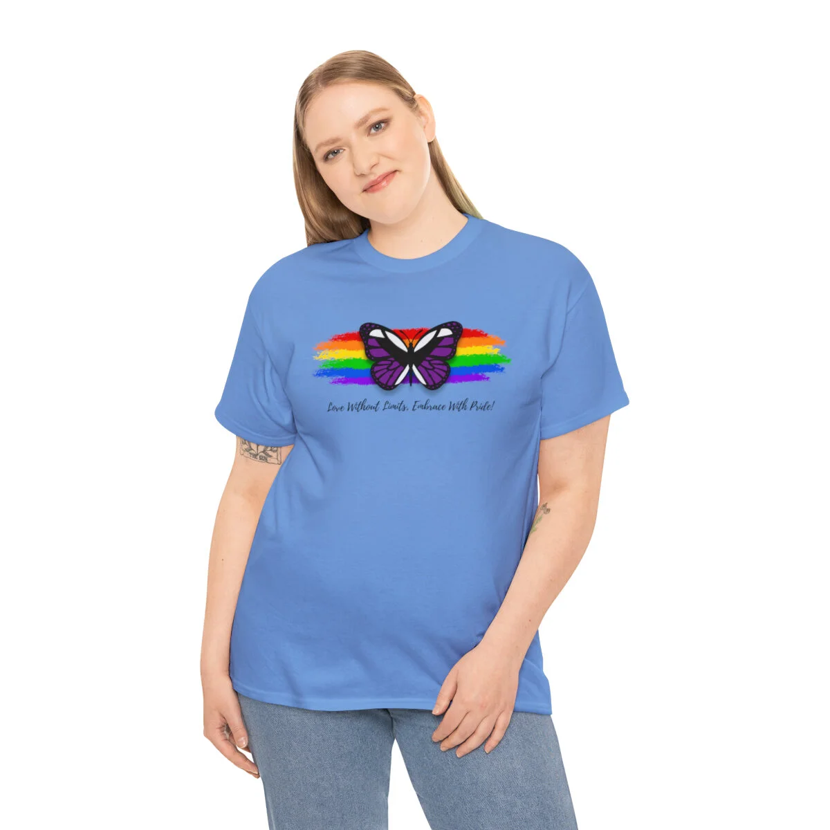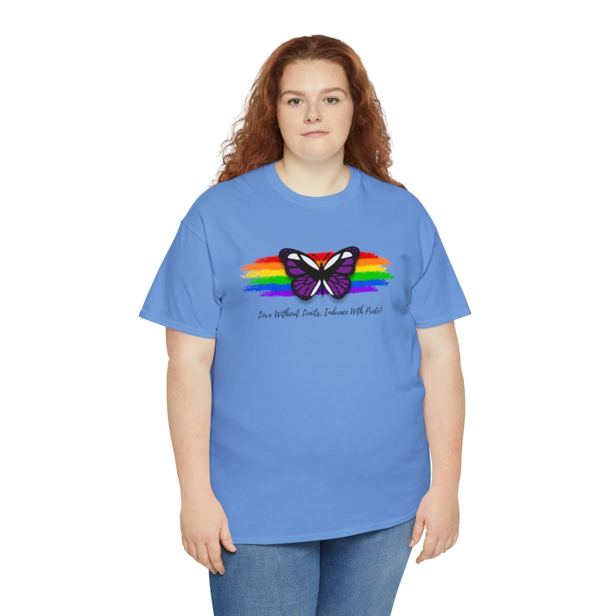 At the forefront of this design, we proudly showcase the empowering message "Love Without Limits, Embrace With Pride!" The bold typography represents the inclusive and accepting nature of the Labrys Lesbian identity, spreading love, support, and unity.