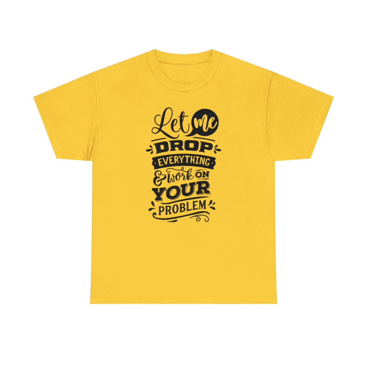 Unleash your sarcastic sense of humor with our brilliantly witty t-shirt that hilariously responds to demands with the statement, "Let me drop everything and work on your problem." With this design, you can humorously express the need for boundaries and priorities.