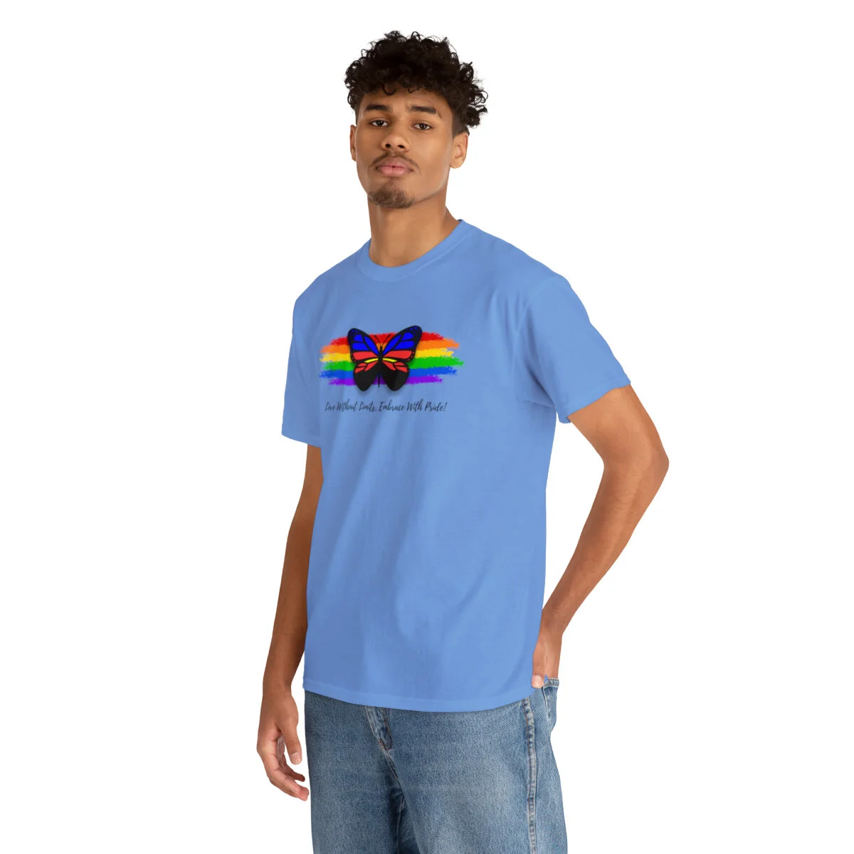 Introducing our Polyamory Pride T-shirt, expertly crafted with 100% cotton for unmatched comfort. This white tee celebrates the love, inclusivity, and commitment of the Polyamorous community, adorned with a vibrant rainbow background.