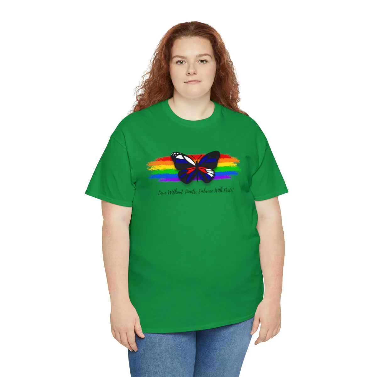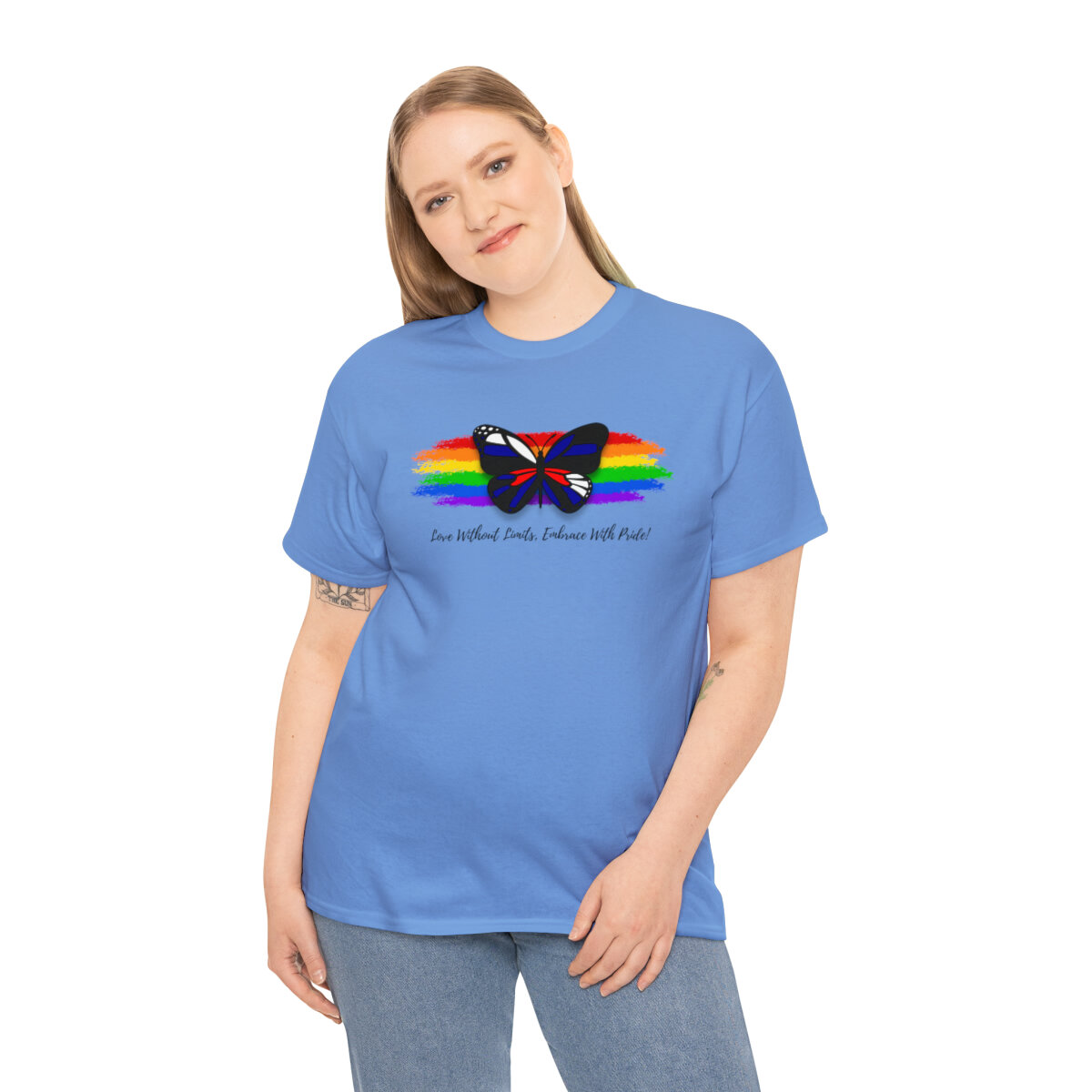 Introducing our Puppy Pride T-shirt, thoughtfully crafted with 100% cotton to provide unmatched comfort. This white tee celebrates the joy and inclusivity of the Puppy community, featuring a vibrant rainbow background.