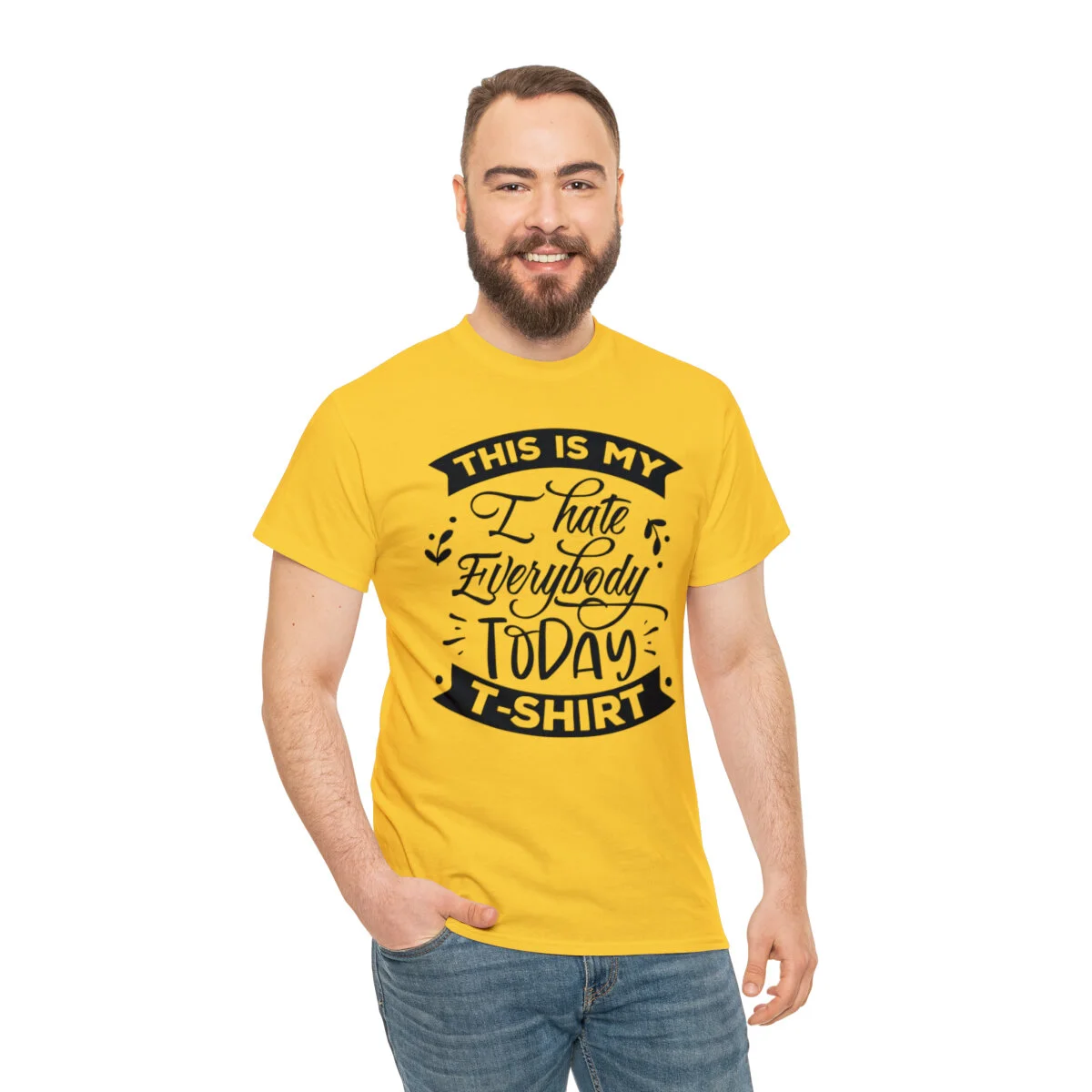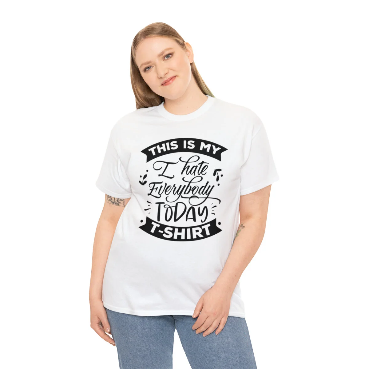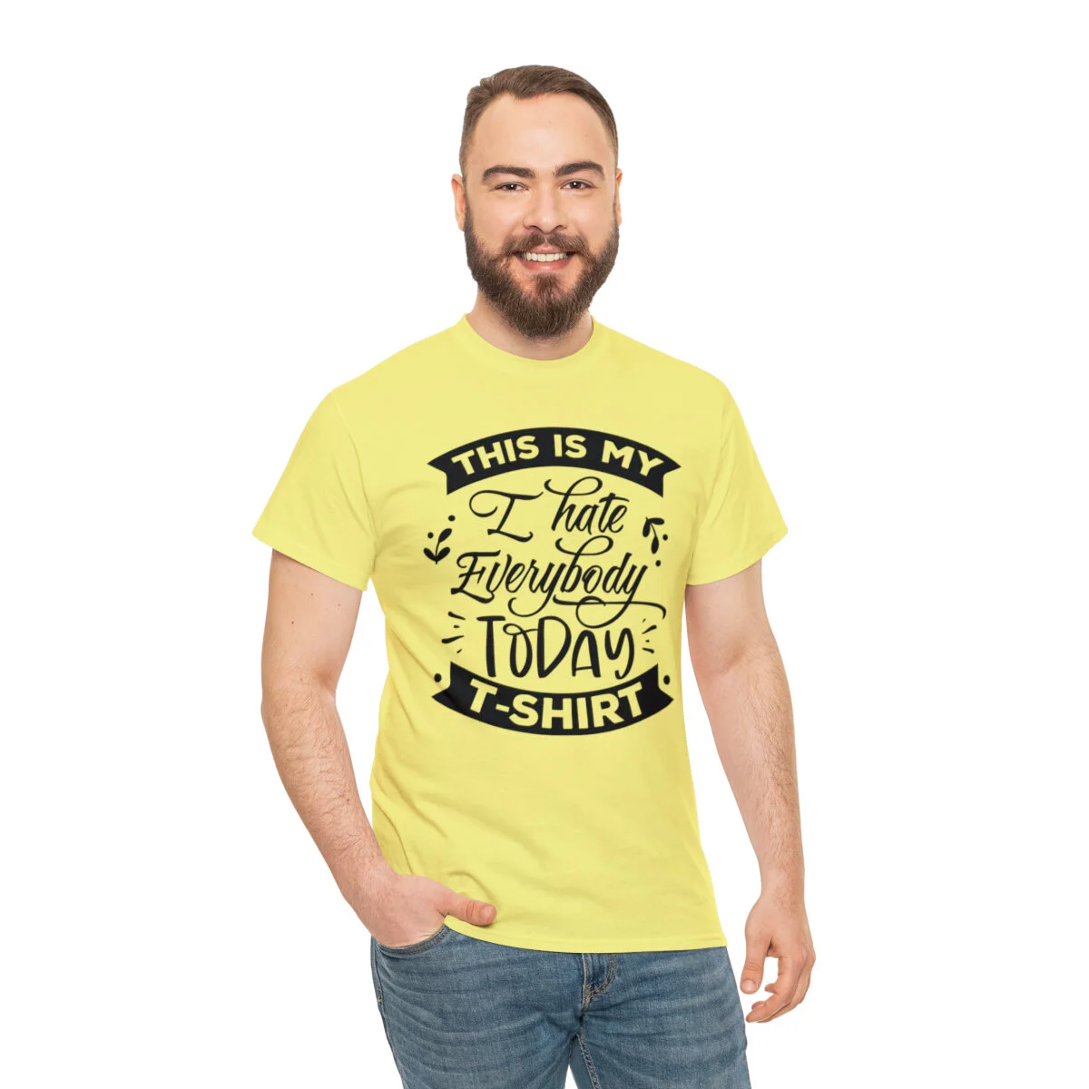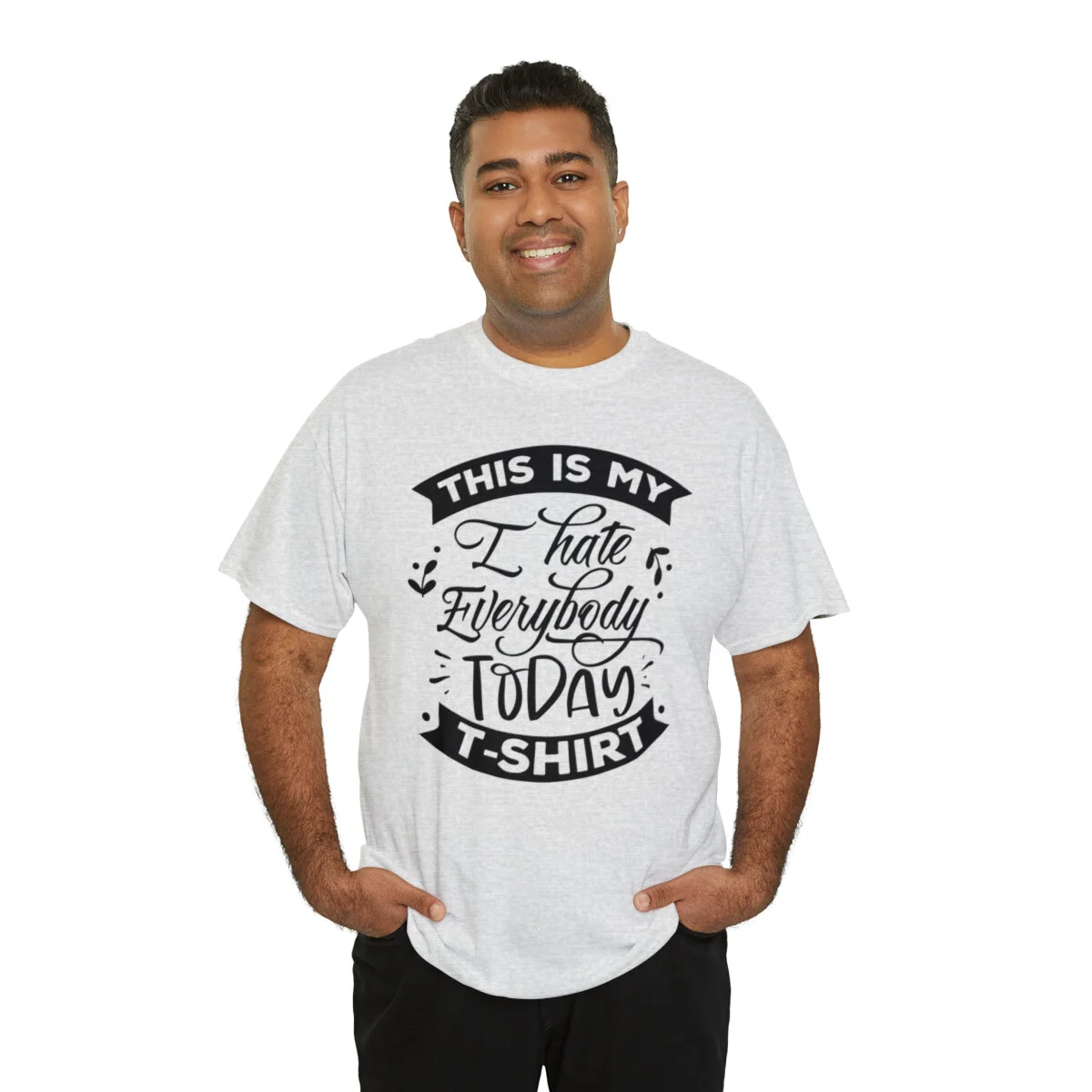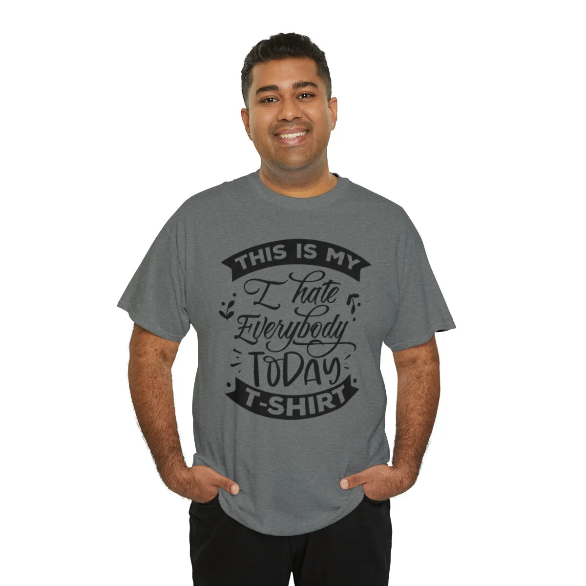 Express your sarcastic side with our delightfully blunt t-shirt that boldly states, "This is my I hate everybody today shirt." With this design, you can humorously convey your temporary disdain for the world around you.