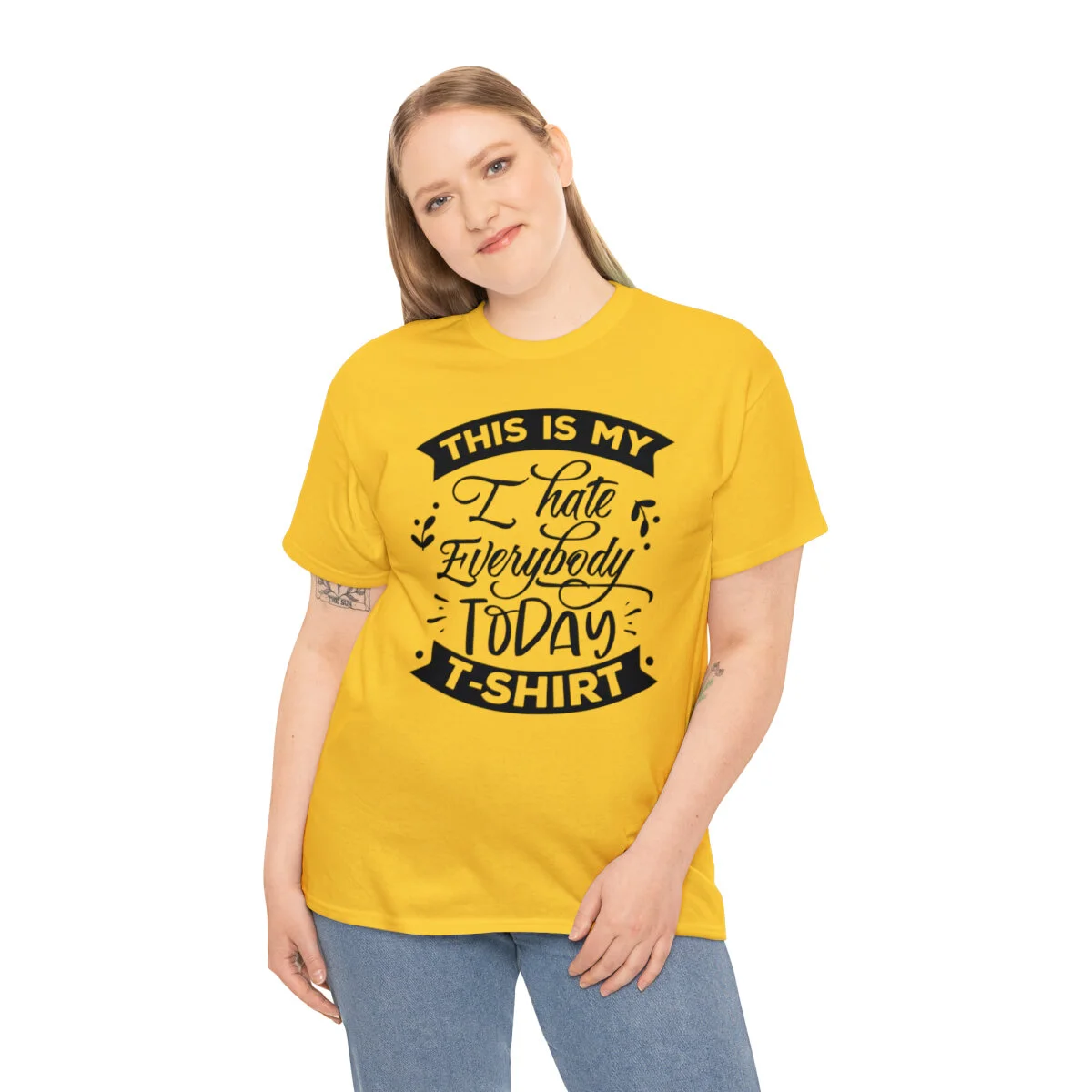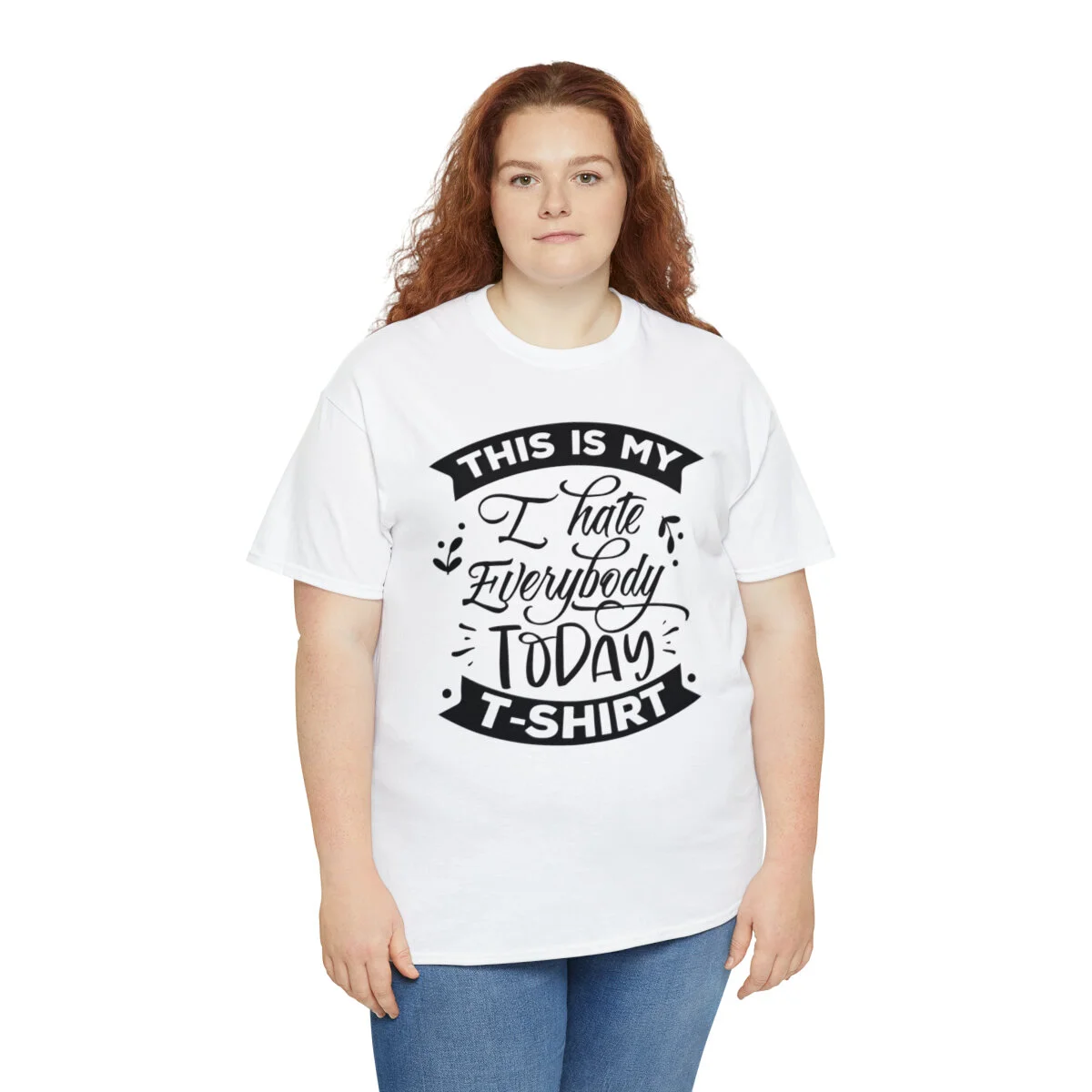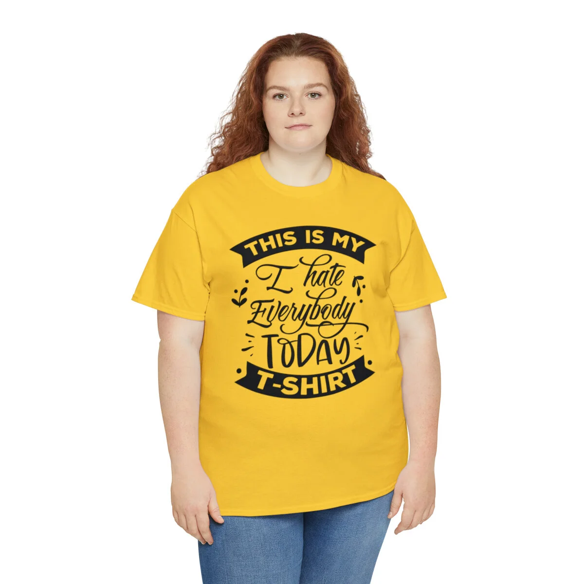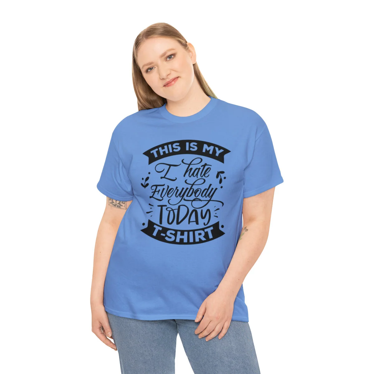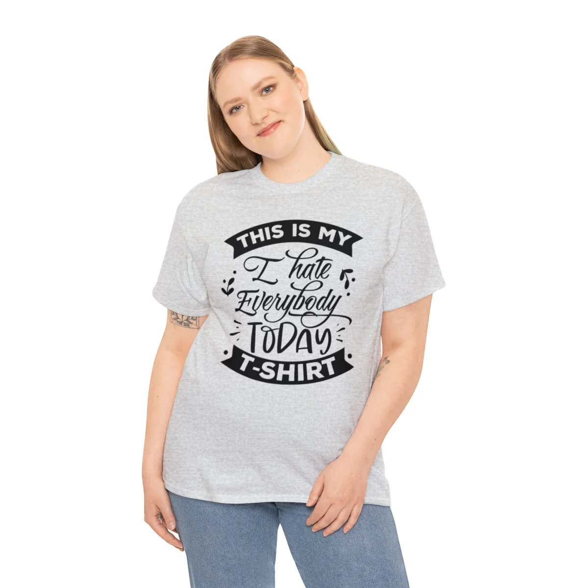 Express your sarcastic side with our delightfully blunt t-shirt that boldly states, "This is my I hate everybody today shirt." With this design, you can humorously convey your temporary disdain for the world around you.