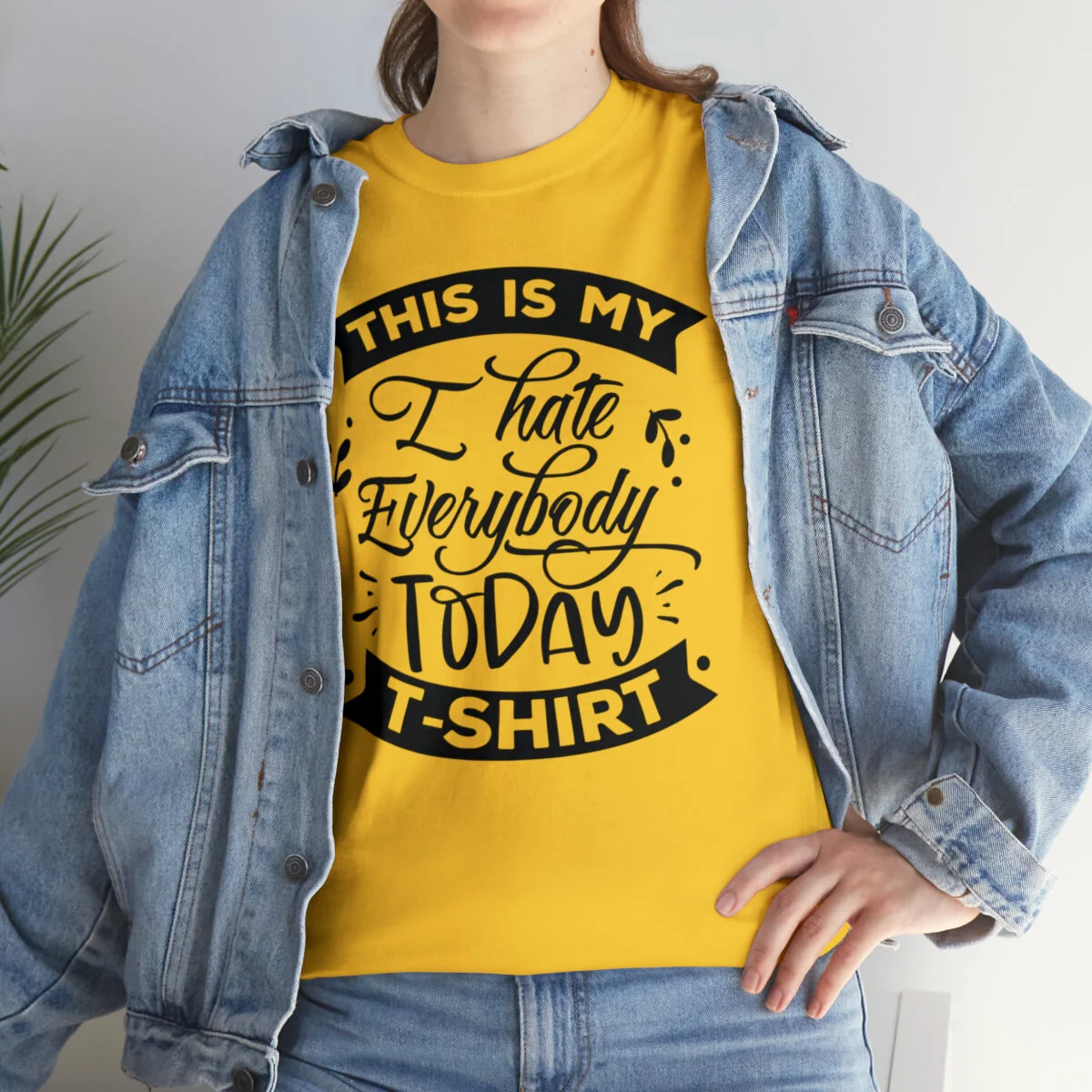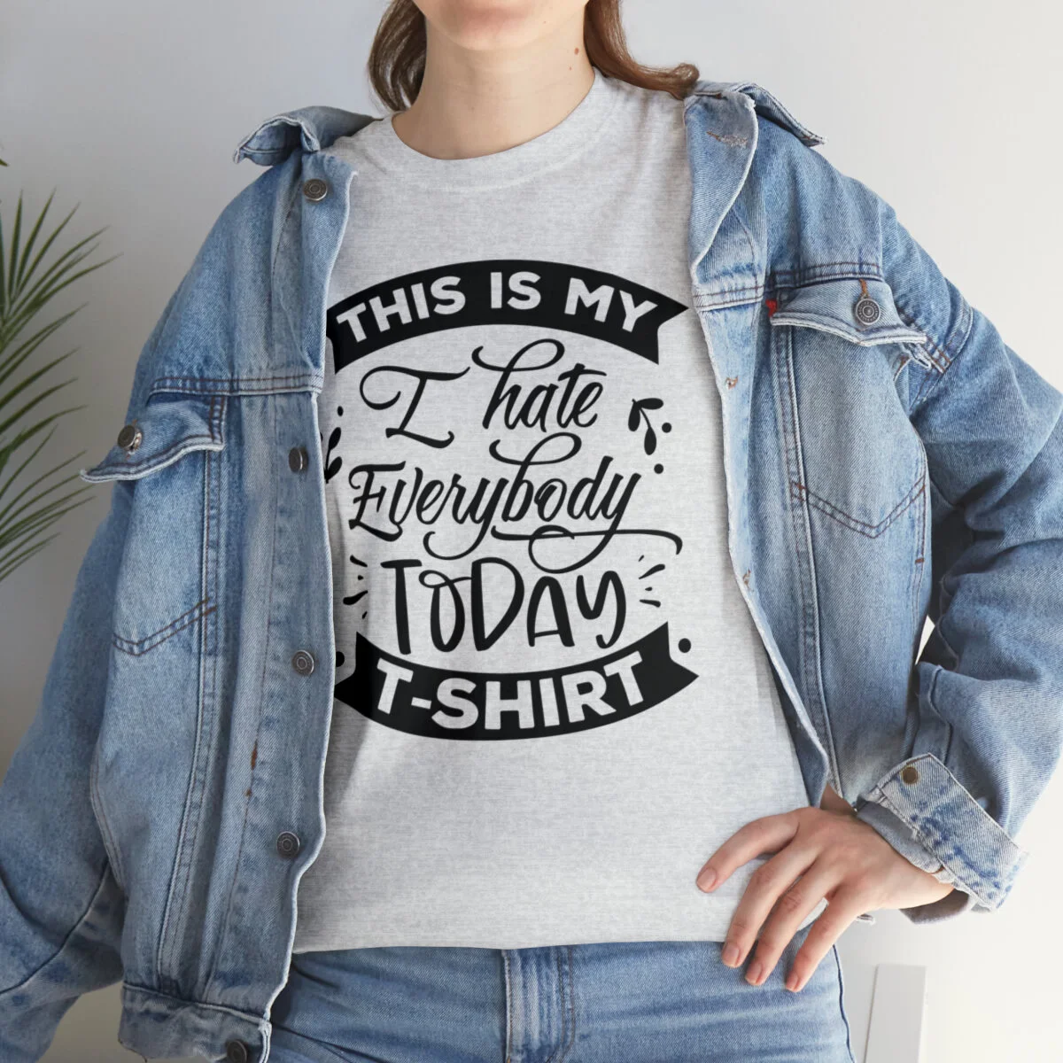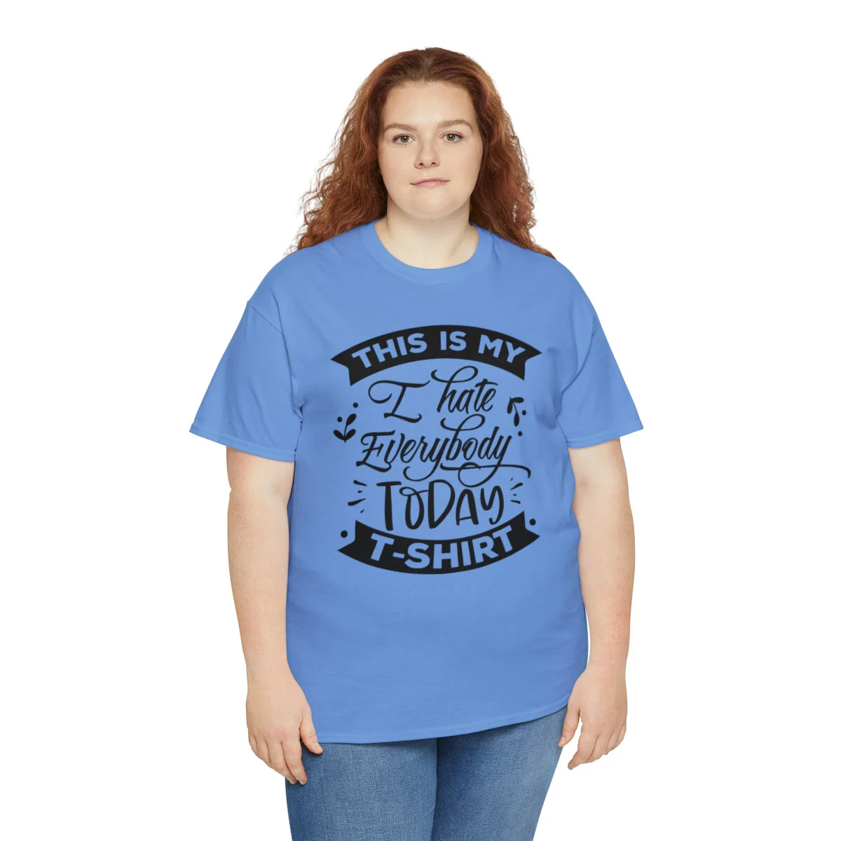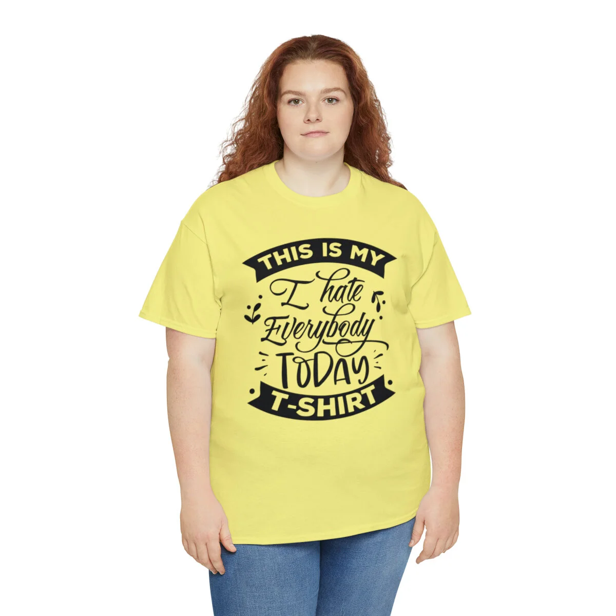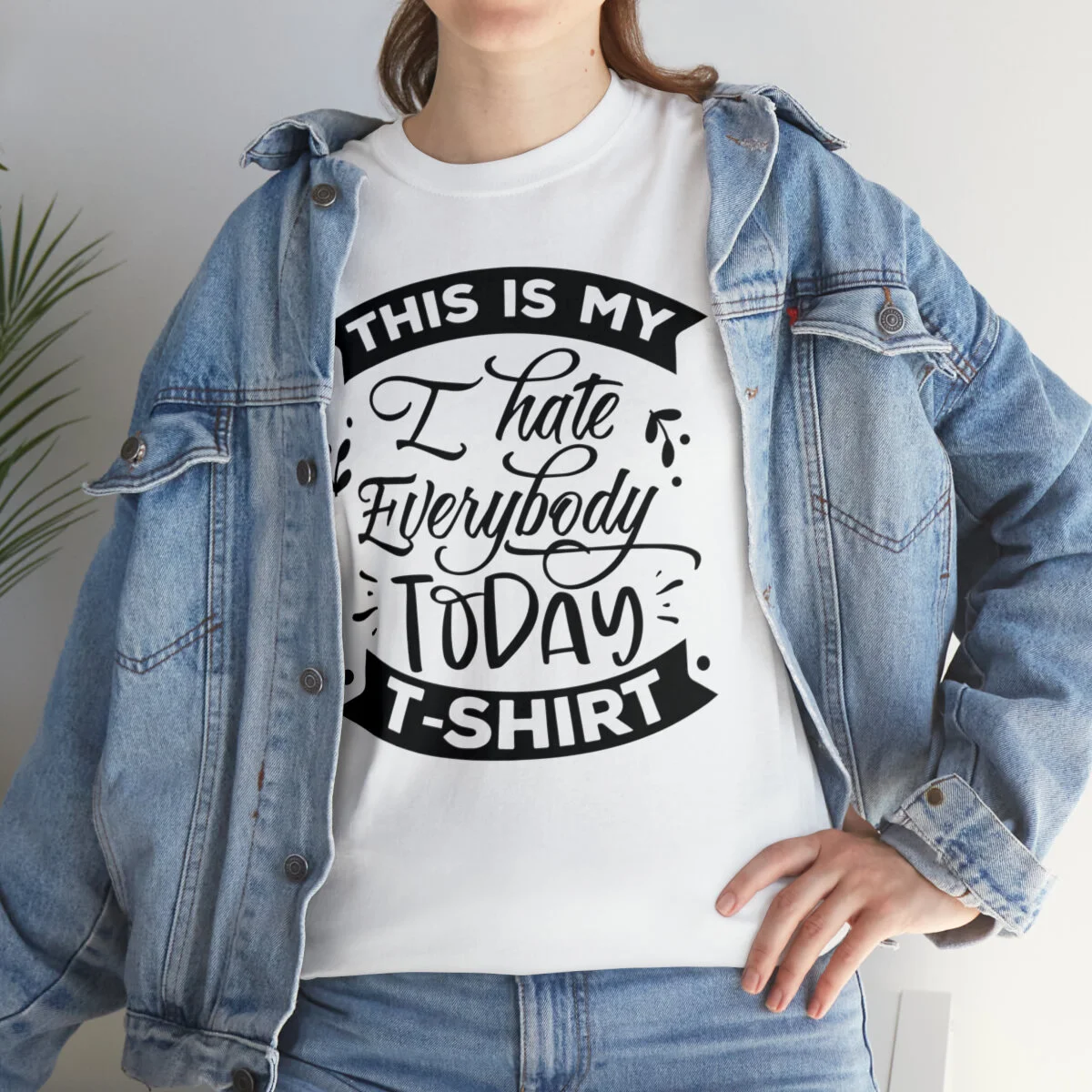 Express your sarcastic side with our delightfully blunt t-shirt that boldly states, "This is my I hate everybody today shirt." With this design, you can humorously convey your temporary disdain for the world around you.