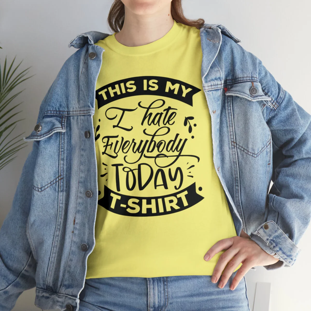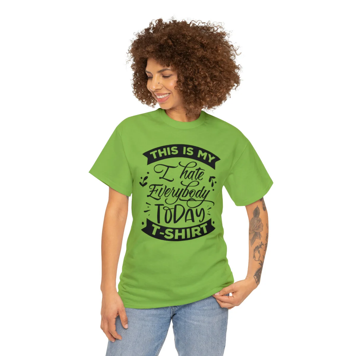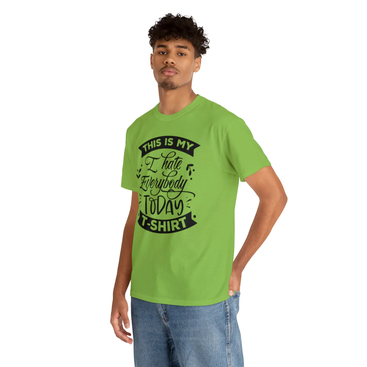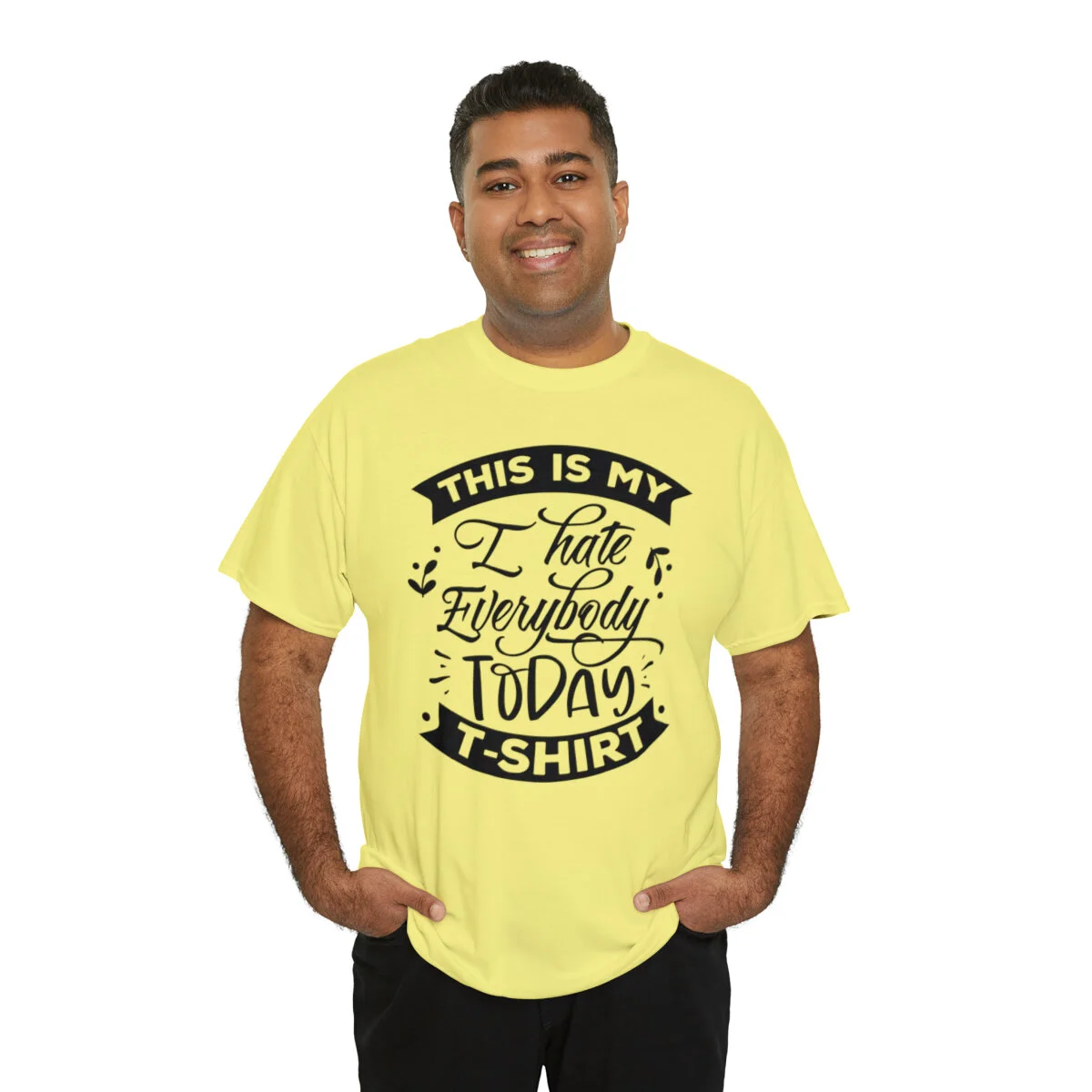 Crafted with care, this t-shirt is made from high-quality fabric to ensure exceptional comfort and durability. The design features the witty phrase, "This is my I hate everybody today shirt," elegantly displayed in multiple colors. Choose from a variety of vibrant options, including red, blue, yellow, or classic black and white, to find the hue that best matches your style and personality.