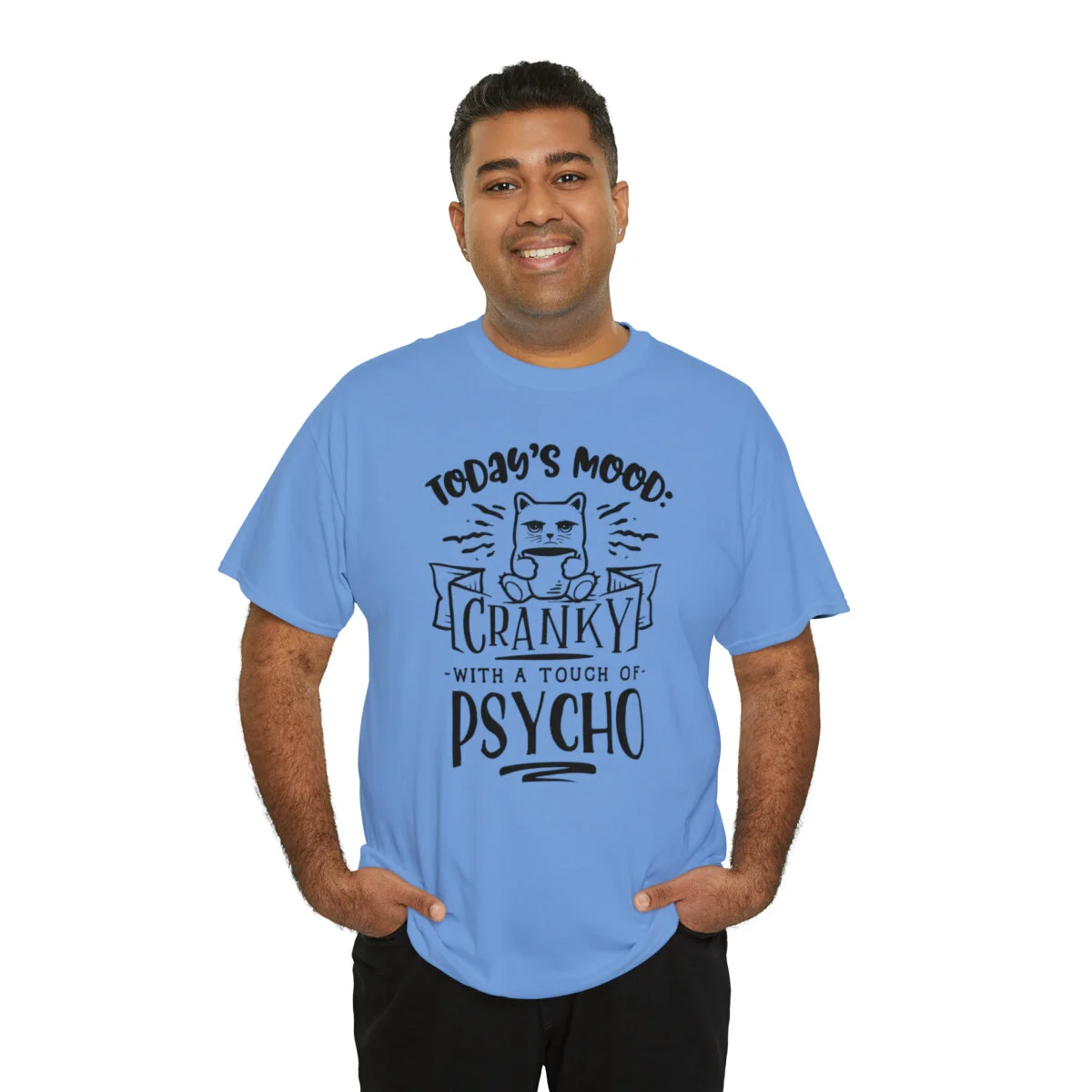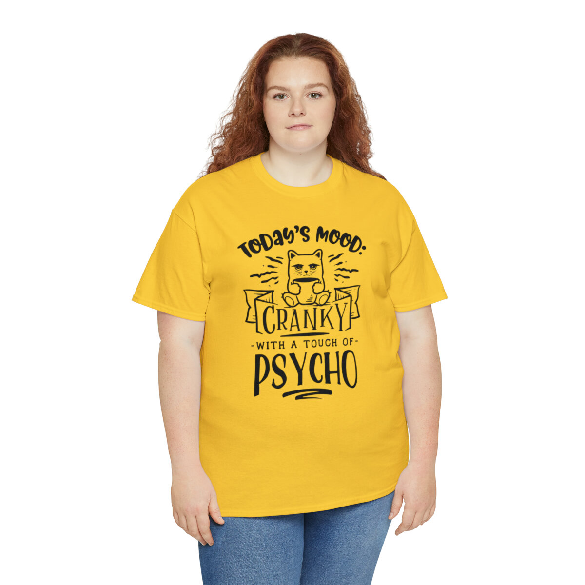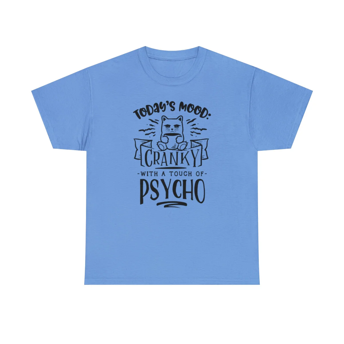 Please note that this design is intended to be light-hearted and humorous. Wear it in good fun and let your quirky mood shine. Embrace the crankiness and touch of psycho, provoke laughter, and proudly wear the "Today's Mood: Cranky with a touch of psycho" t-shirt that combines wit and self-assuredness in one stylish package!
