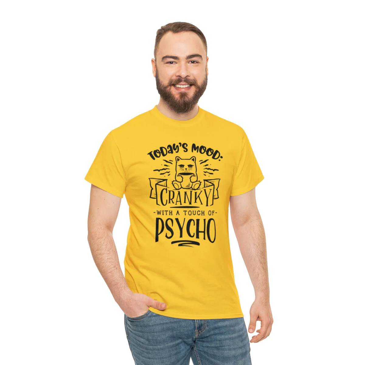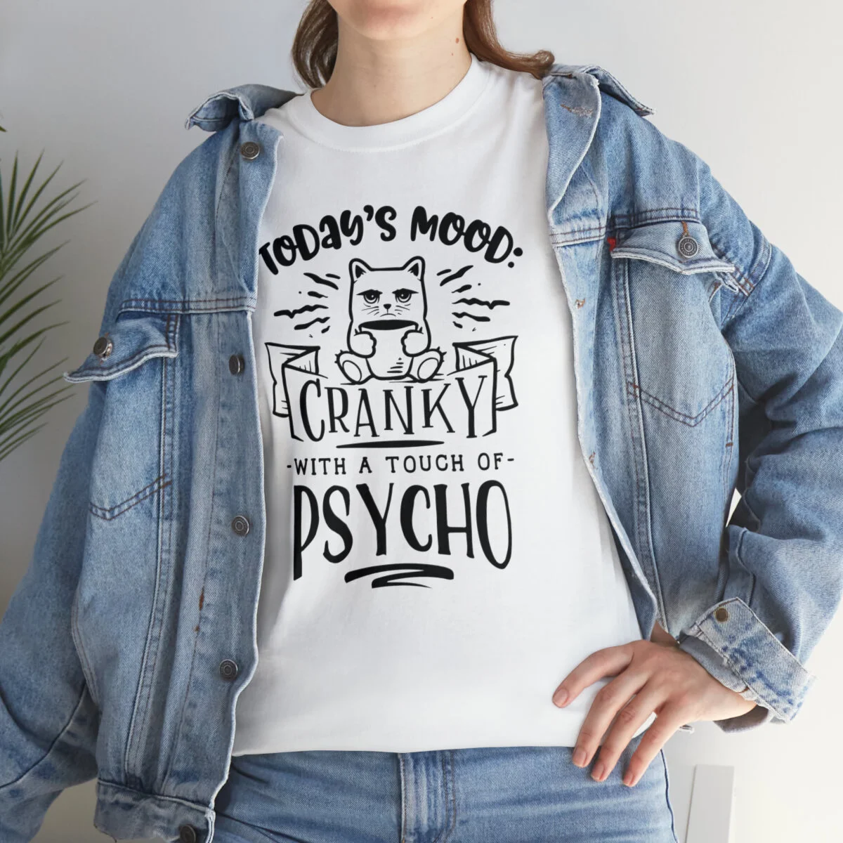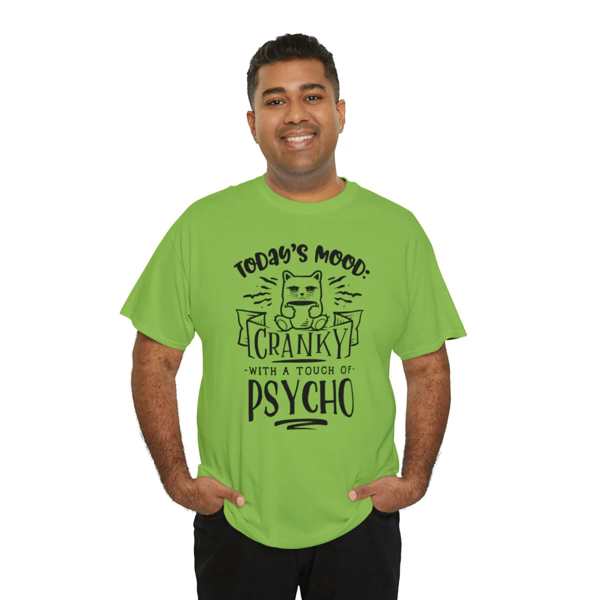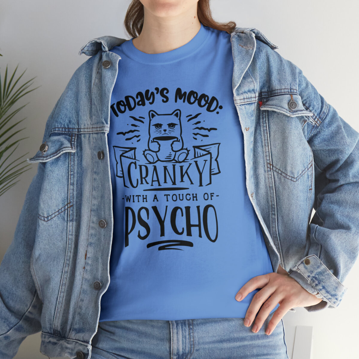 Please note that this design is intended to be light-hearted and humorous. Wear it in good fun and let your quirky mood shine. Embrace the crankiness and touch of psycho, provoke laughter, and proudly wear the "Today's Mood: Cranky with a touch of psycho" t-shirt that combines wit and self-assuredness in one stylish package!