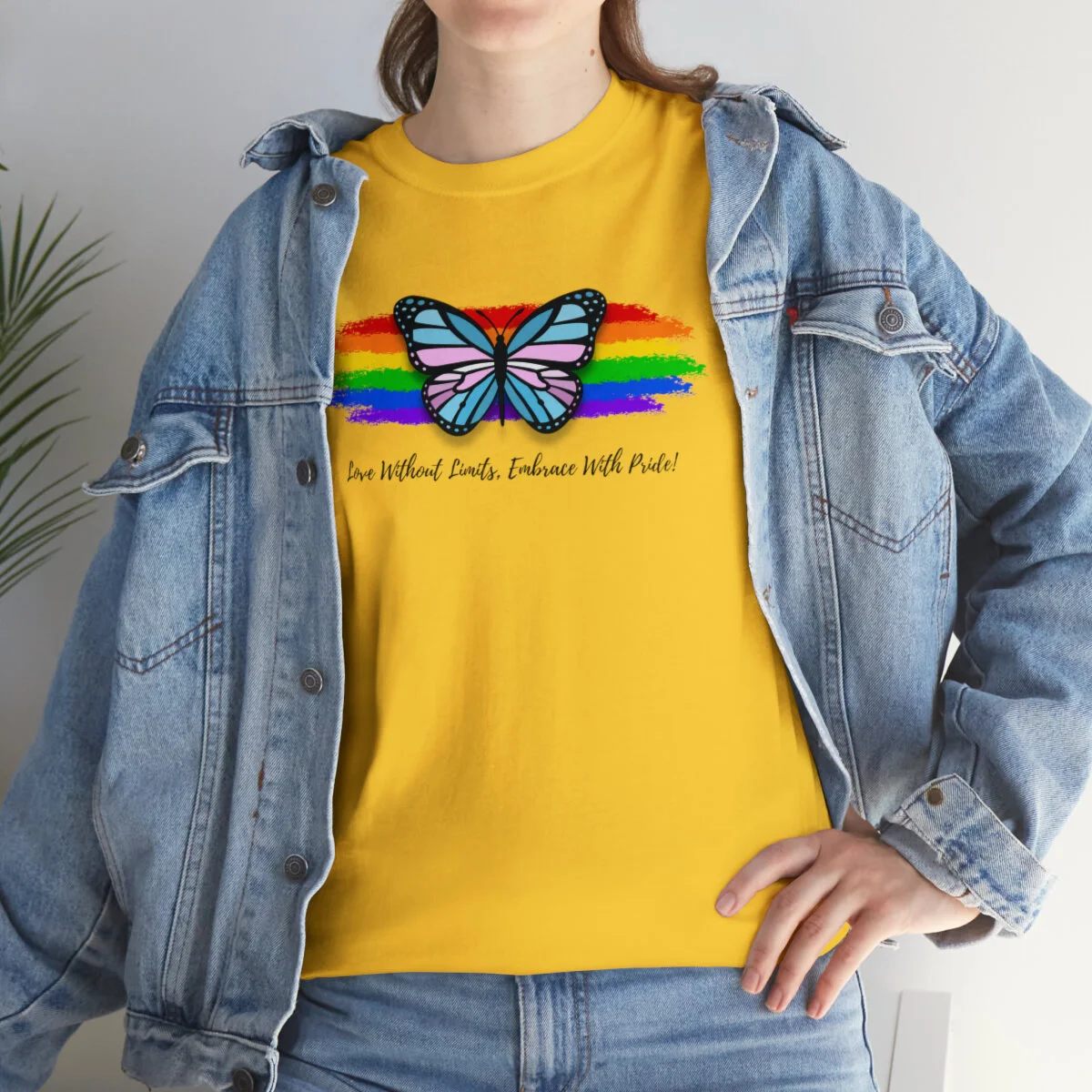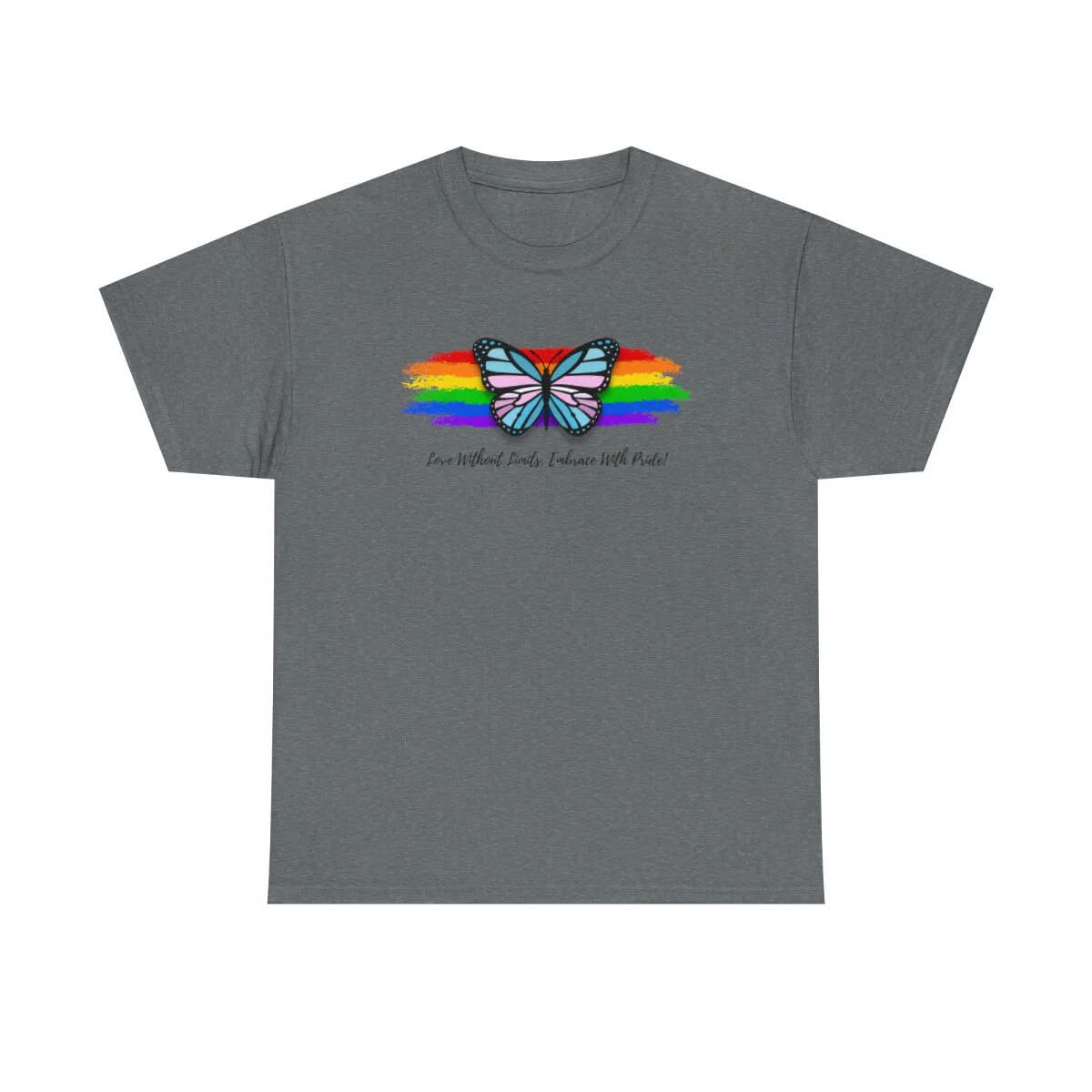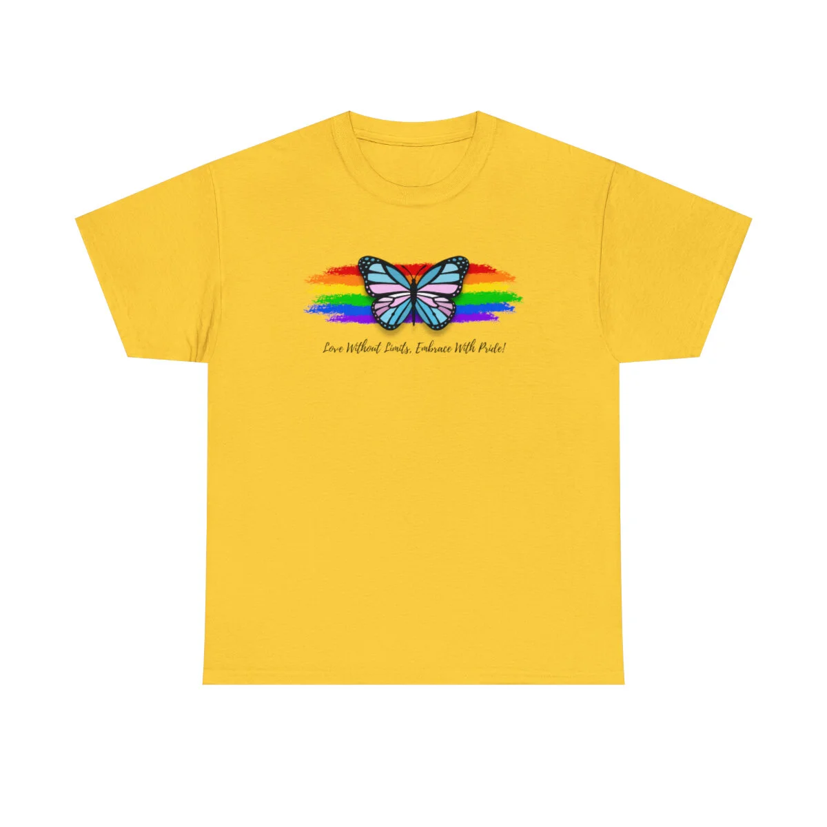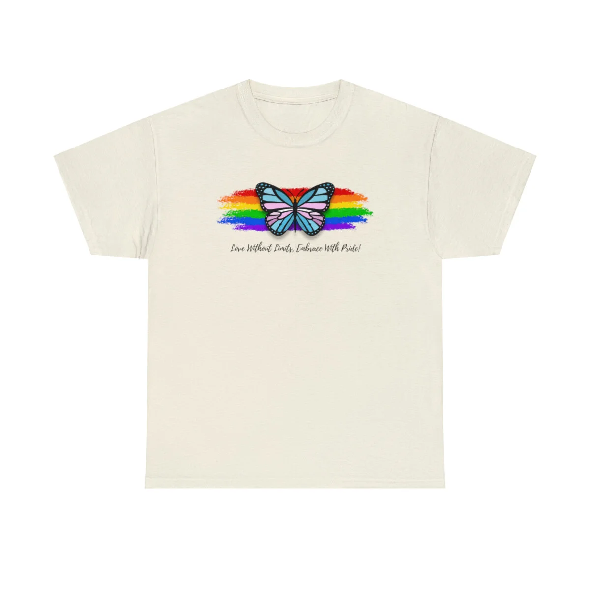 At the forefront of this design, we proudly showcase the empowering phrase "Love Without Limits, Embrace With Pride!" The bold typography represents the strength, love, and acceptance that are at the core of the transgender experience.