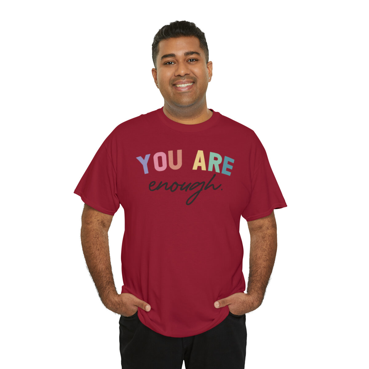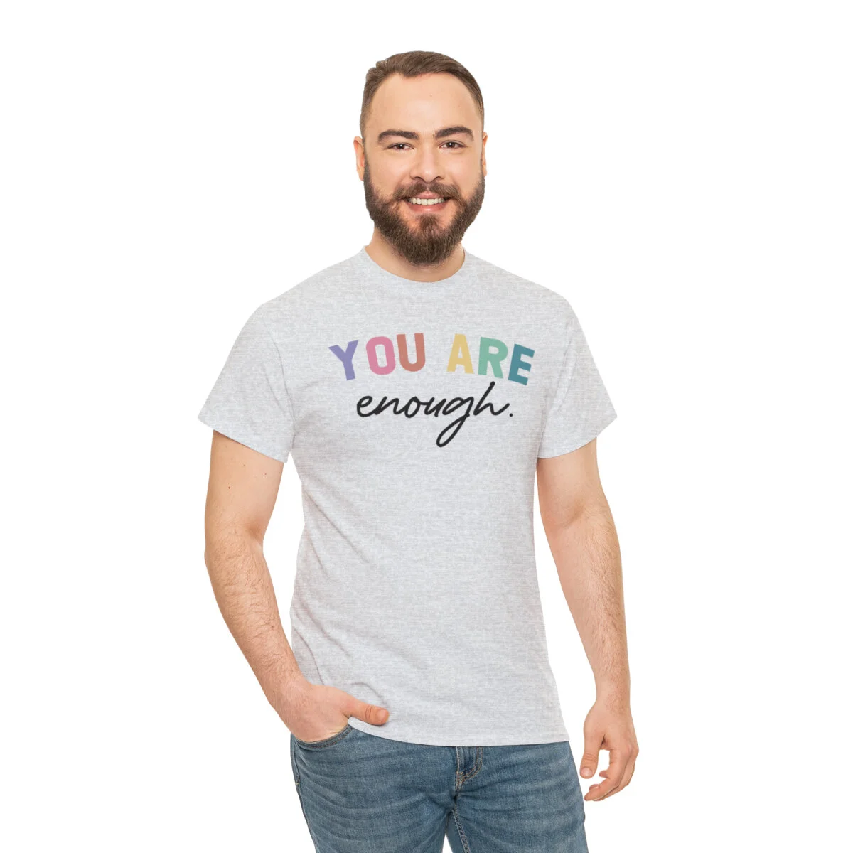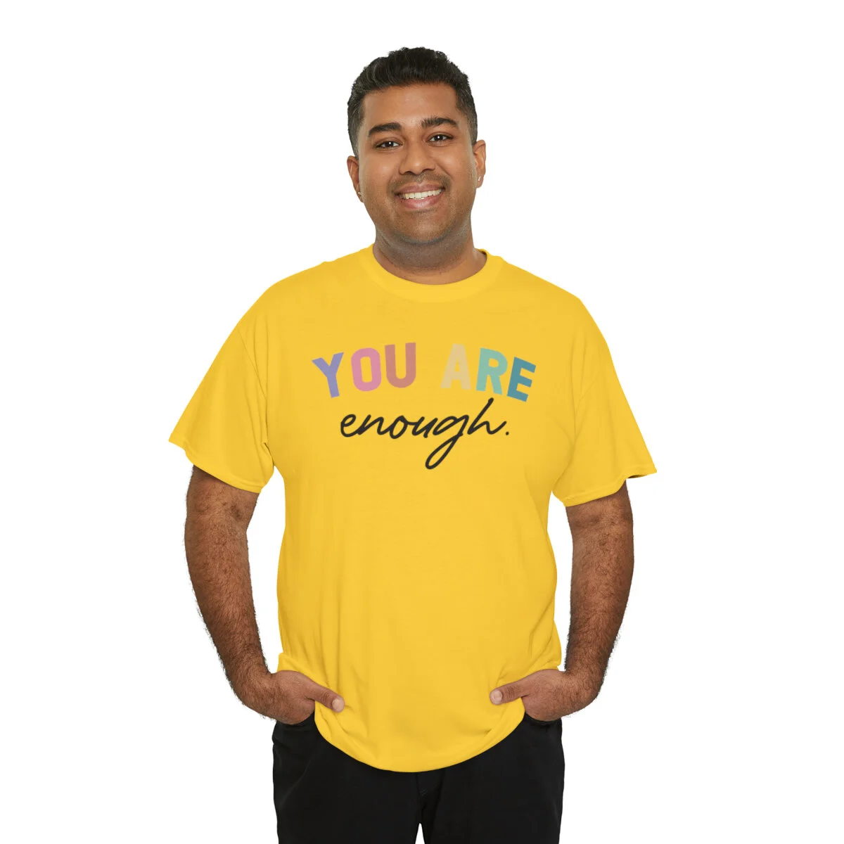 Celebrate self-acceptance and promote positive self-worth with our empowering t-shirt that reminds you and others that "You are enough." With this design, you can advocate for mental health awareness and inspire individuals to embrace their unique value.