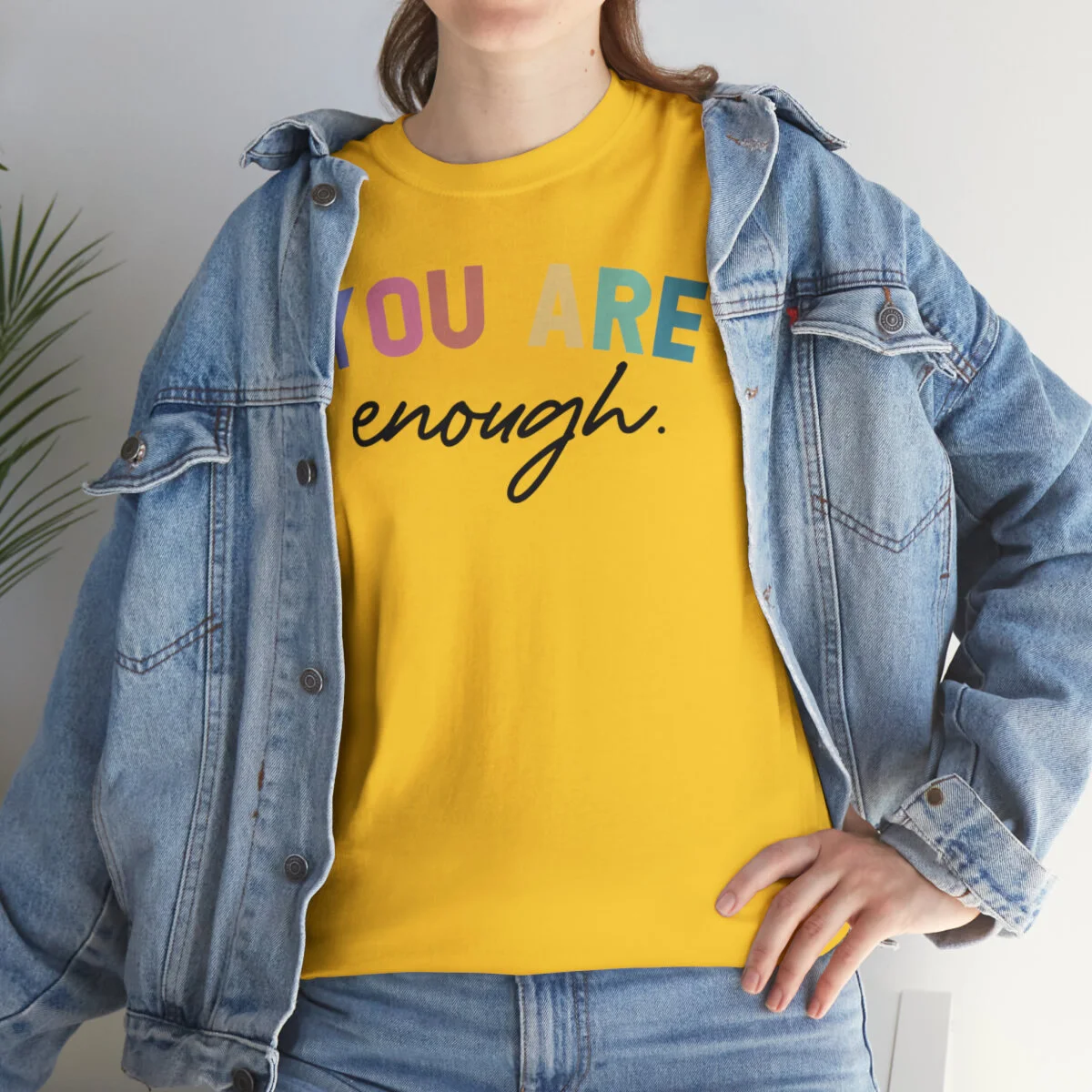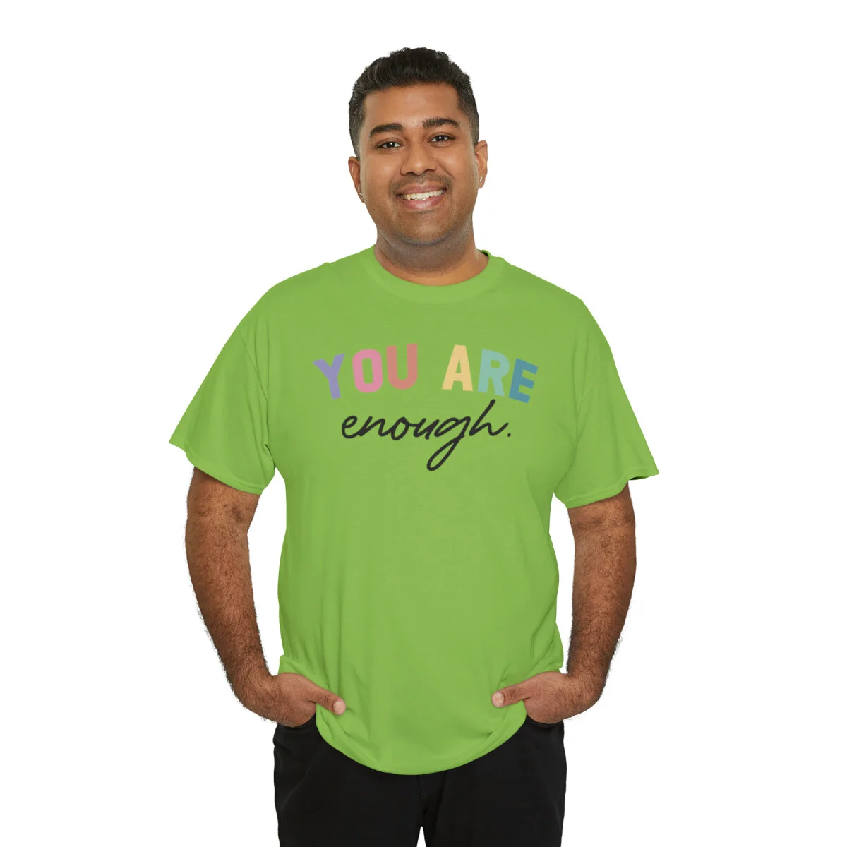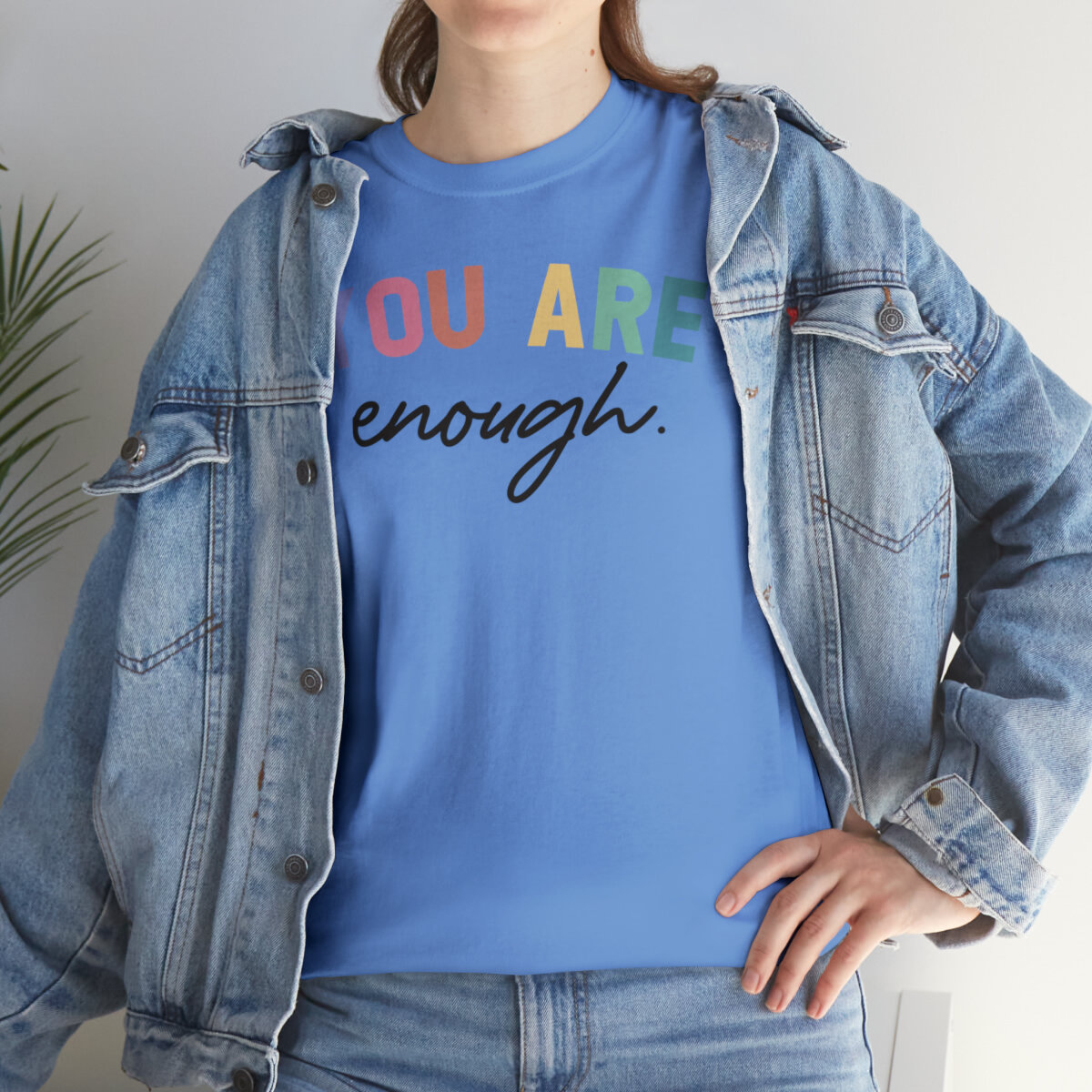 Celebrate self-acceptance and promote positive self-worth with our empowering t-shirt that reminds you and others that "You are enough." With this design, you can advocate for mental health awareness and inspire individuals to embrace their unique value.